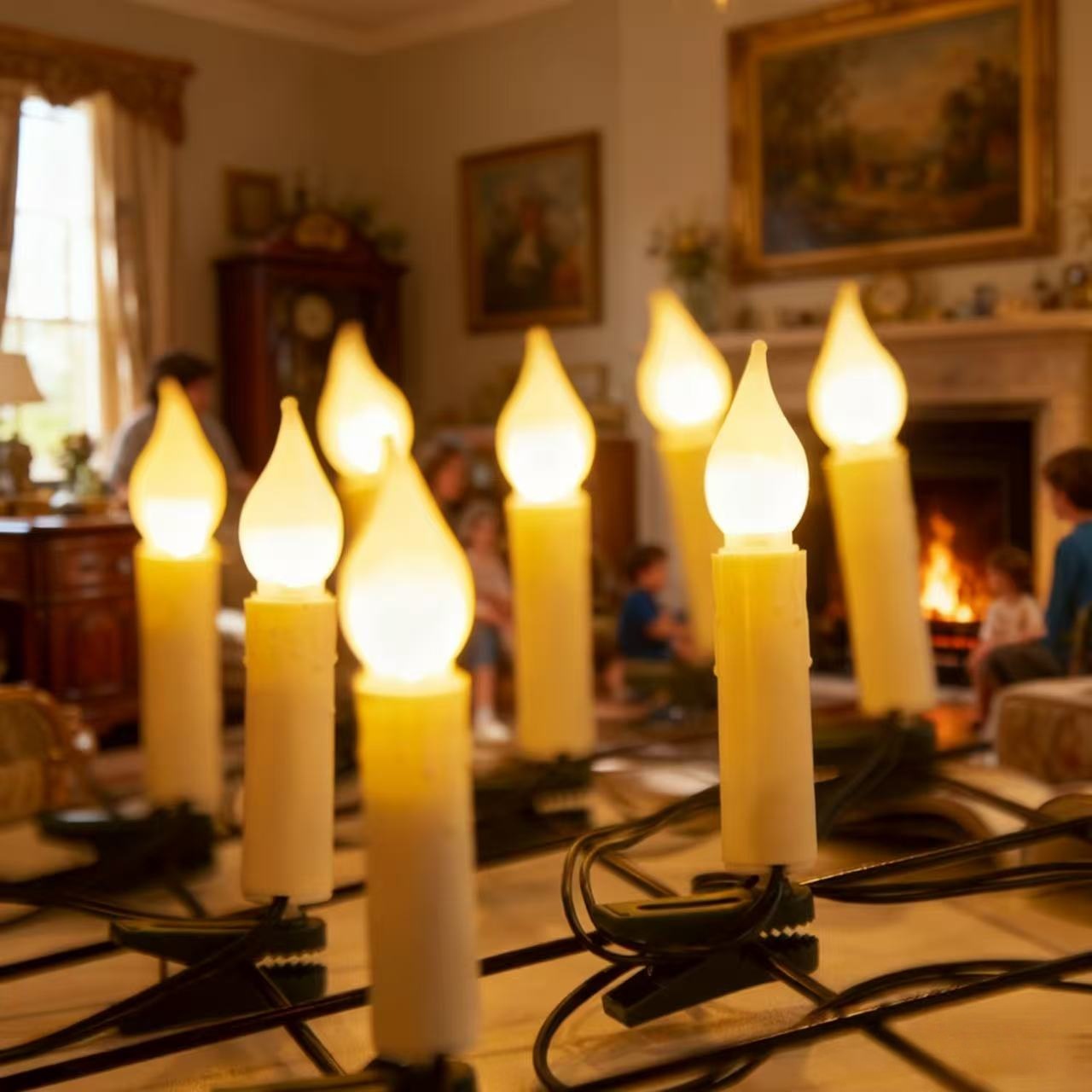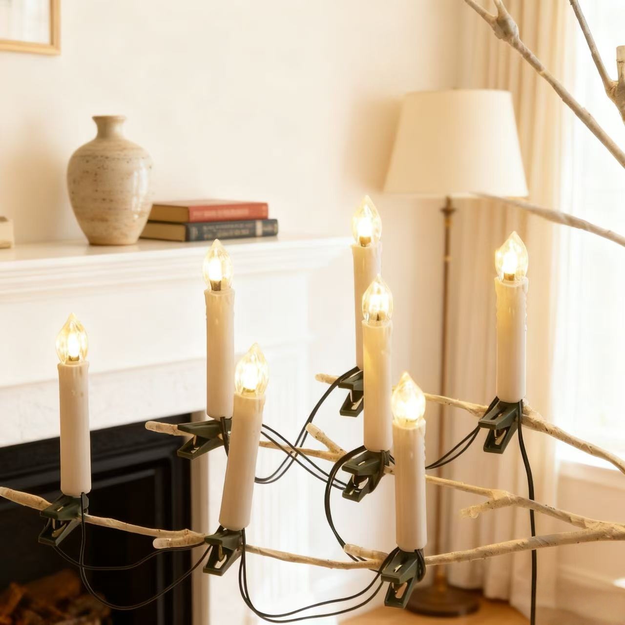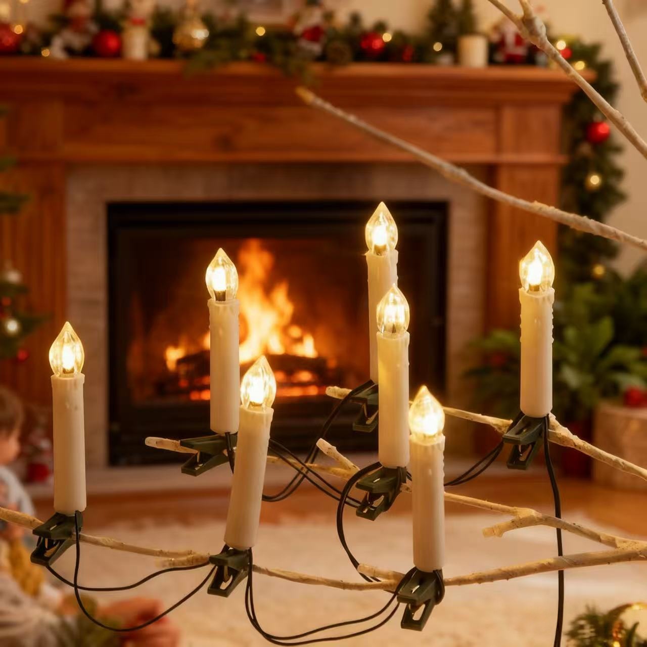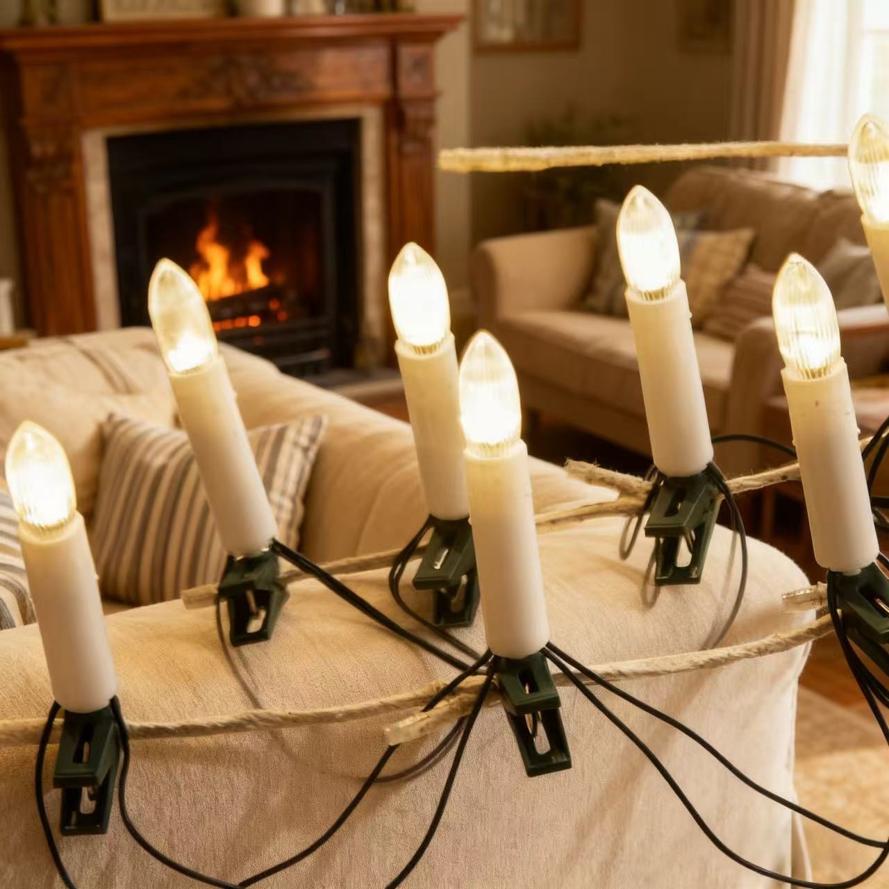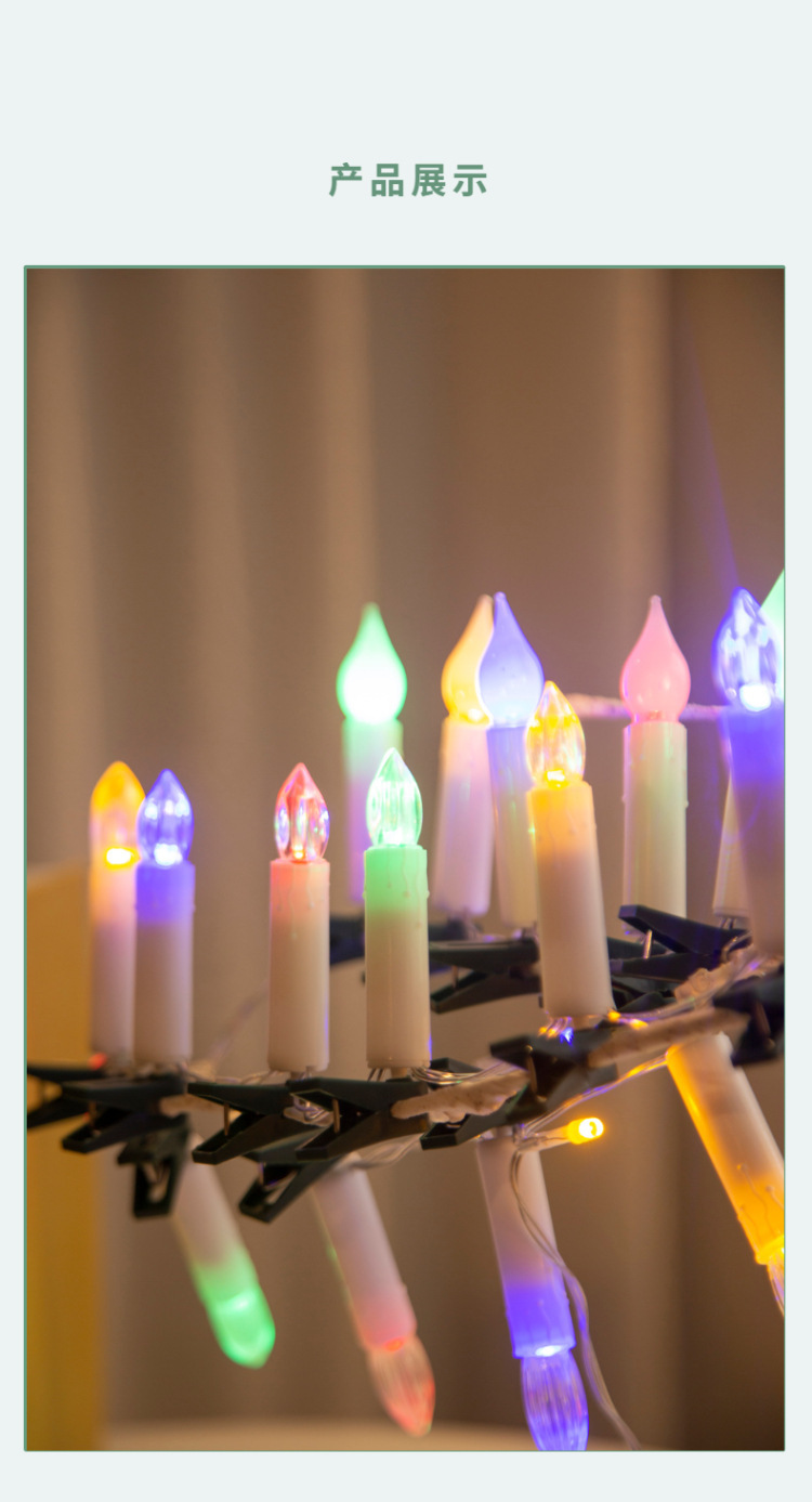 高品质专供跨境蜡烛夹子灯串