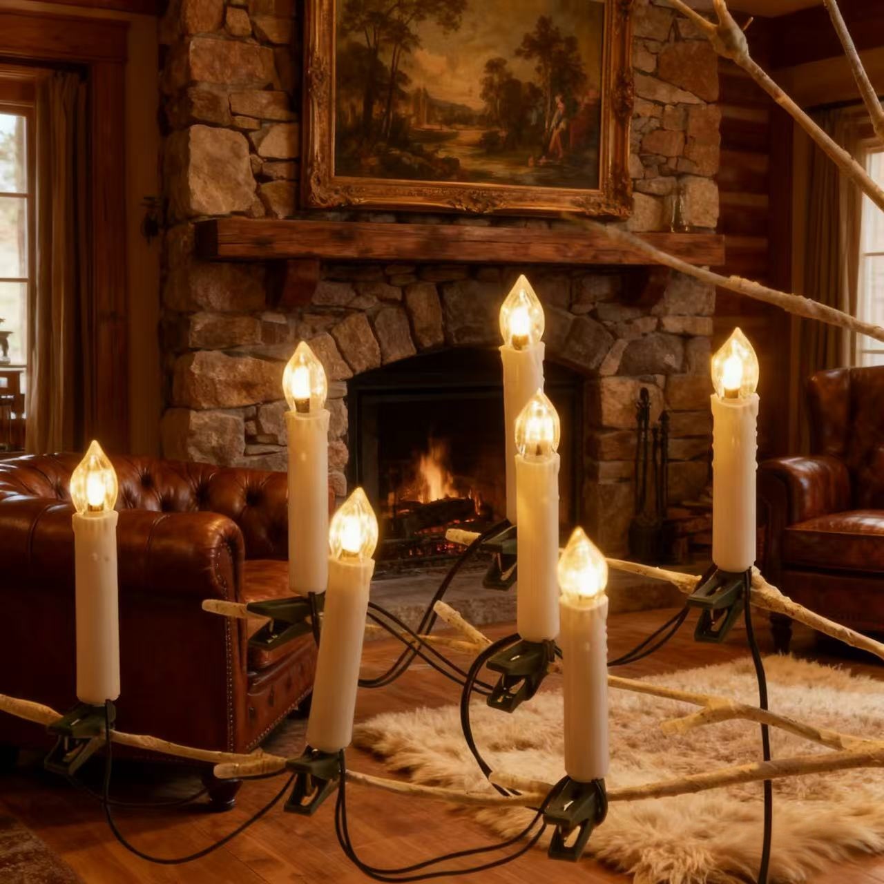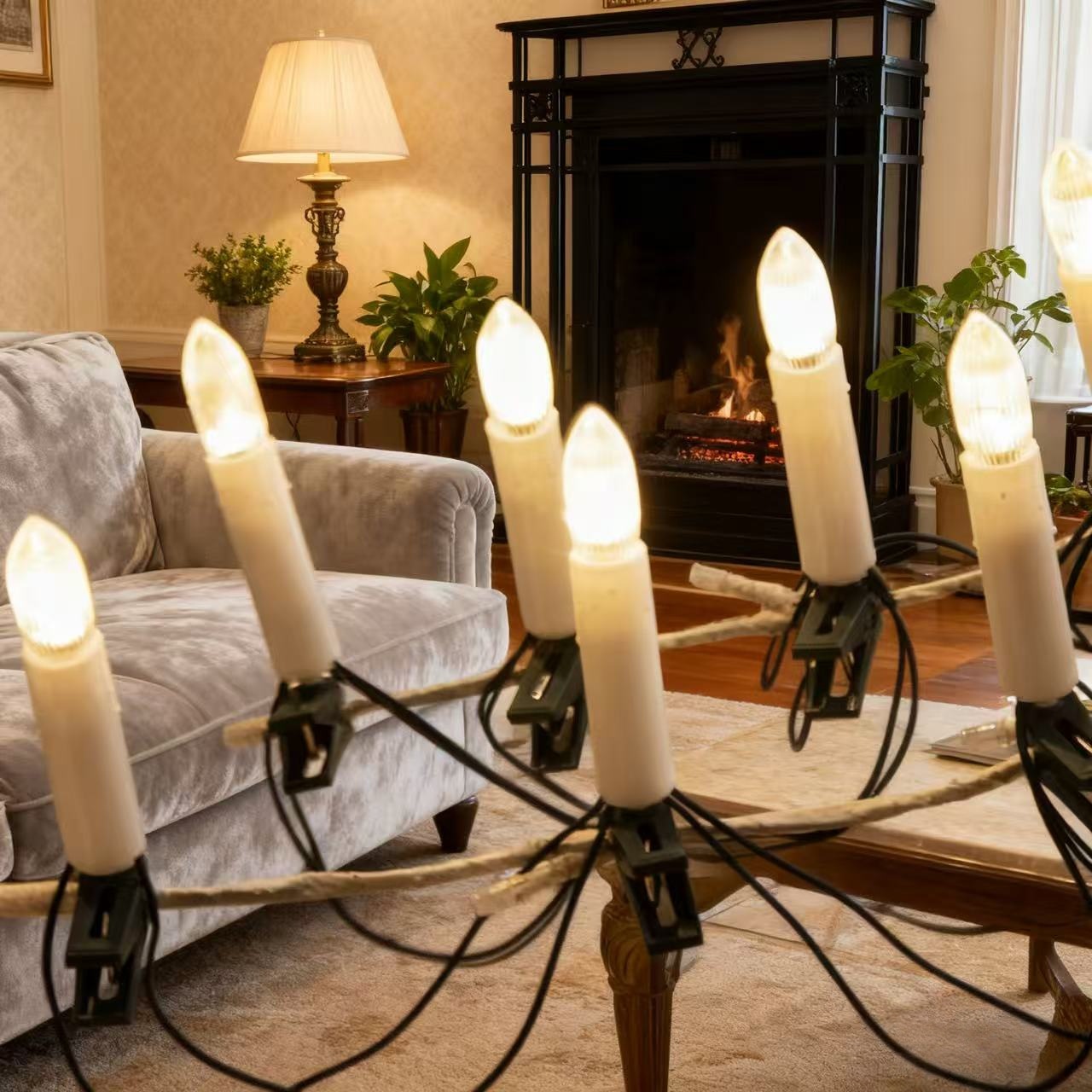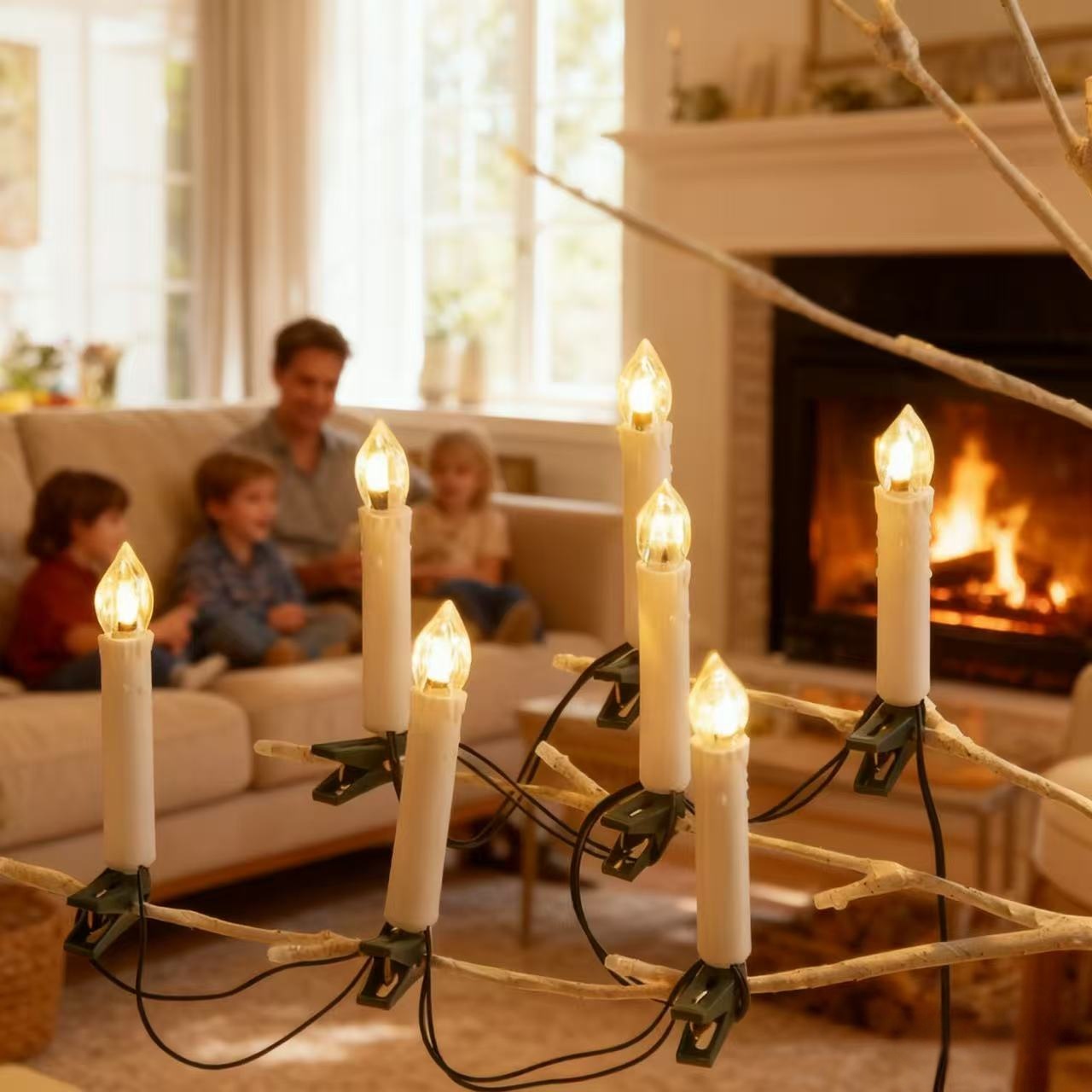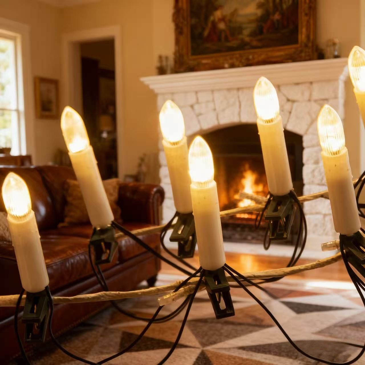 高品质专供跨境蜡烛夹子灯串