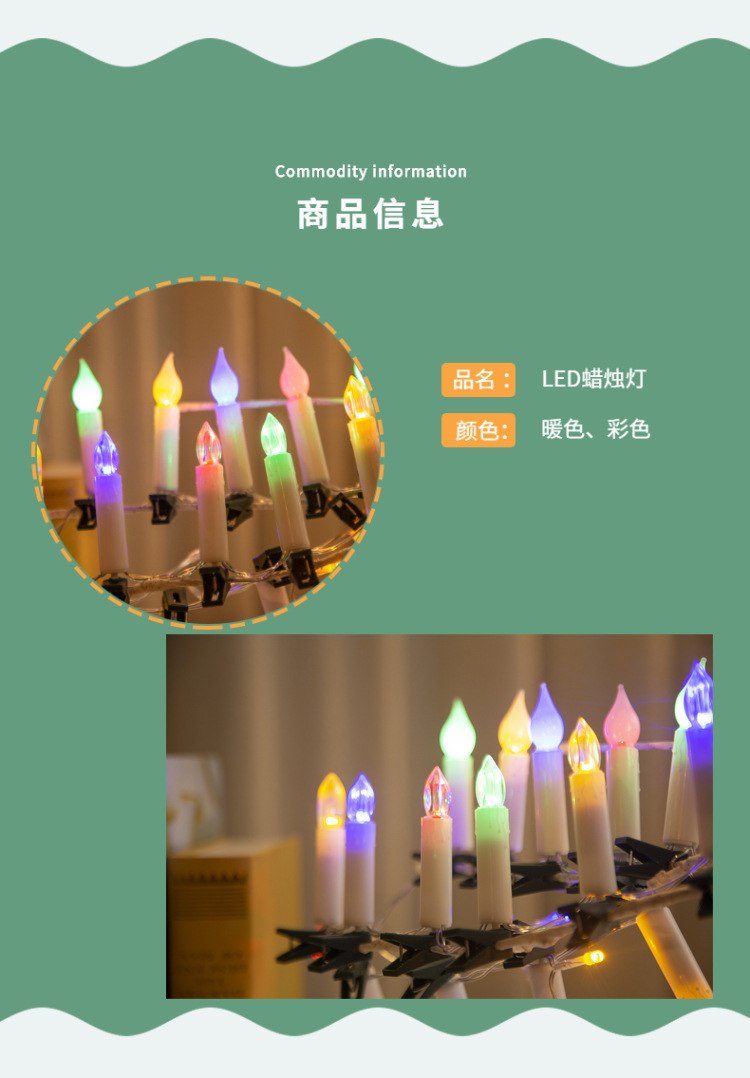 국경을 넘는 신제품 LED 조명 스트링 전자 촛불 조명 침실 분위기 조명 크리스마스 장식 조명 클립 조명