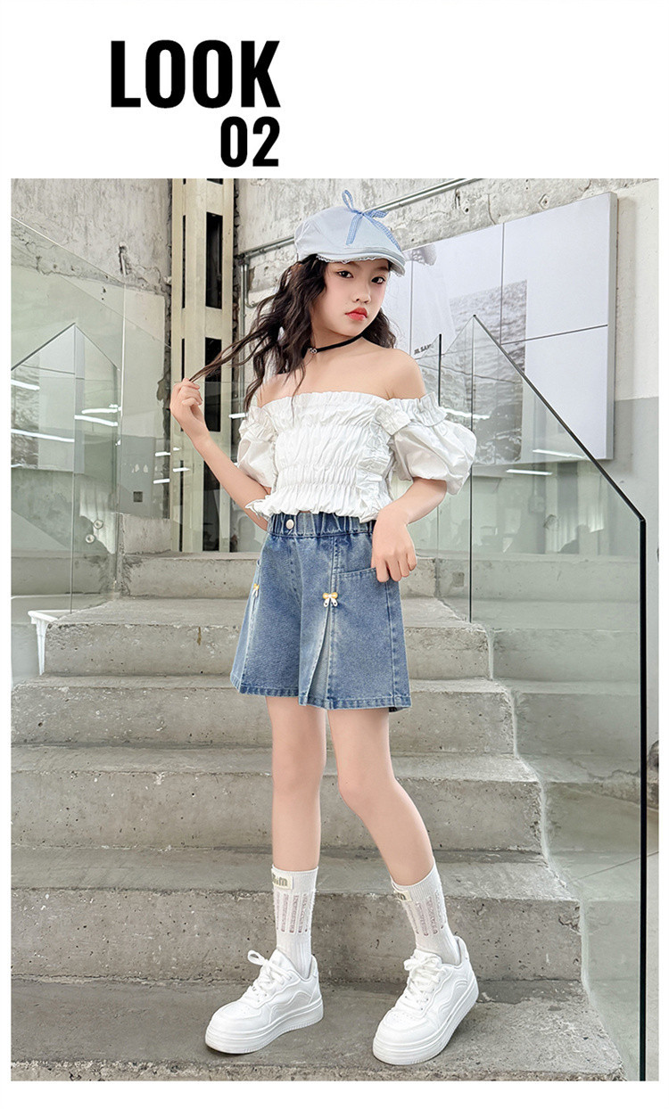 여름 여아 데님 반바지, 여름 옷, 중대형 아동 한국식 리본 핫팬츠, 여름 얇은 치마바지 도매스토어 가기