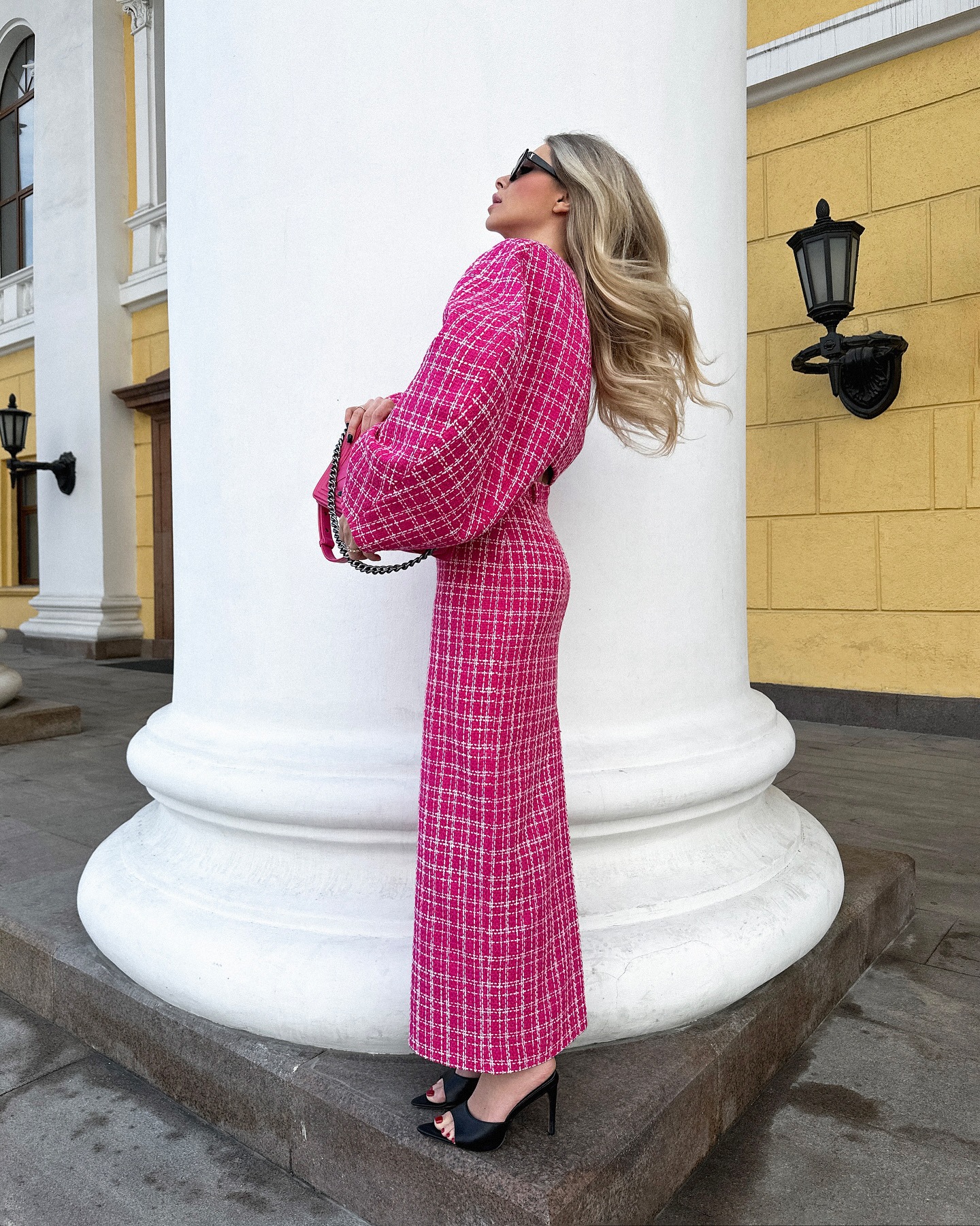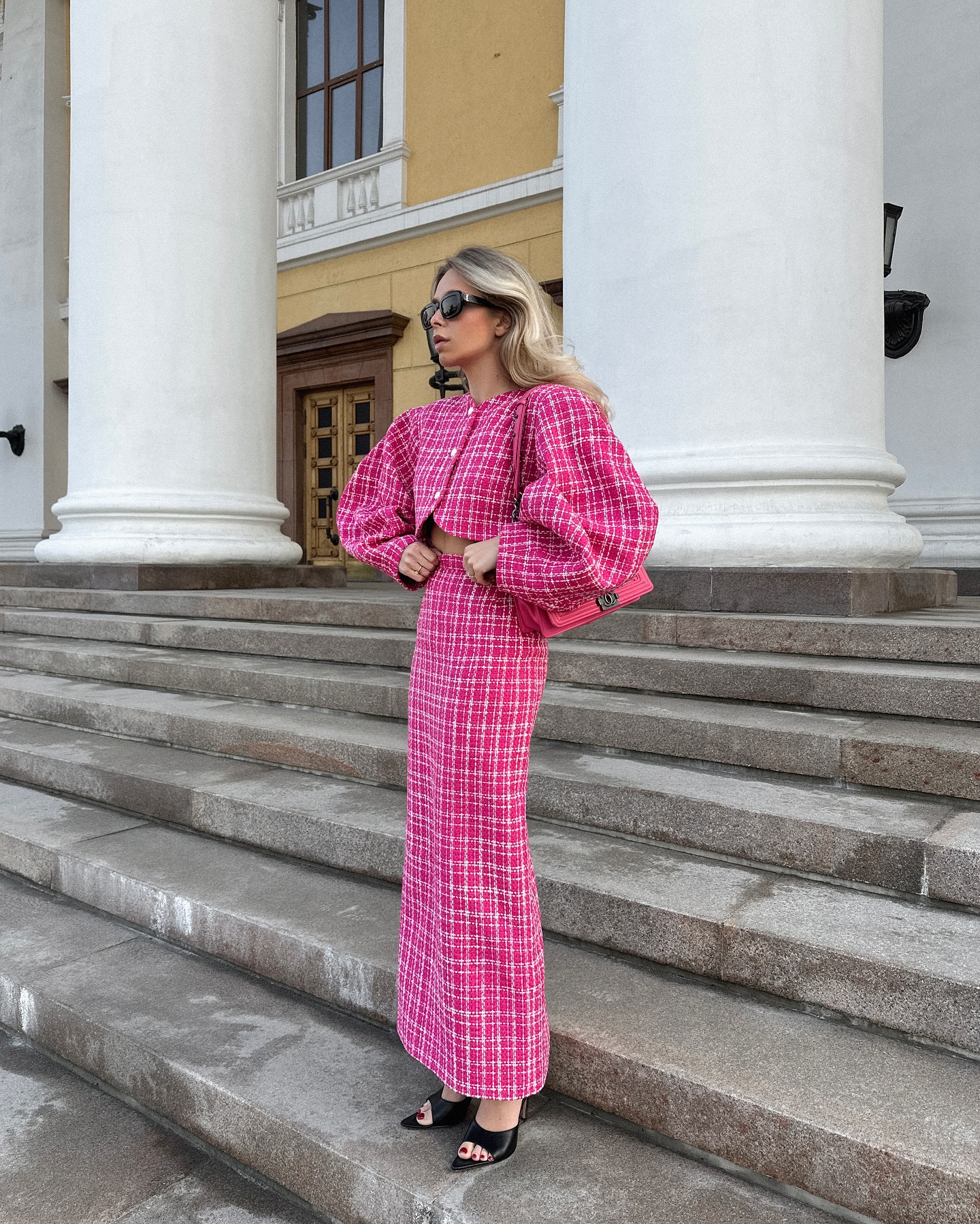 프랑스 유럽과 미국의 틈새 패션 가을 작은 향기 스타일 여성용 격자 무늬 패션 정장 프랑스 여성 스커트스토어 가기