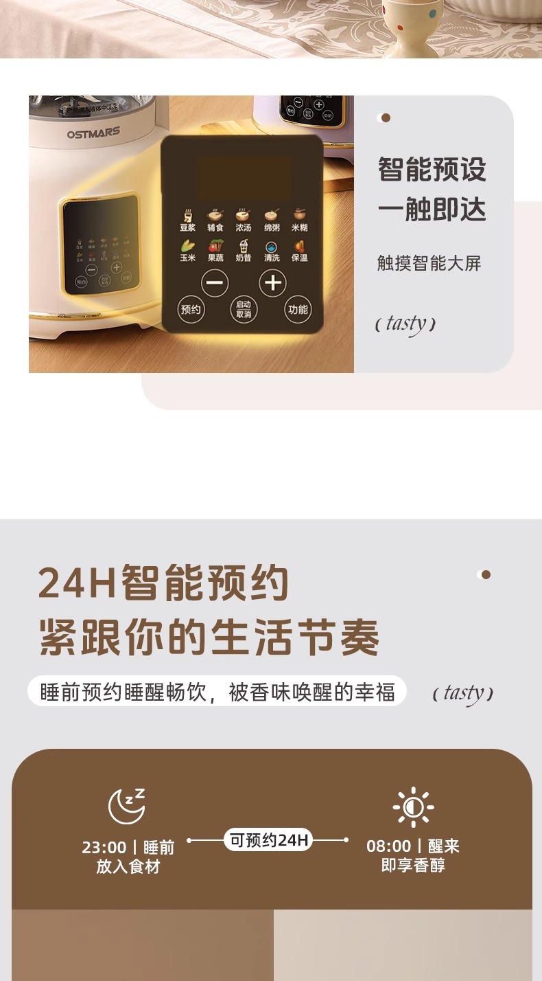 새로운 독일 OSTMARS 1.8L 요리 기계 가정용 자동 분할 벽 파괴 기계 대용량 자동 두유 기계