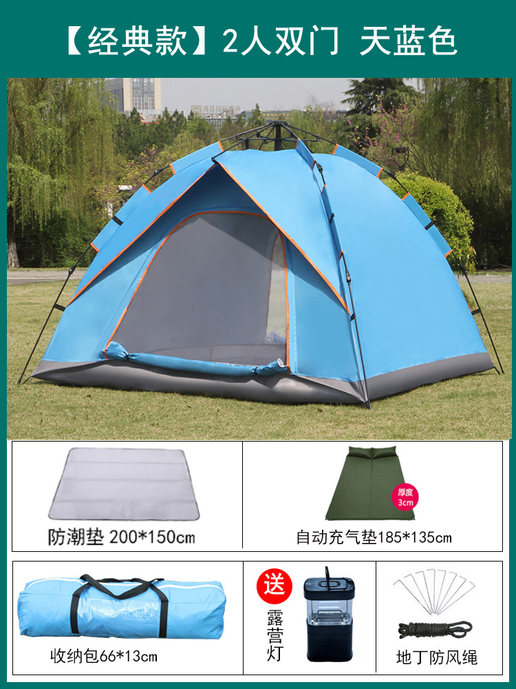 • 2인용 자동 하늘색 + 방습 패드 + 공기주입식 베개(탄성압력텐트)