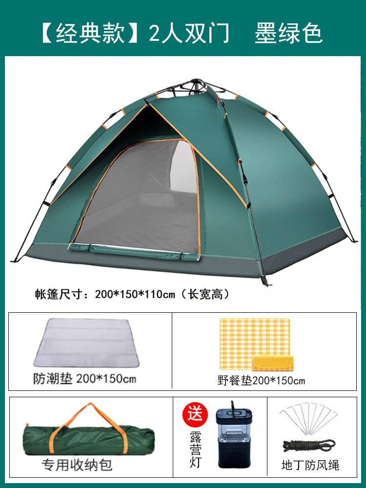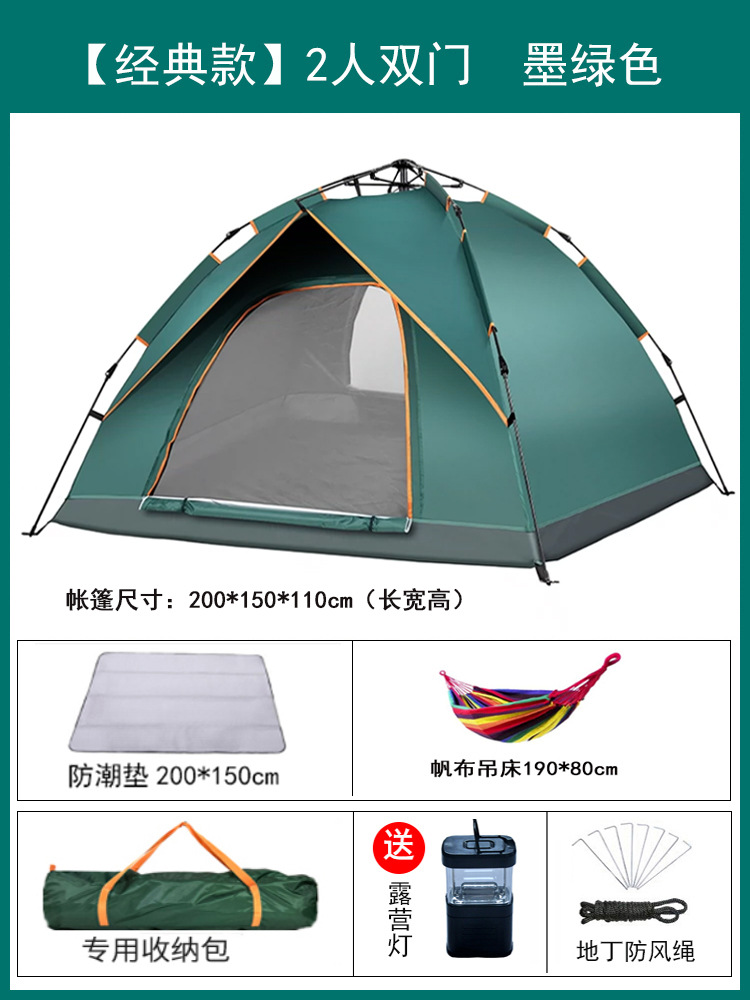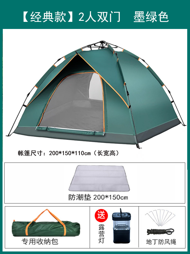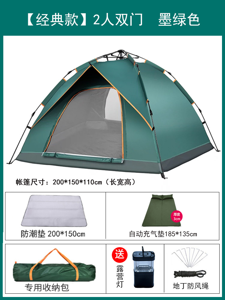 • 2인용 자동 짙은 녹색 + 방습 패드 + 공기주입식 베개(탄성압력 텐트)