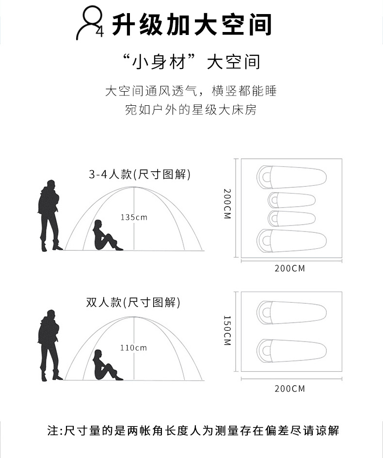 • 3/4인용 자동 위장색 + 방습 패드 + 베개 3개(탄성 텐트)