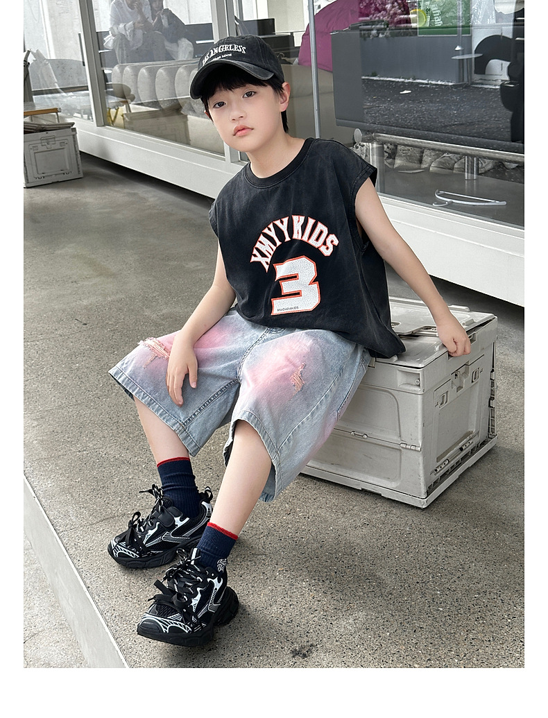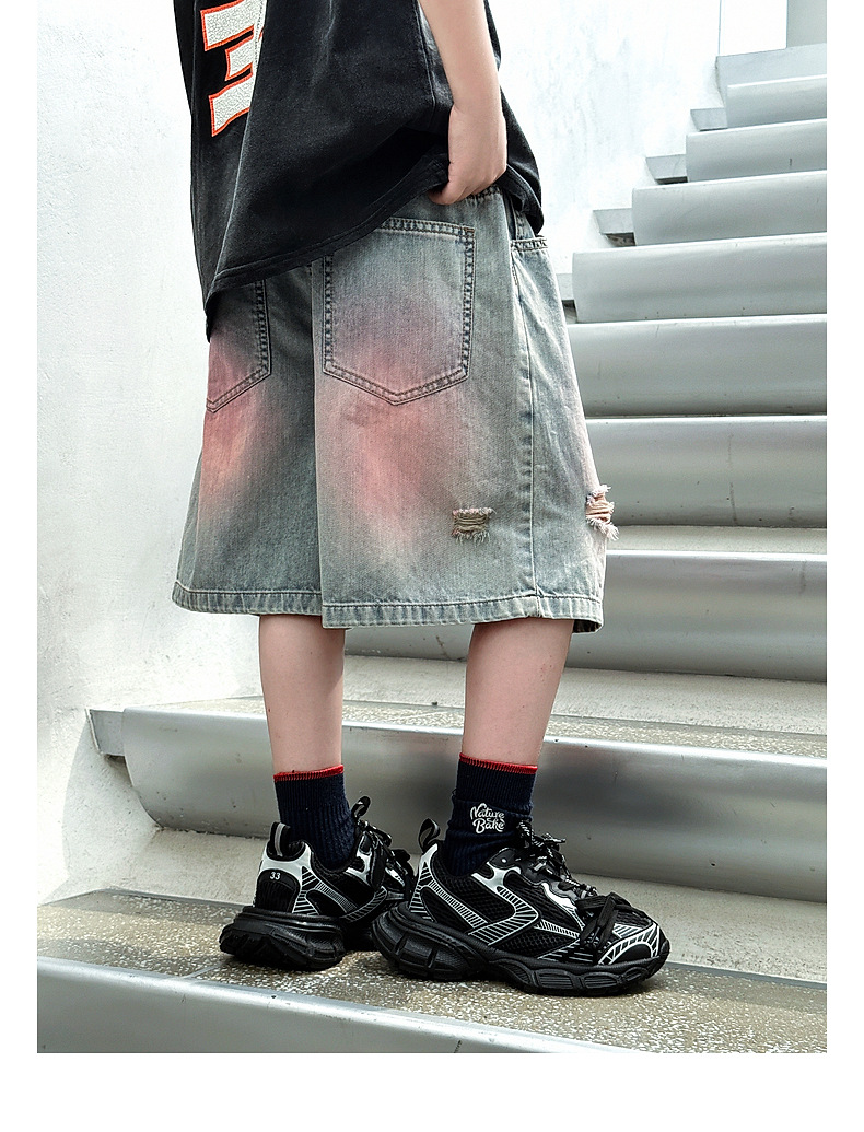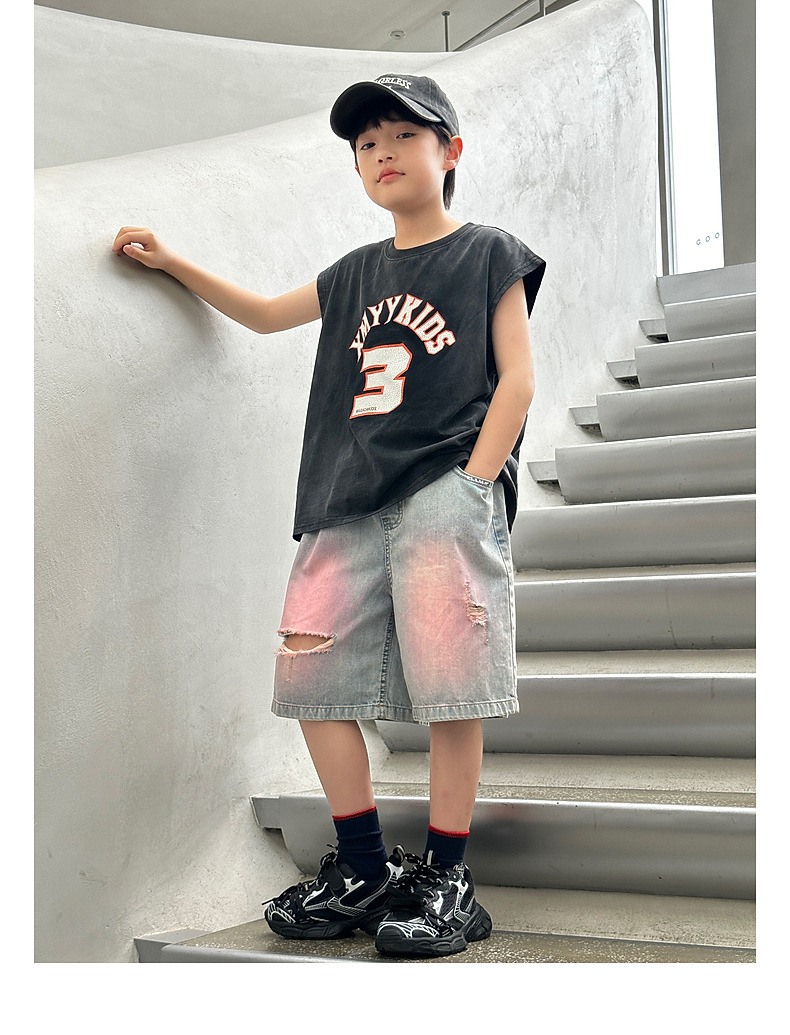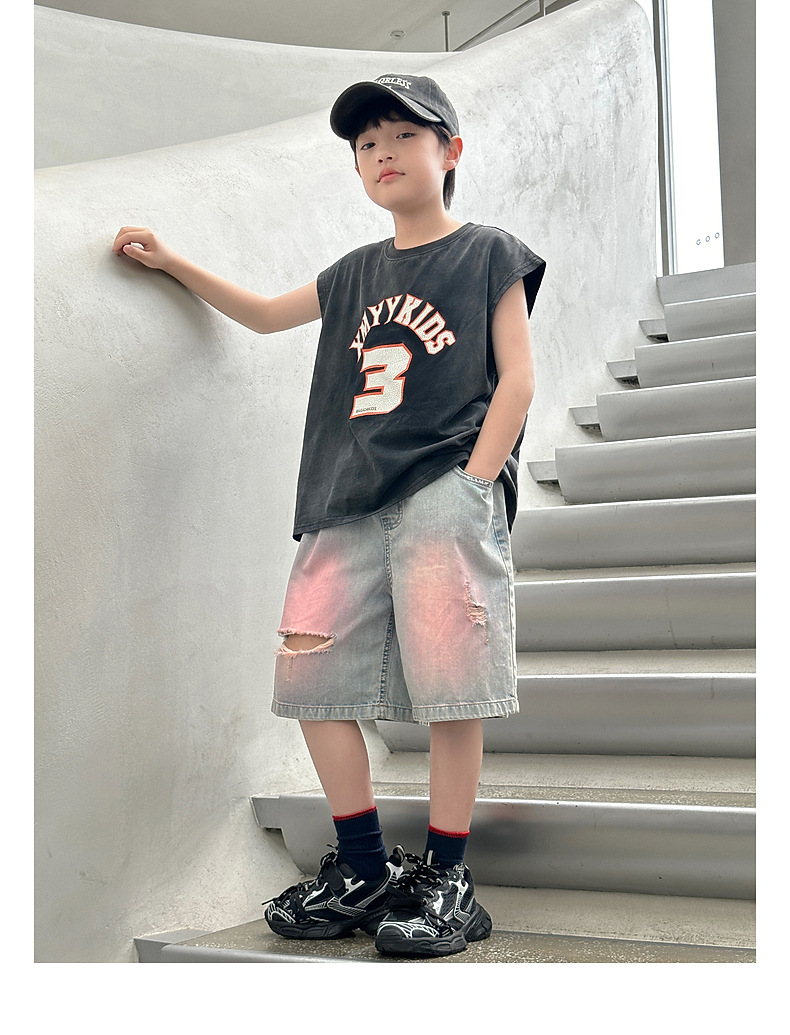 Panda Yuanyuan 여름 어린이 찢어진 데님 반바지 얇은 2025 여름 새 스타일 소년 5부 바지 여름 착용