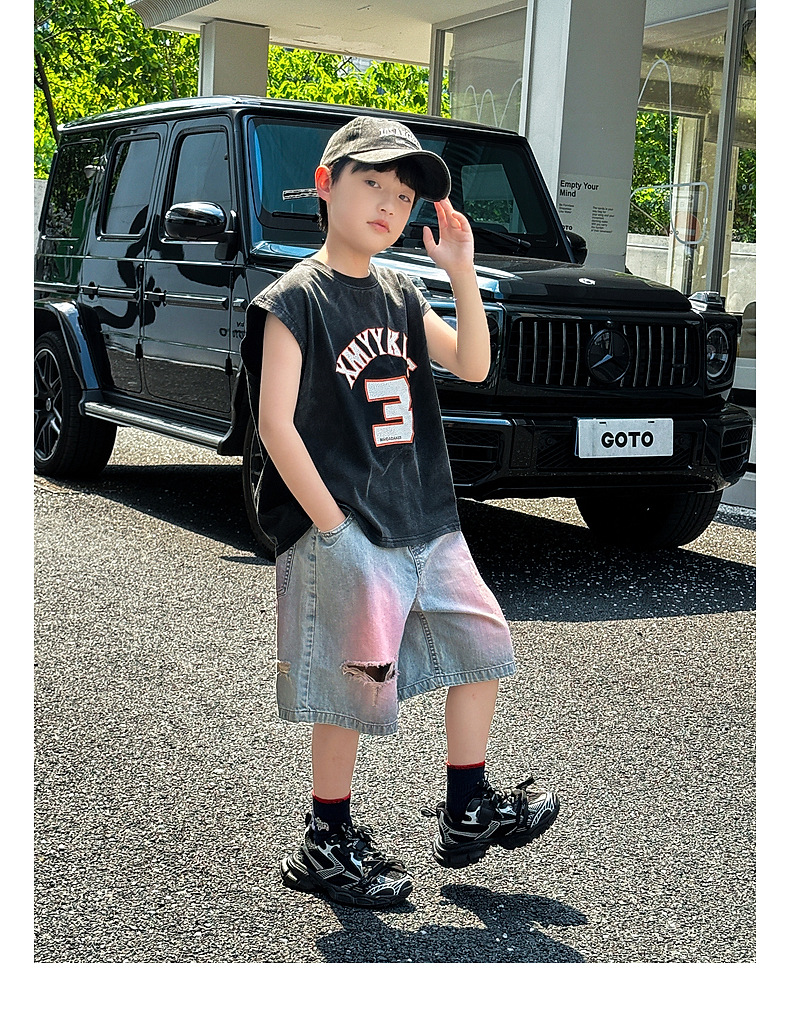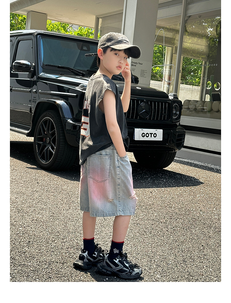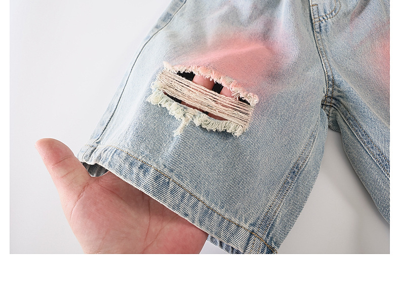 Panda Yuanyuan 여름 어린이 찢어진 데님 반바지 얇은 2025 여름 새 스타일 소년 5부 바지 여름 착용스토어 가기
