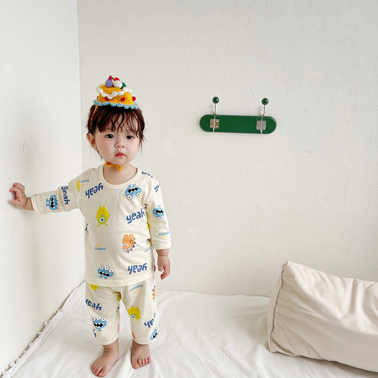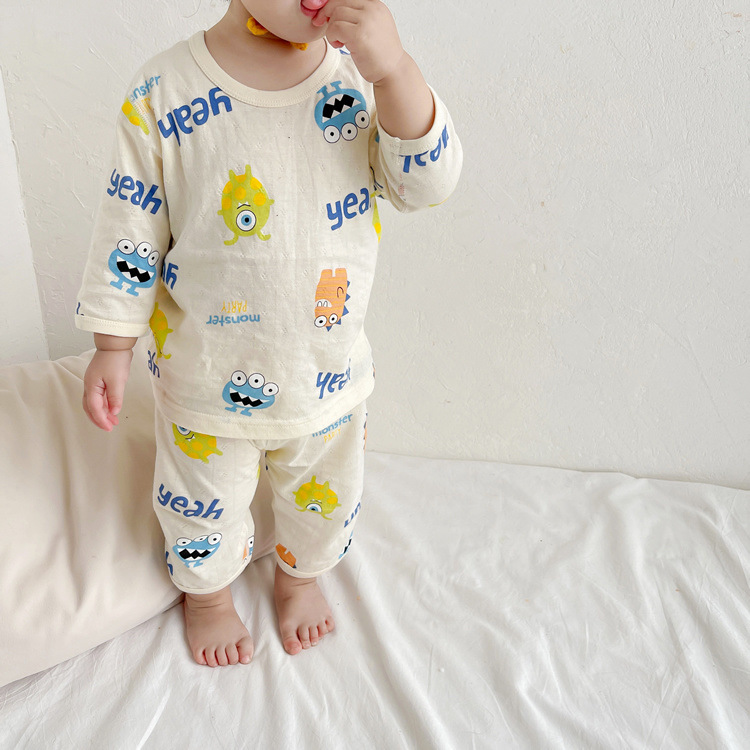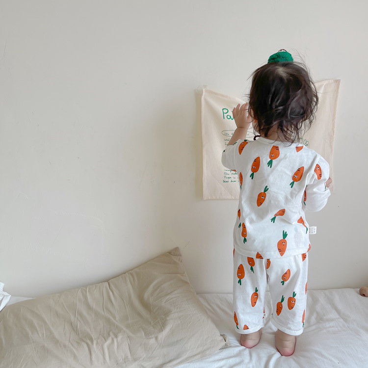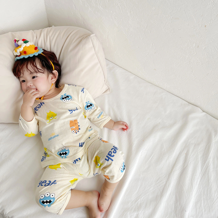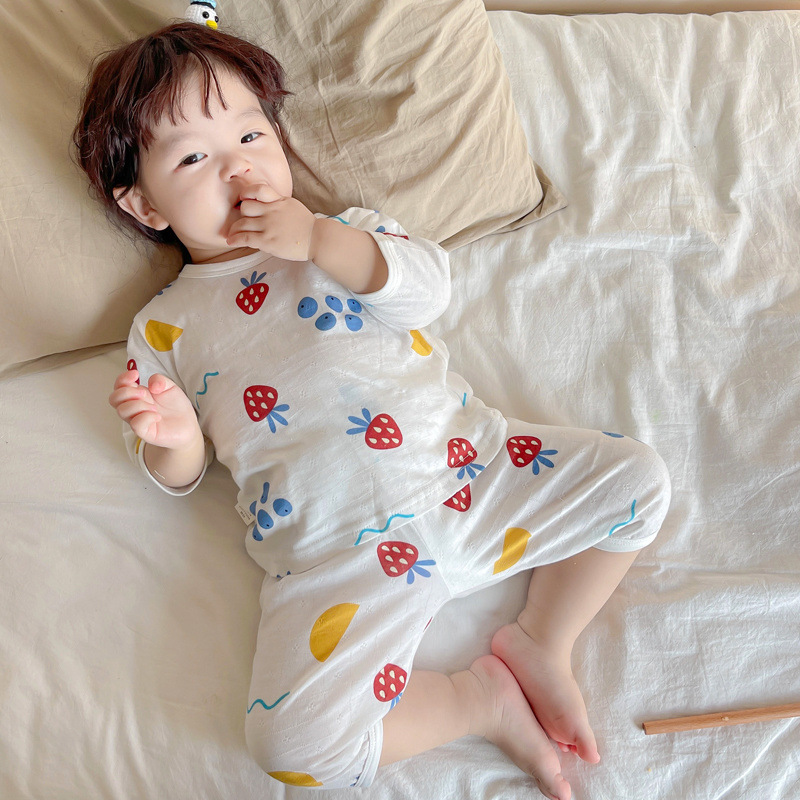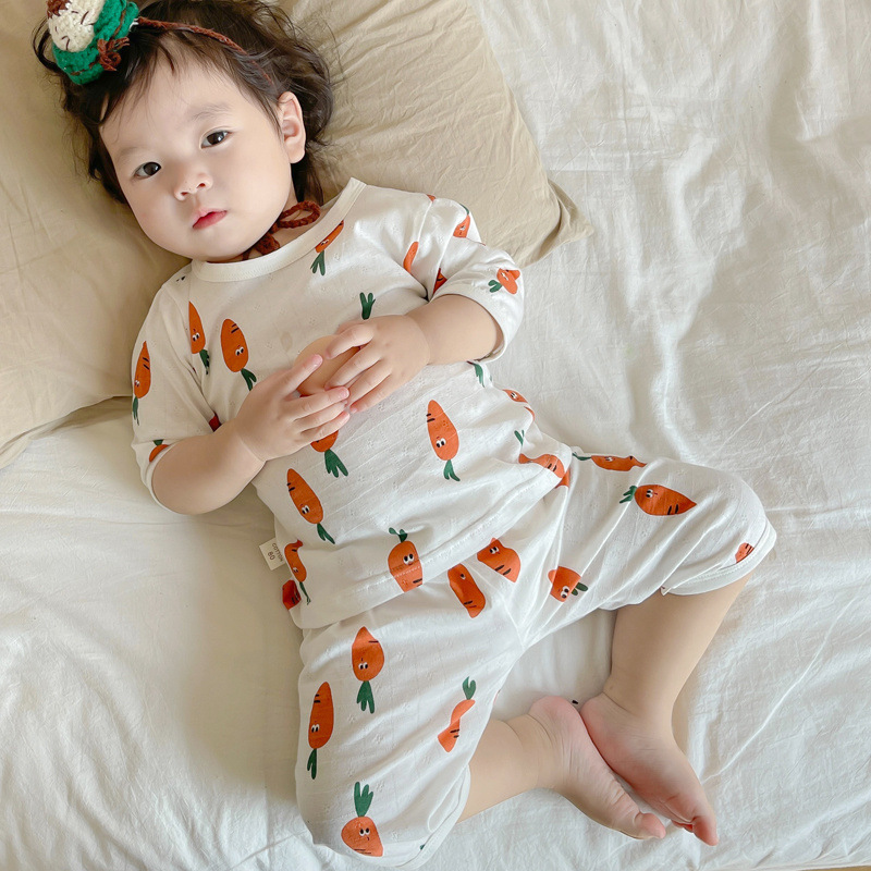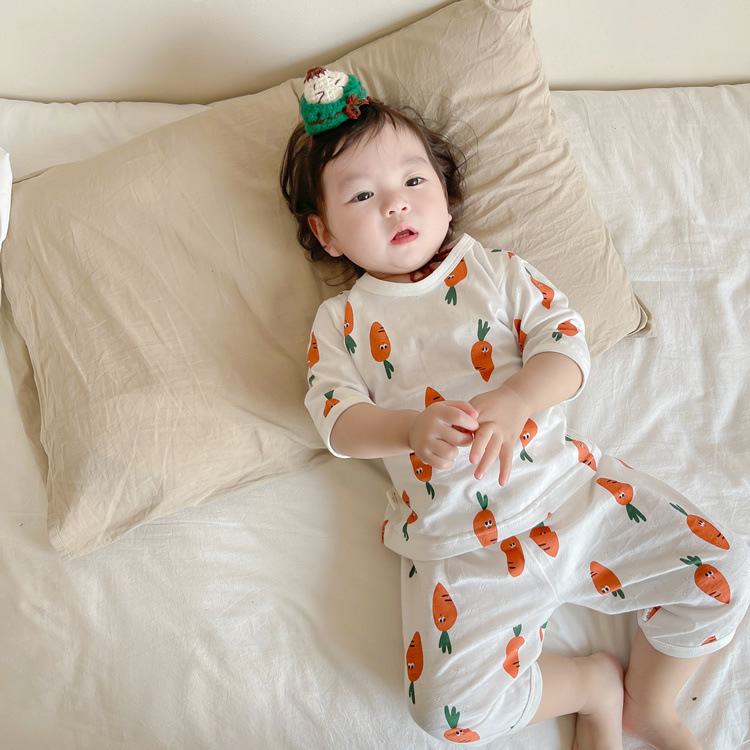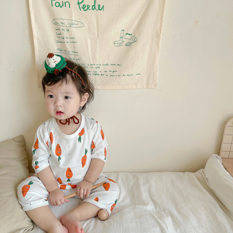 여름 아기 가정 의류 얇은 순수 면화 반팔 호흡 에어컨 의류 어린이 잠옷 소년과 소녀 반팔 양복스토어 가기