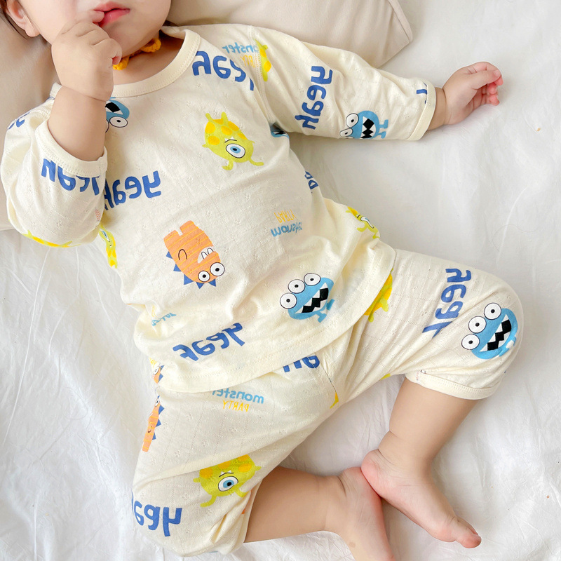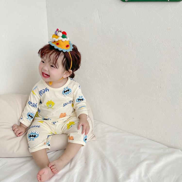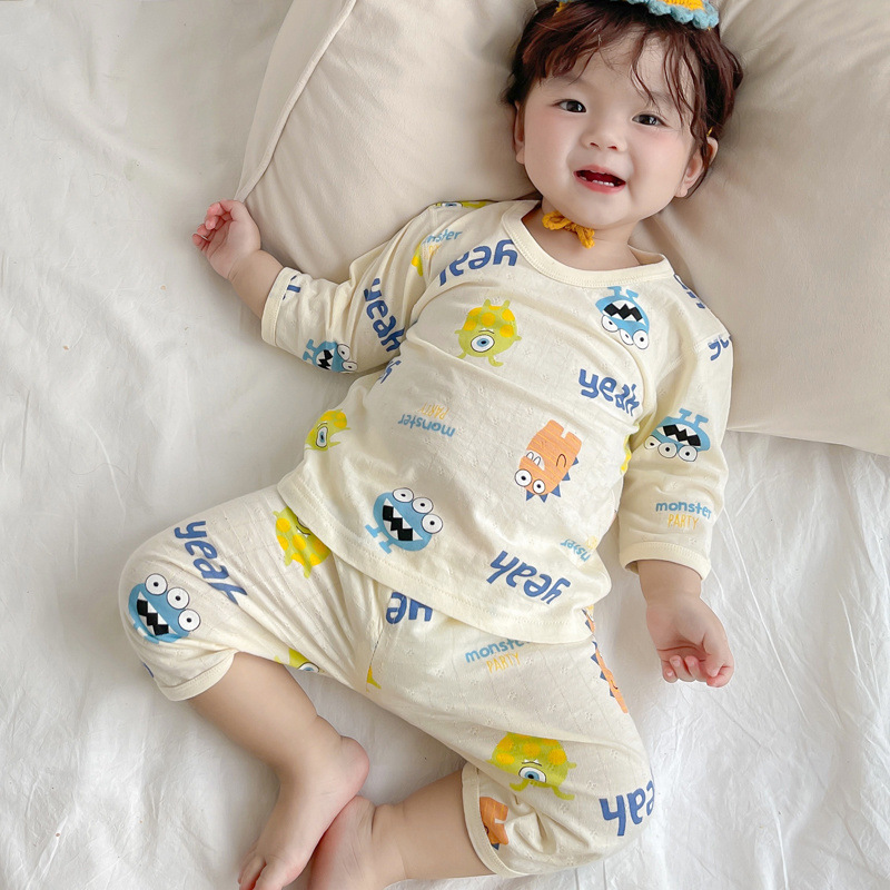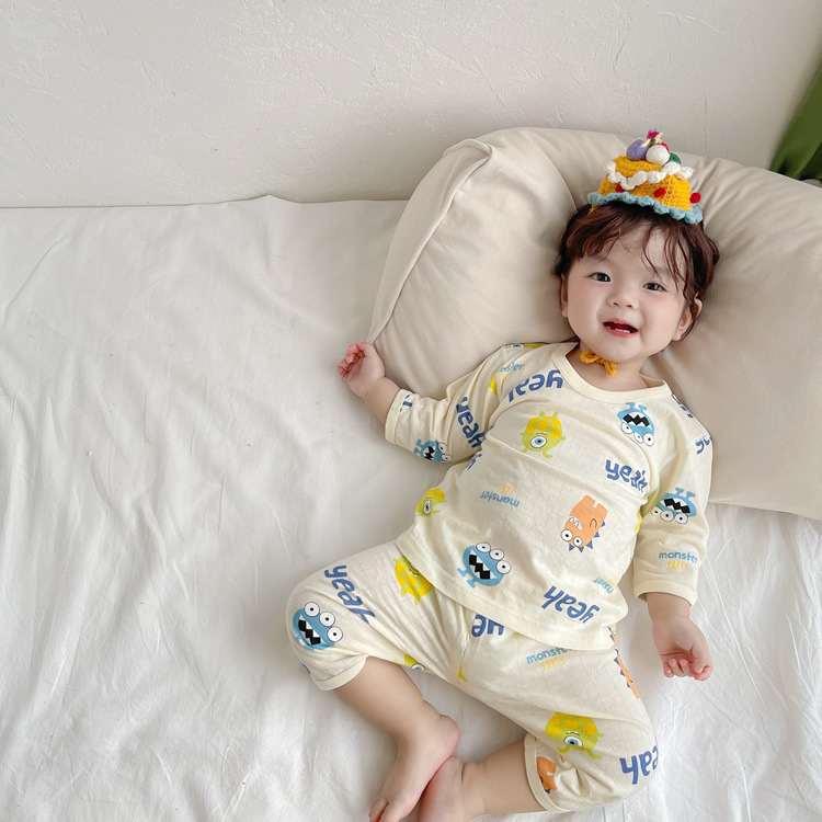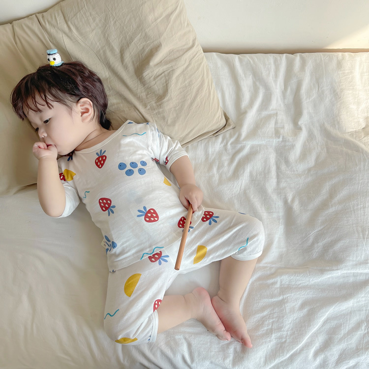 여름 아기 가정 의류 얇은 순수 면화 반팔 호흡 에어컨 의류 어린이 잠옷 소년과 소녀 반팔 양복