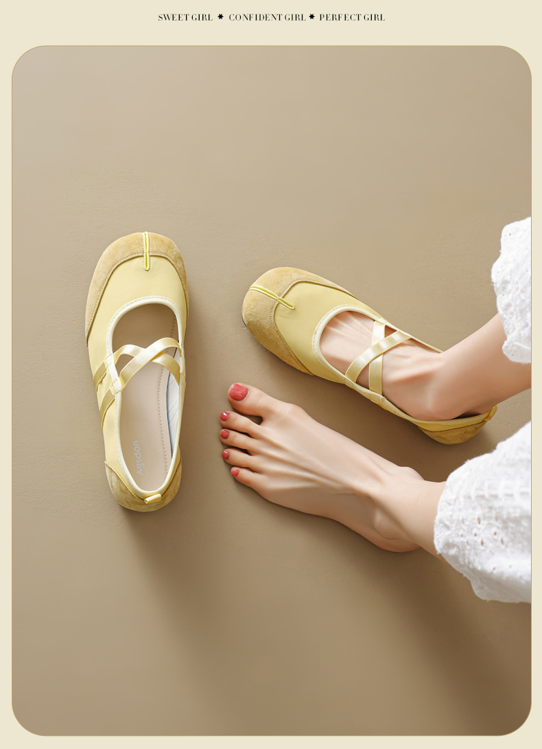 오구시덴 옐로우 버켄스탁 메리제인 여성화 2026년 봄 신상 소프트솔 얕은굽 플랫 슈즈