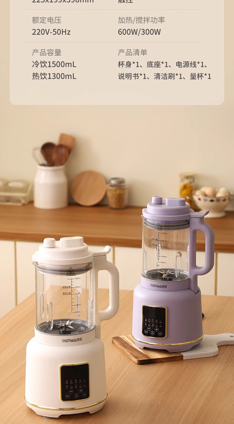 OSTMARS 독일 1.8L 벽 파괴 기계 가정용 완전 자동 필터 프리 두유 기계 다기능 주스 및 조리 기계