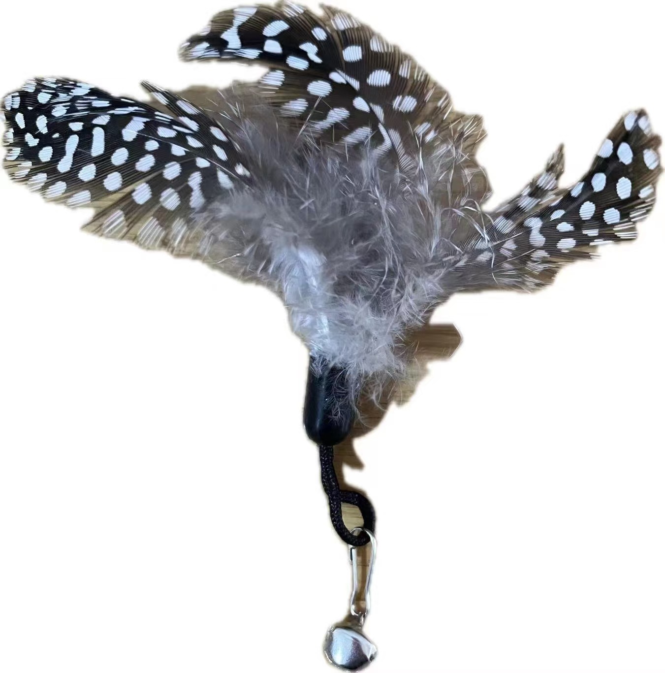 • 나무 손잡이가 달린 고양이 놀리는 막대기 + 점박이 깃털 세트