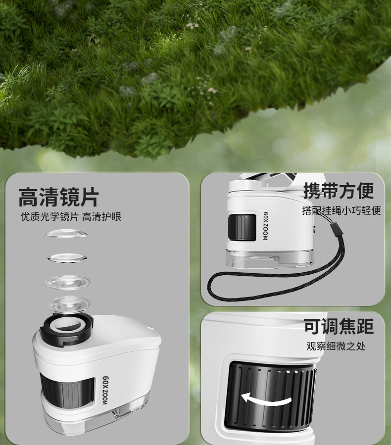 Xueyouma 어린이 미니 현미경 광학 휴대용 돋보기 초등 및 중등 학생 교육 과학 실험 장난감