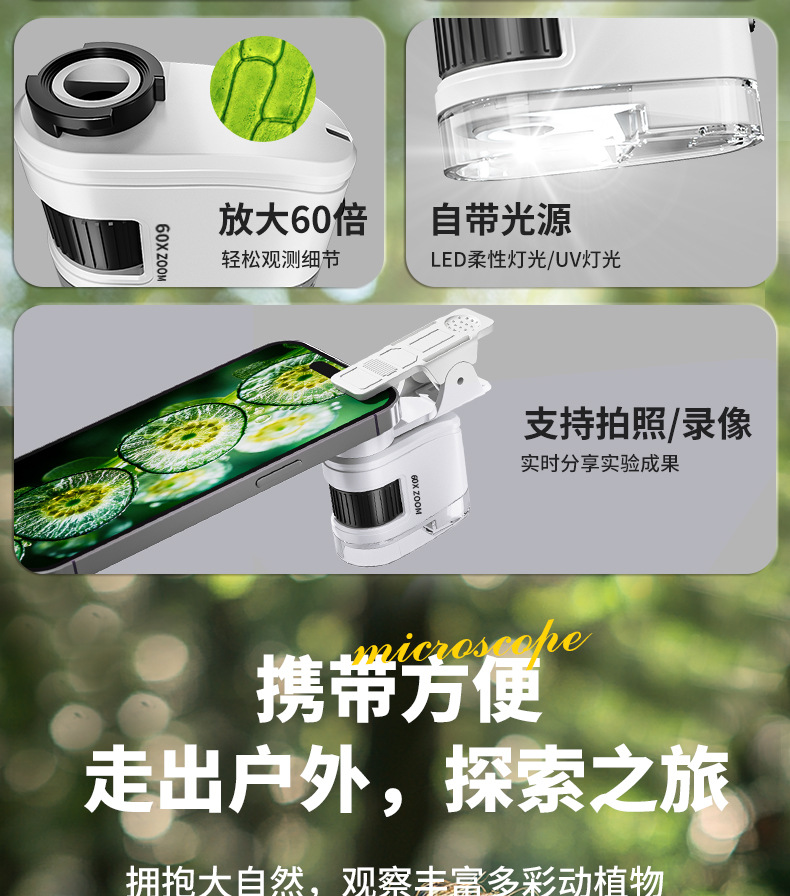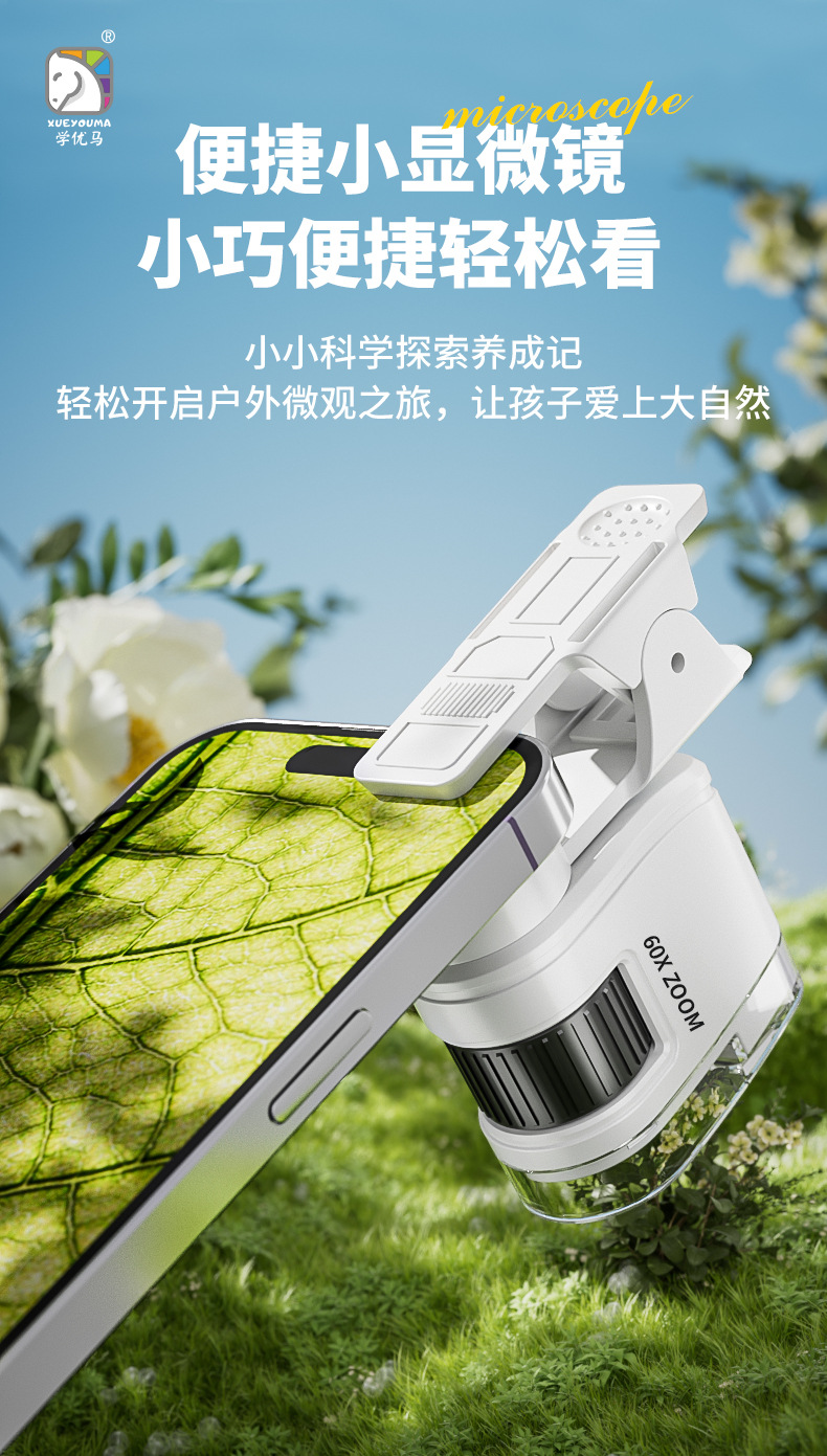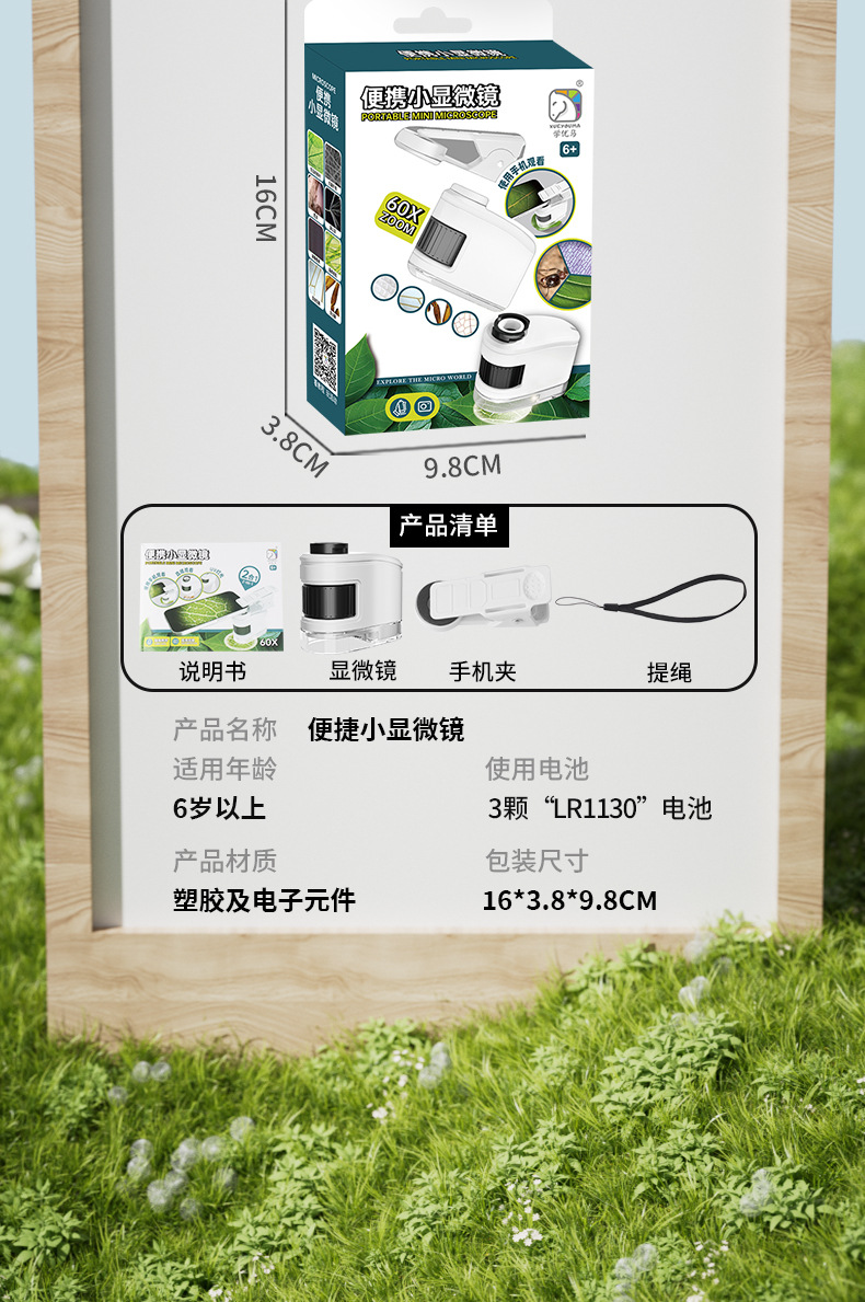 Xueyouma 어린이 미니 현미경 광학 휴대용 돋보기 초등 및 중등 학생 교육 과학 실험 장난감스토어 가기