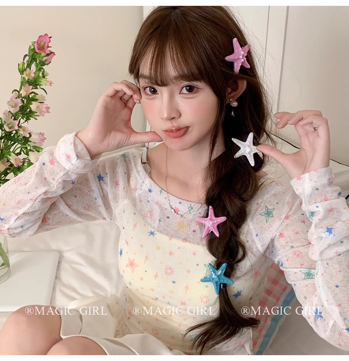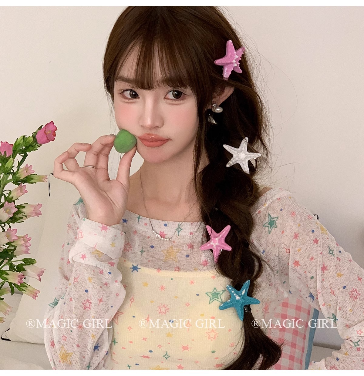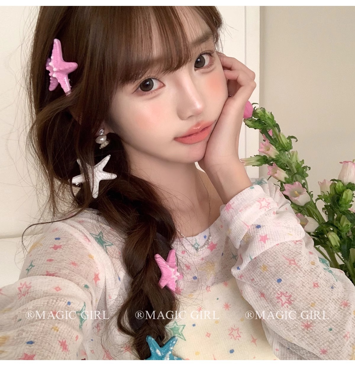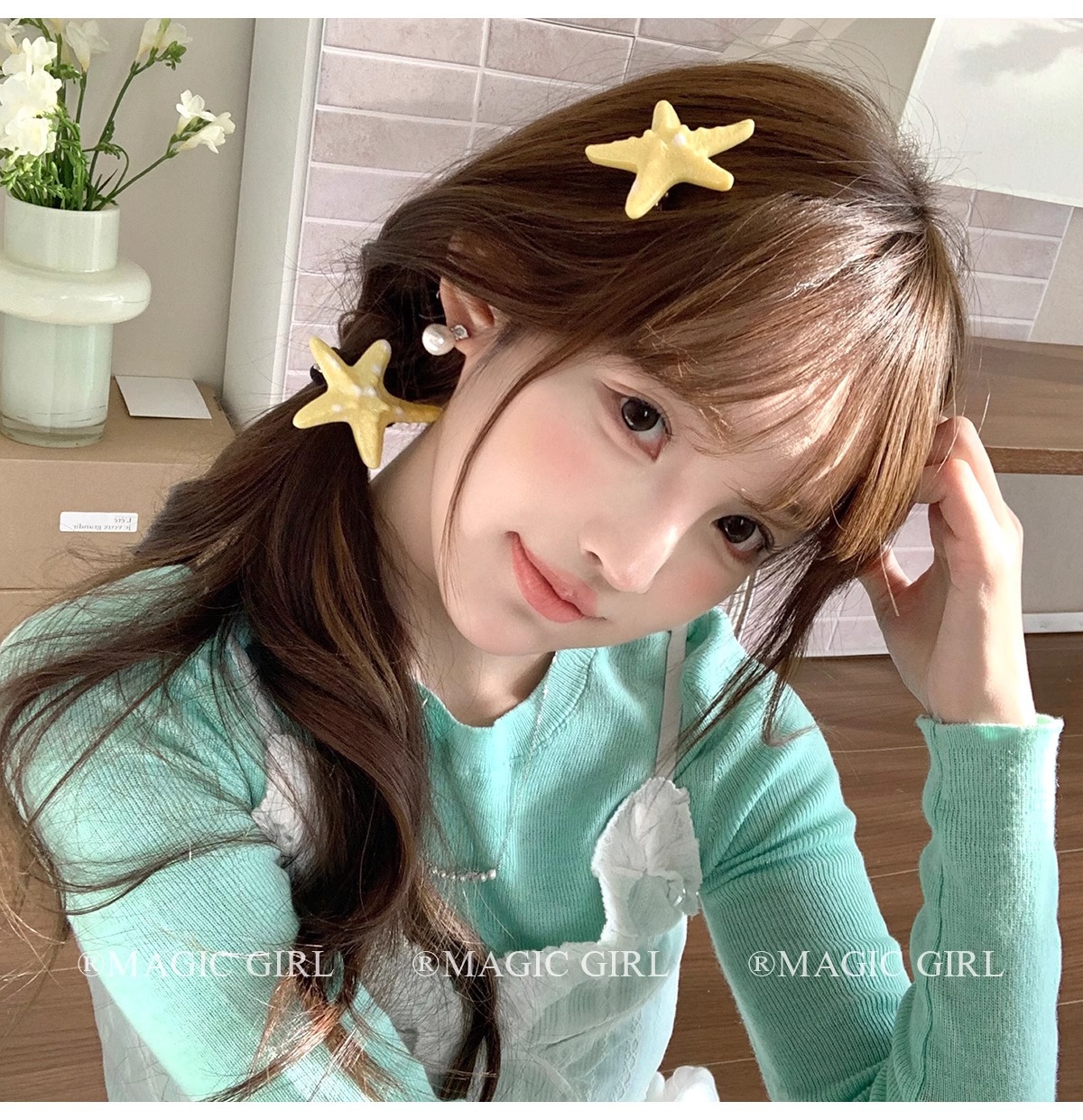 슈퍼 요정 봄과 여름 불가사리 꽃 머리핀 여성 스타 사이드 머리핀 해변 여행 분위기 머리핀 헤어 액세서리