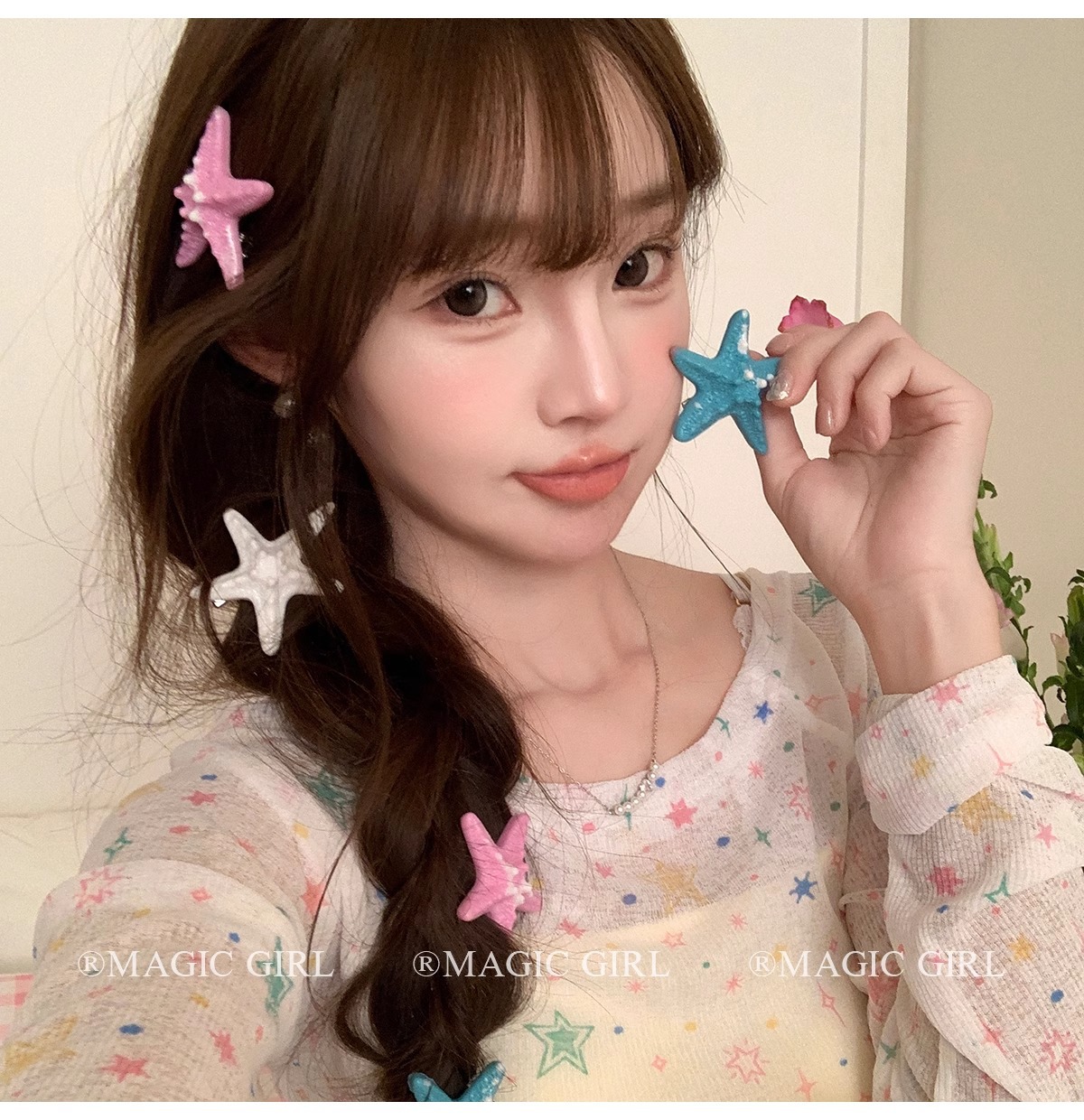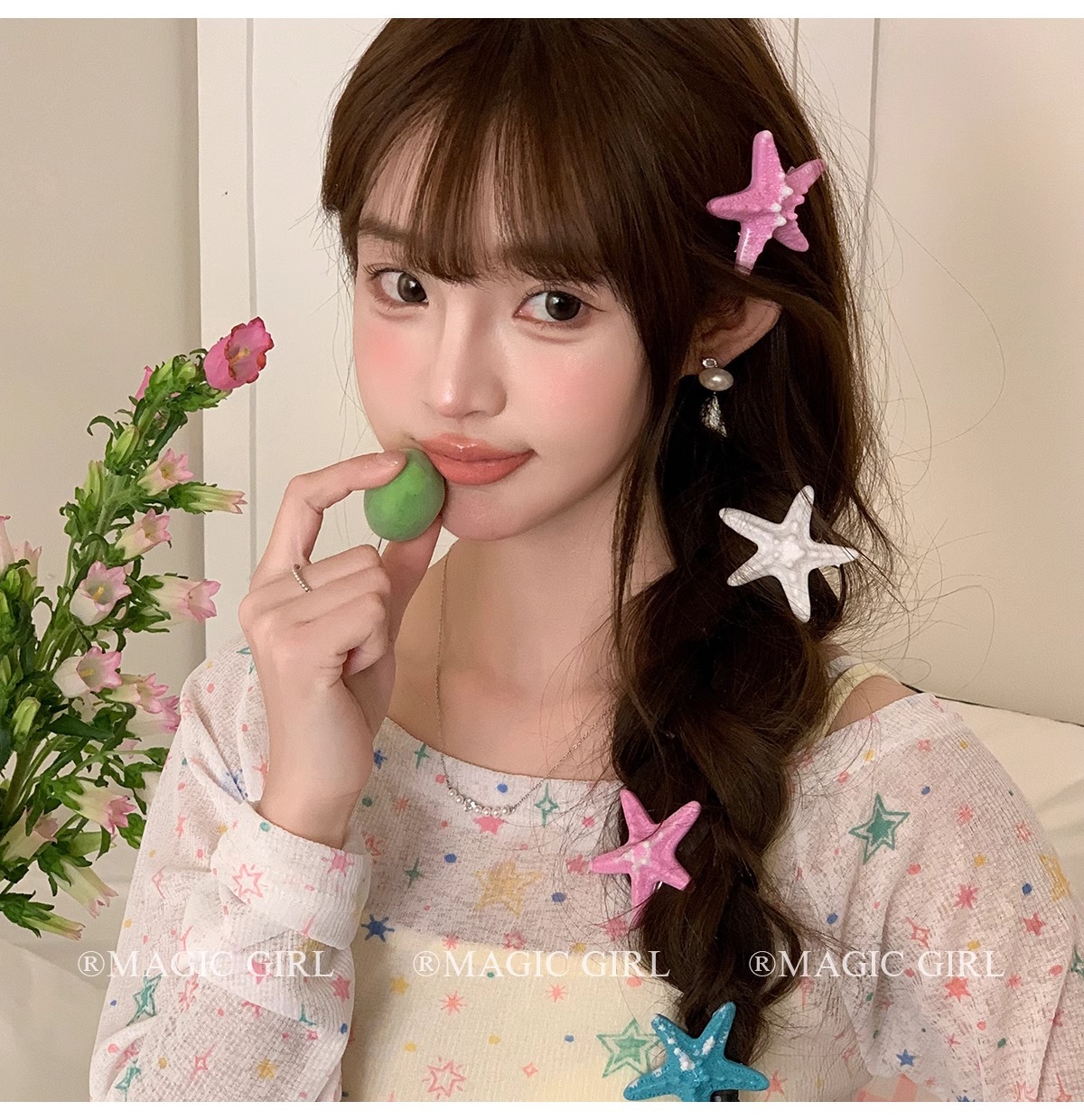 슈퍼 요정 봄과 여름 불가사리 꽃 머리핀 여성 스타 사이드 머리핀 해변 여행 분위기 머리핀 헤어 액세서리스토어 가기