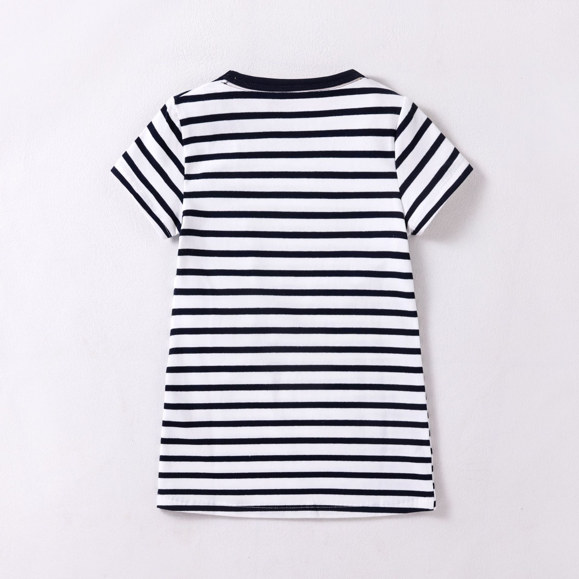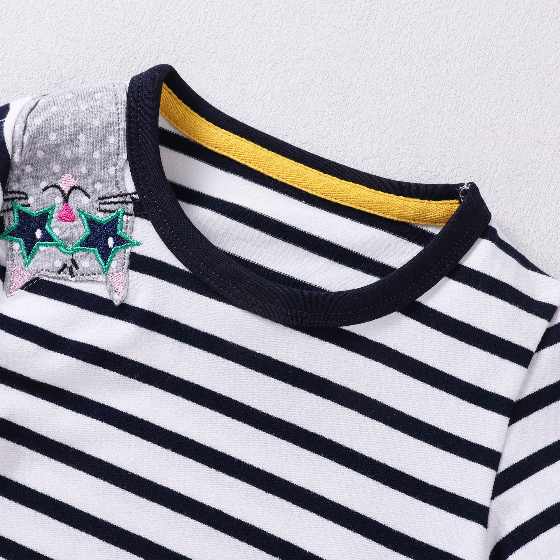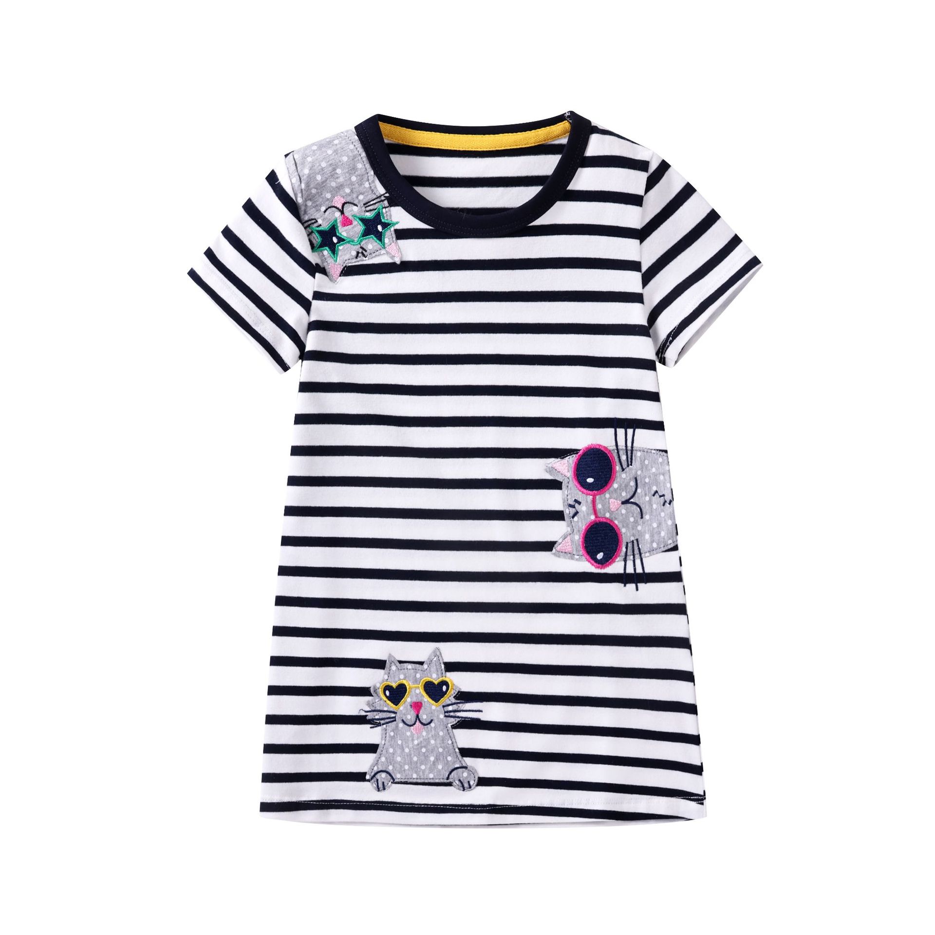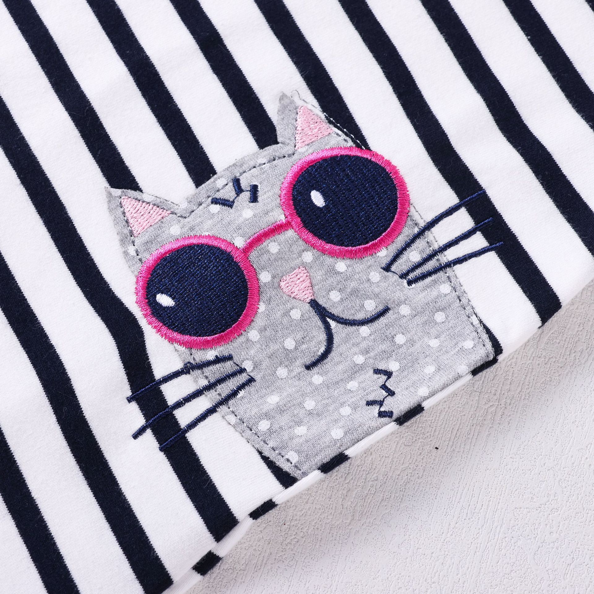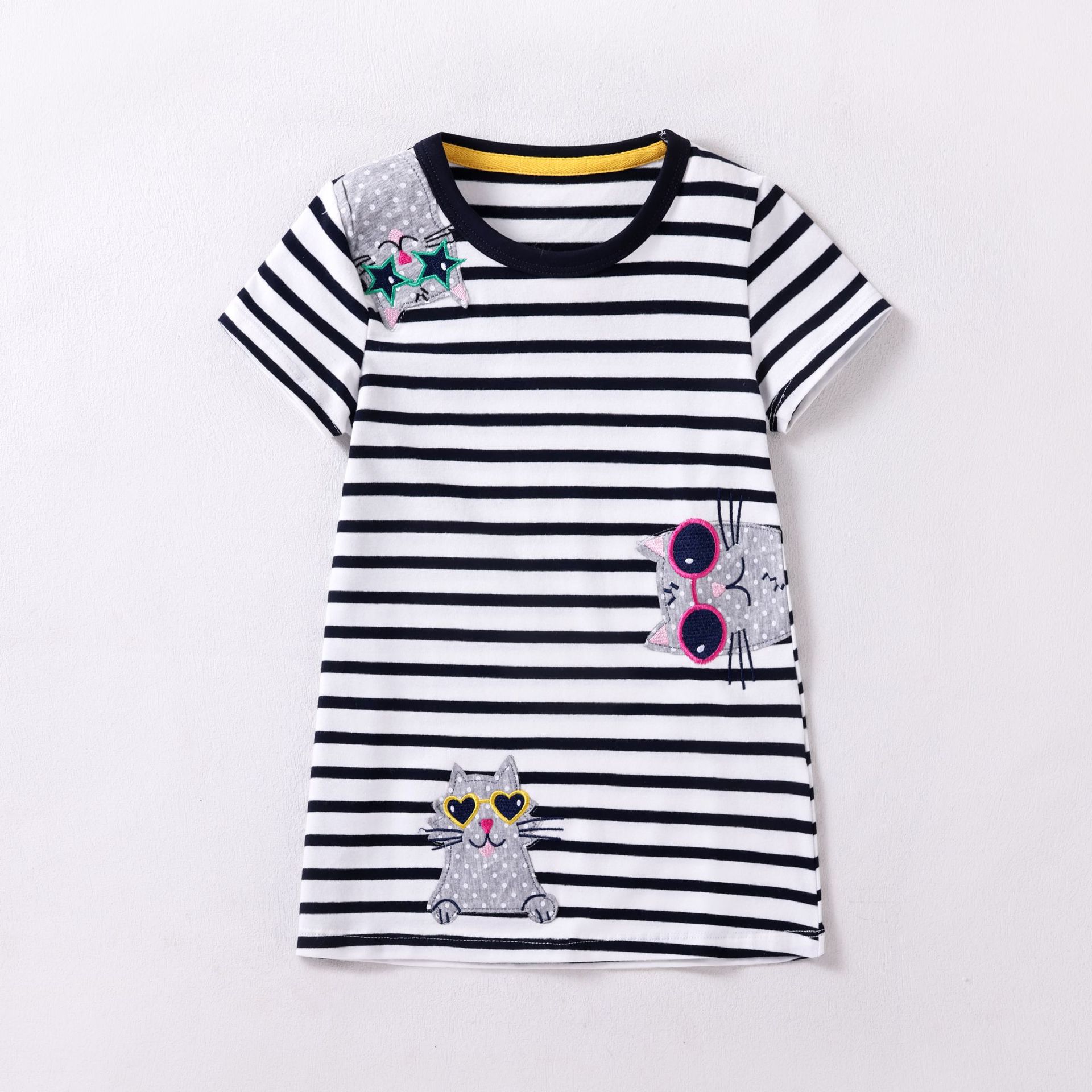 유럽과 미국 아동복 새로운 스타일 여아 드레스 여름 드레스 여아 패션 스커트 줄무늬 고양이 자수 스커트 중간 길이스토어 가기