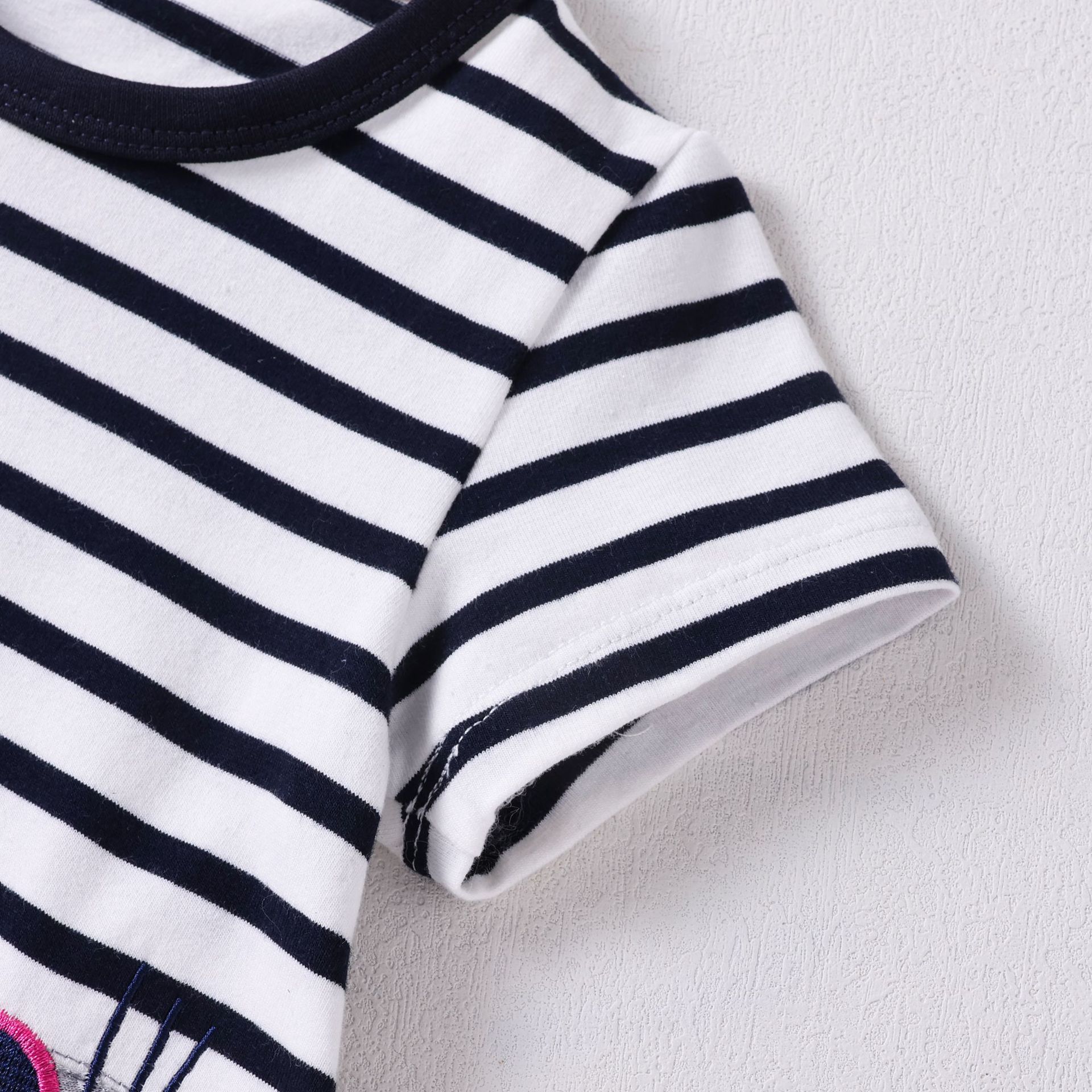 유럽과 미국 아동복 새로운 스타일 여아 드레스 여름 드레스 여아 패션 스커트 줄무늬 고양이 자수 스커트 중간 길이