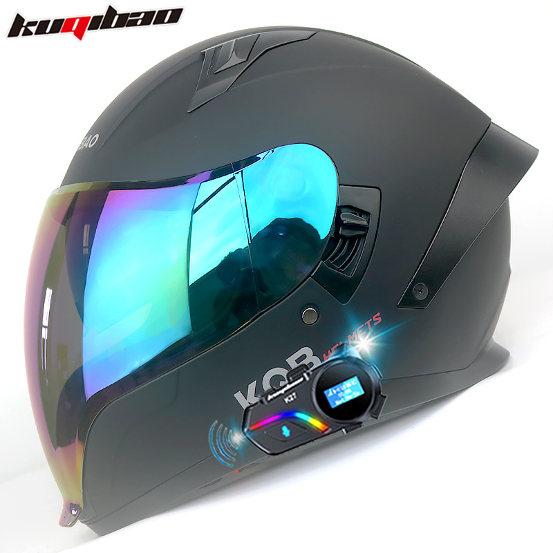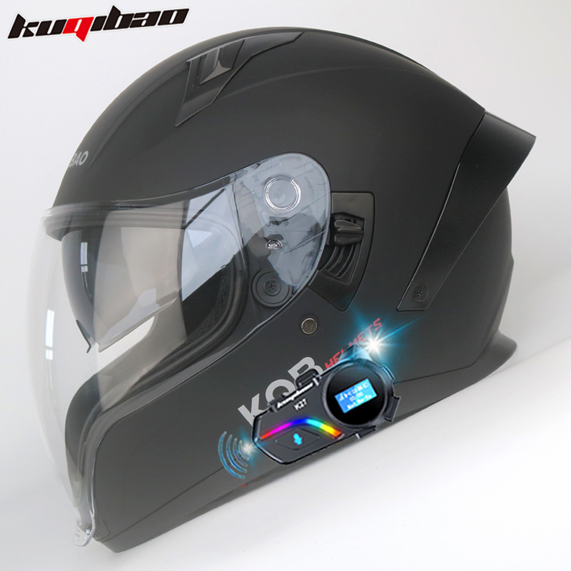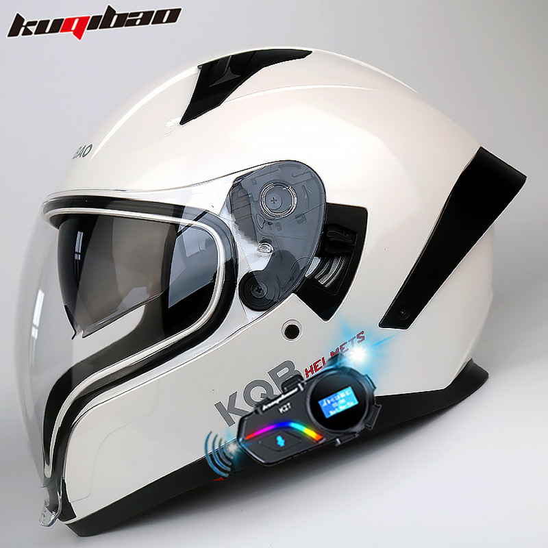 Cool Qibao 듀얼 렌즈 오토바이 헬멧 전체 헬멧 식수 가능 3C 인증 경량 사계절 유령 페이스 헬멧 블루투스 포함