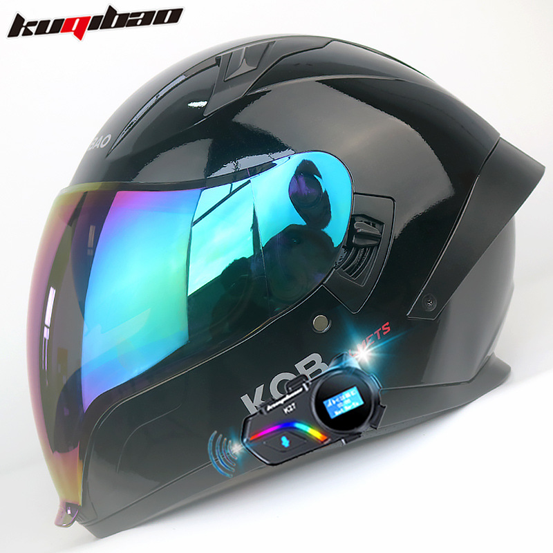 Cool Qibao 듀얼 렌즈 오토바이 헬멧 전체 헬멧 식수 가능 3C 인증 경량 사계절 유령 페이스 헬멧 블루투스 포함스토어 가기