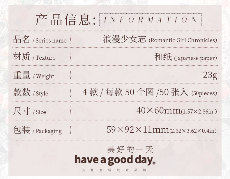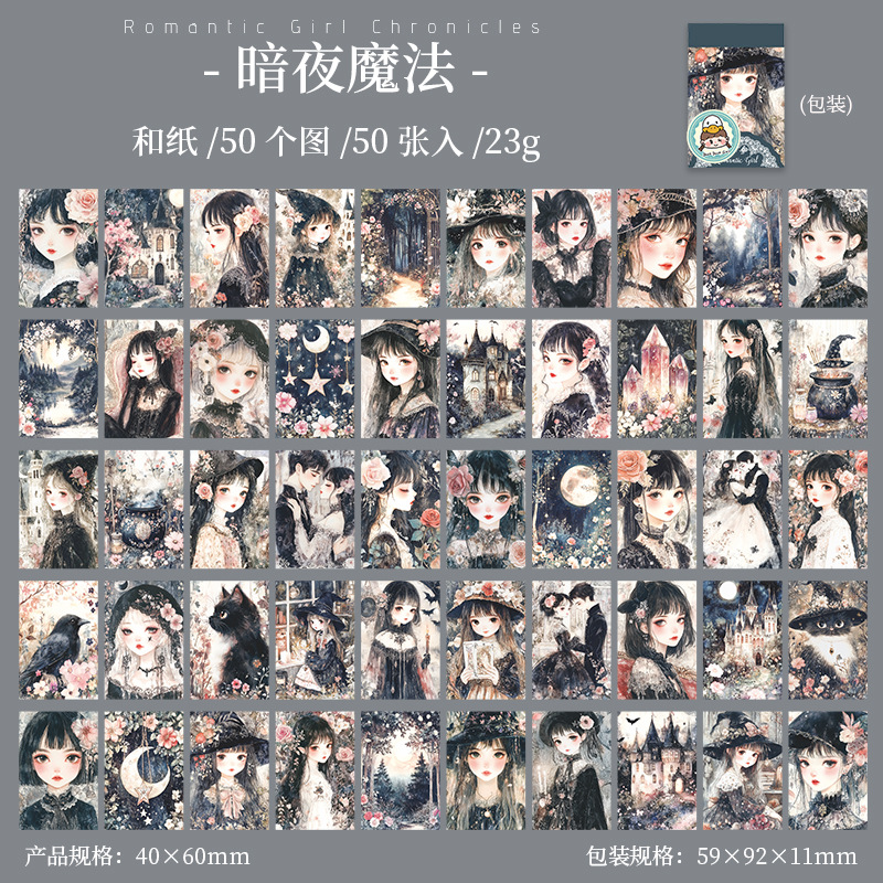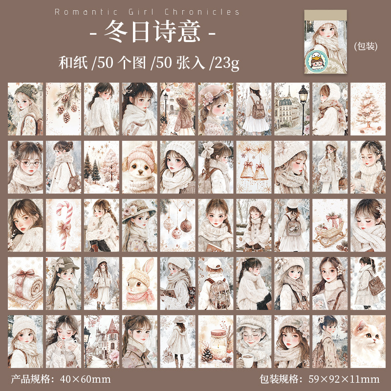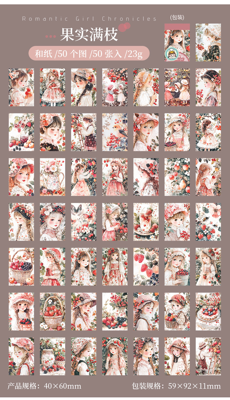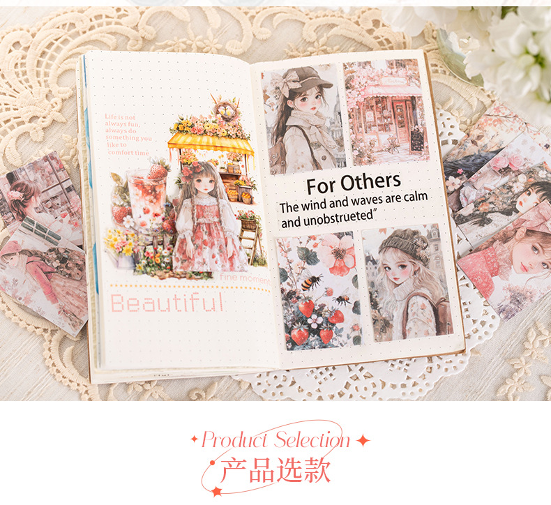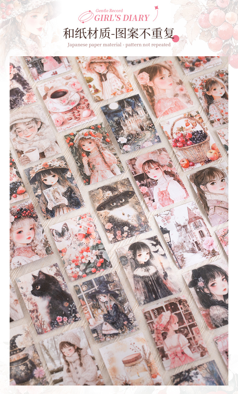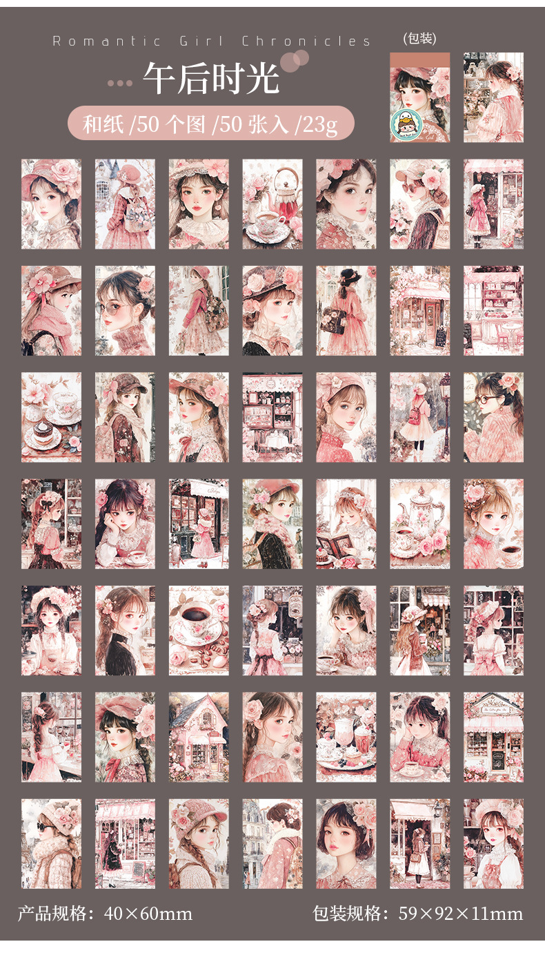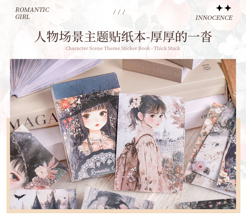 좋은 하루 스티커 콩 책 로맨틱 소녀 시리즈 캐릭터 배경 핸드북 장식 재료 50장