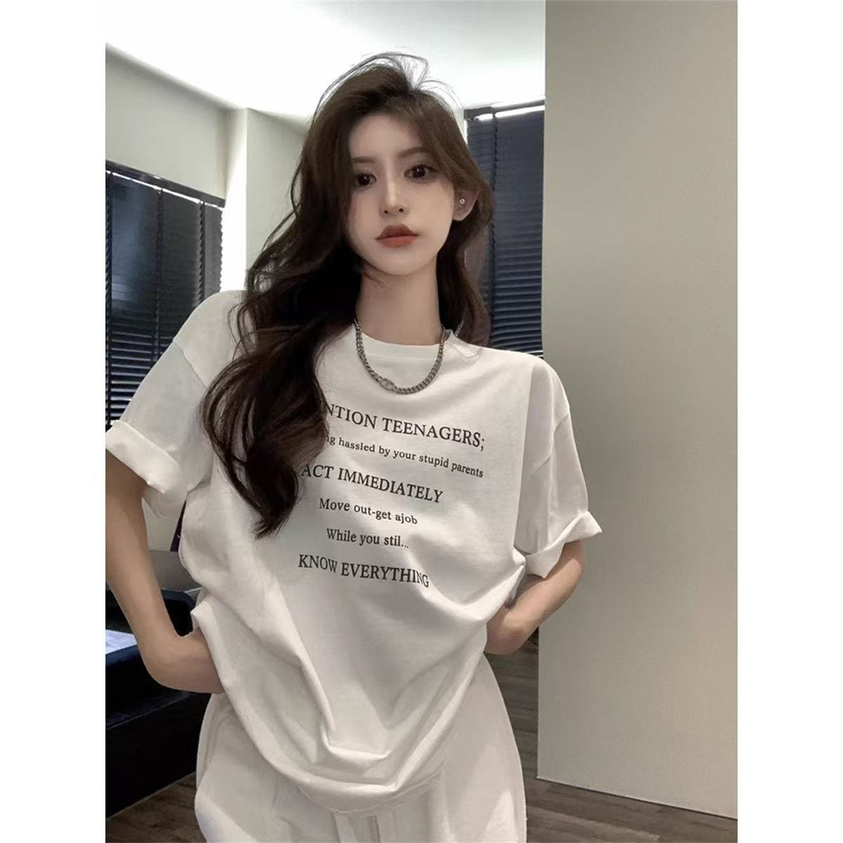 알파벳 프린트 반팔 여성 여름 신상 홍콩 스타일 티셔츠 캐주얼 루즈핏 아이스 실크 시원한 탑 아이스 실크 느낌