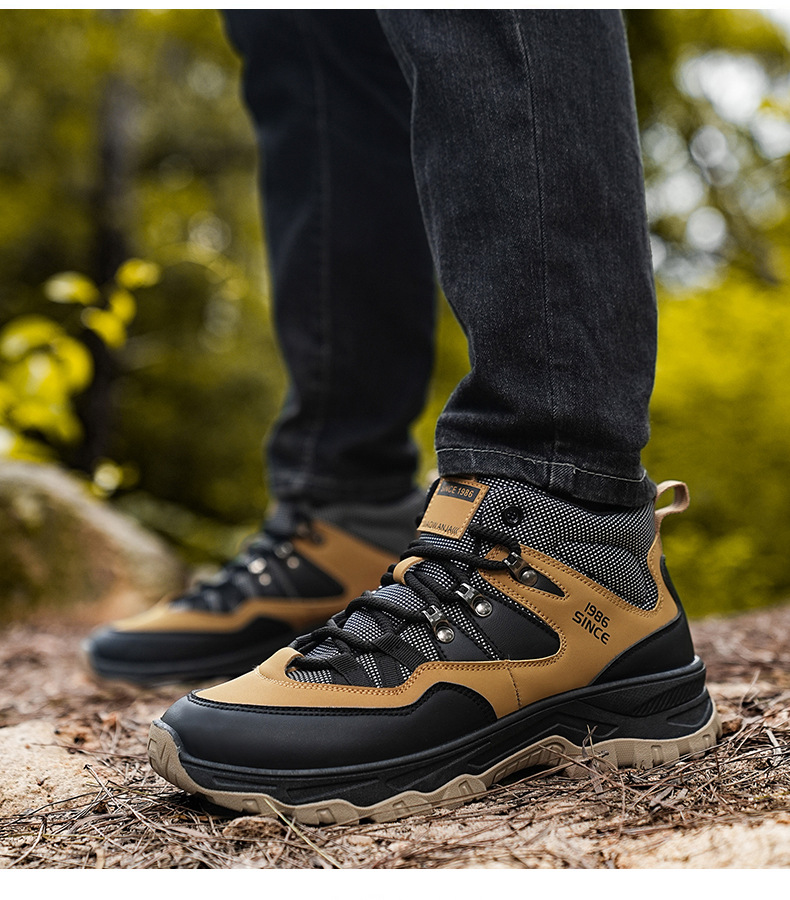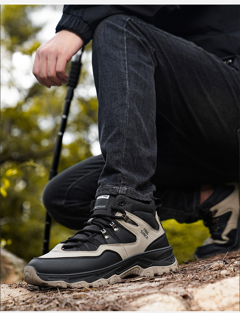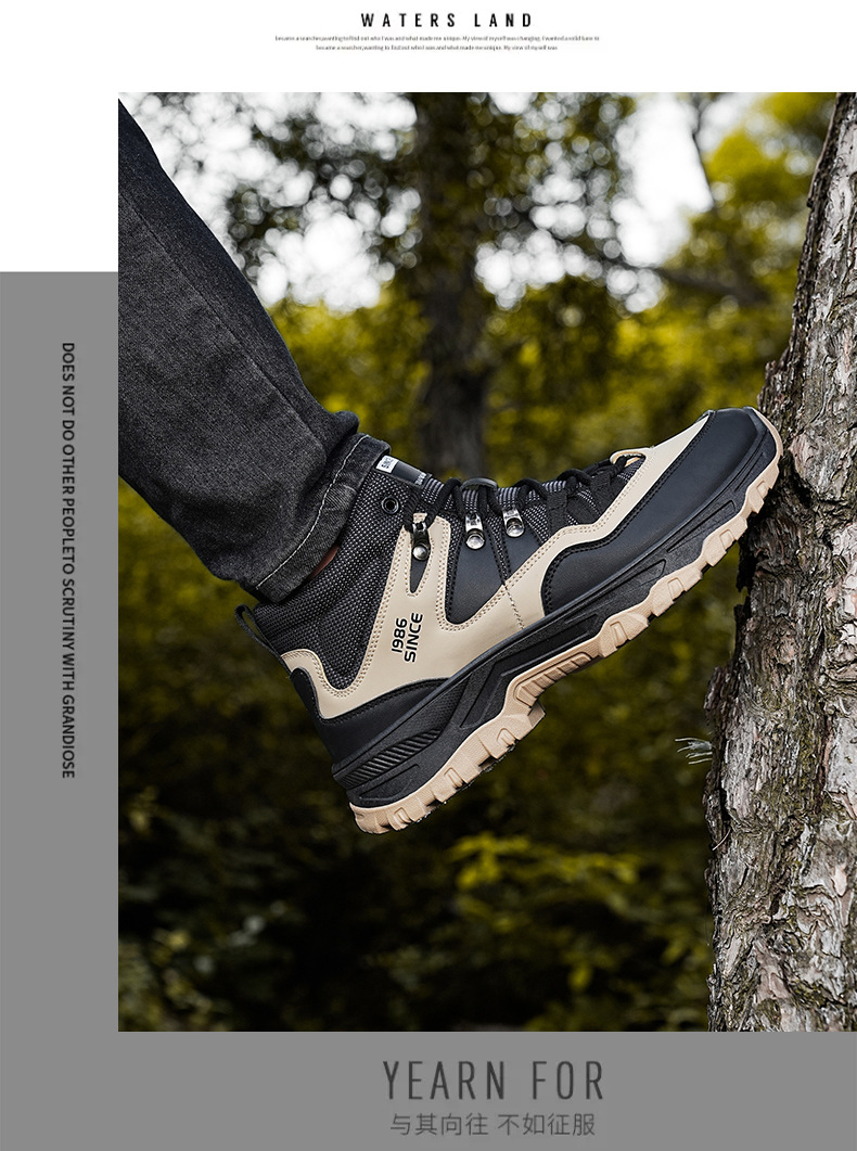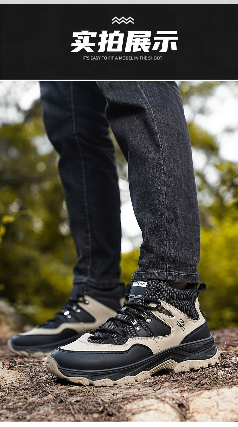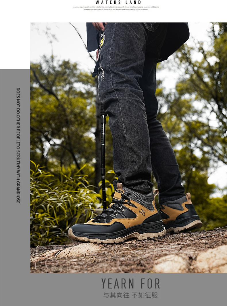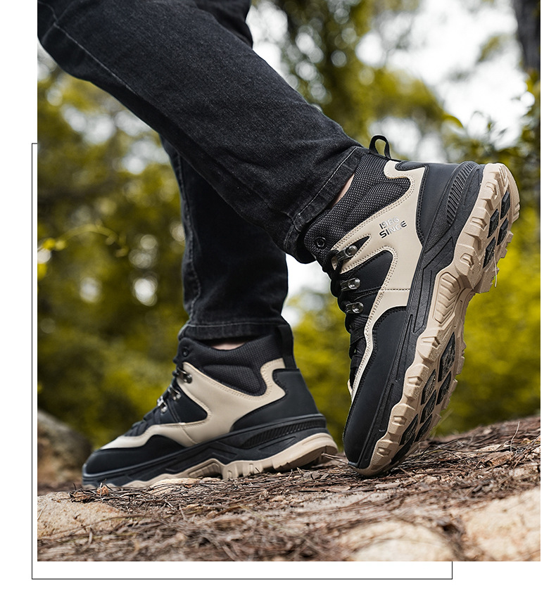 남성용 야외 하이킹 신발, 하이탑 하이킹 신발, 내마모성 미끄럼 방지 밑창 여행 신발, 여름 방수 작업 안전화스토어 가기