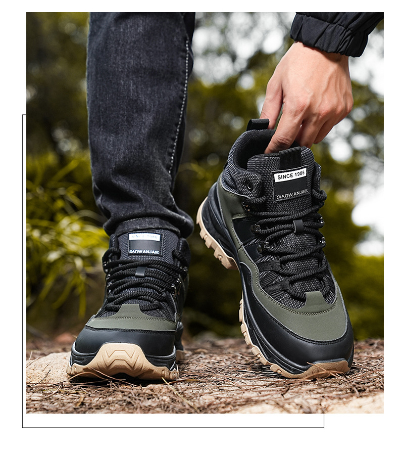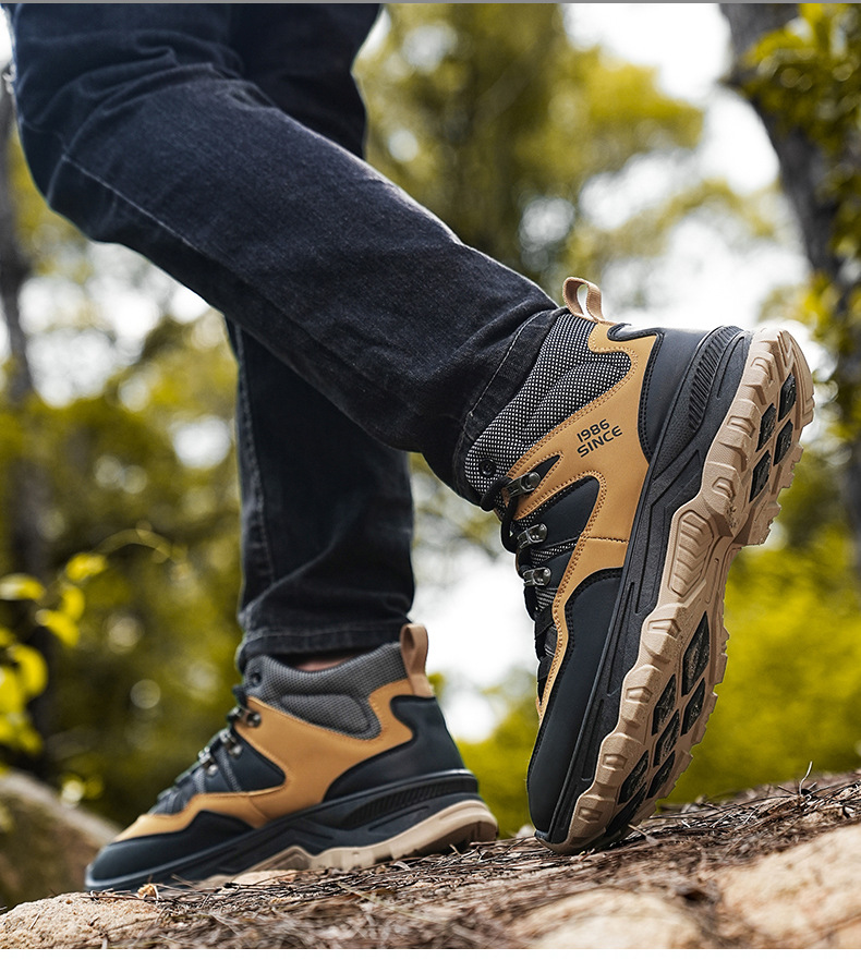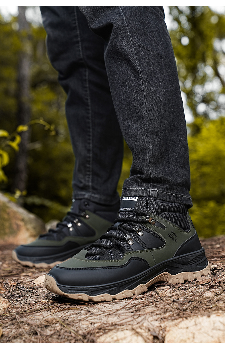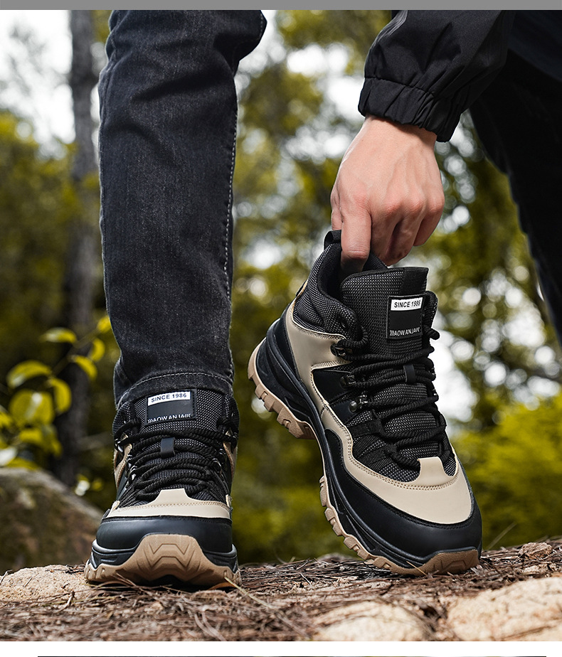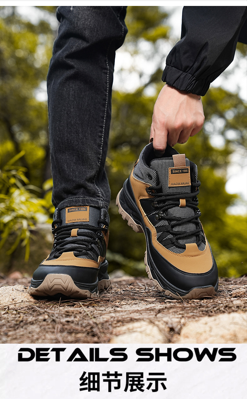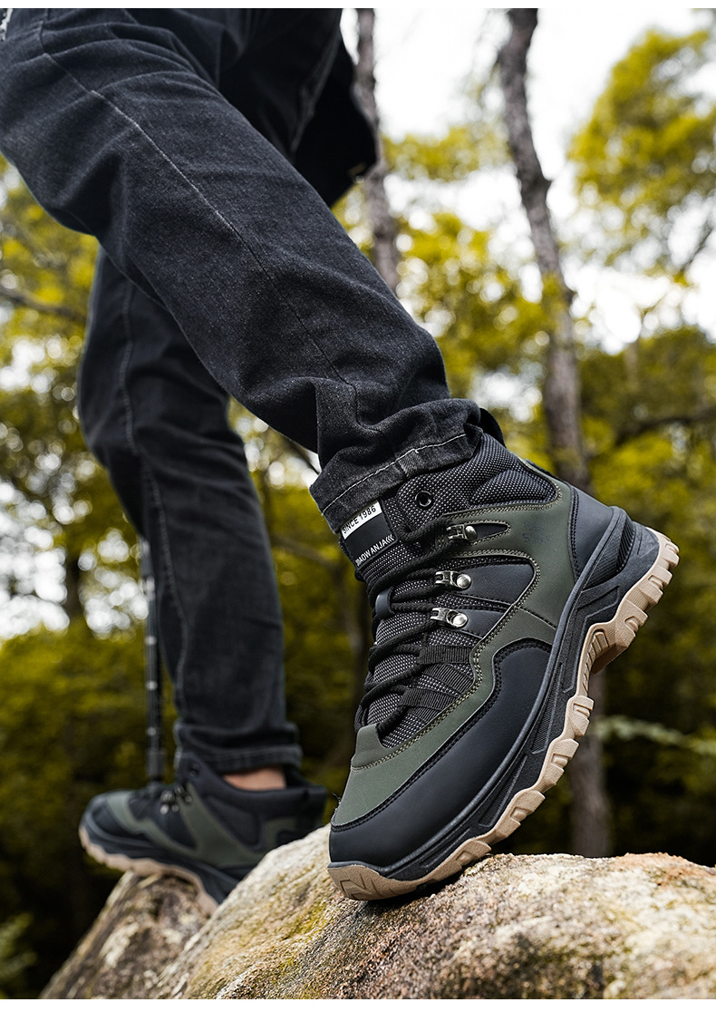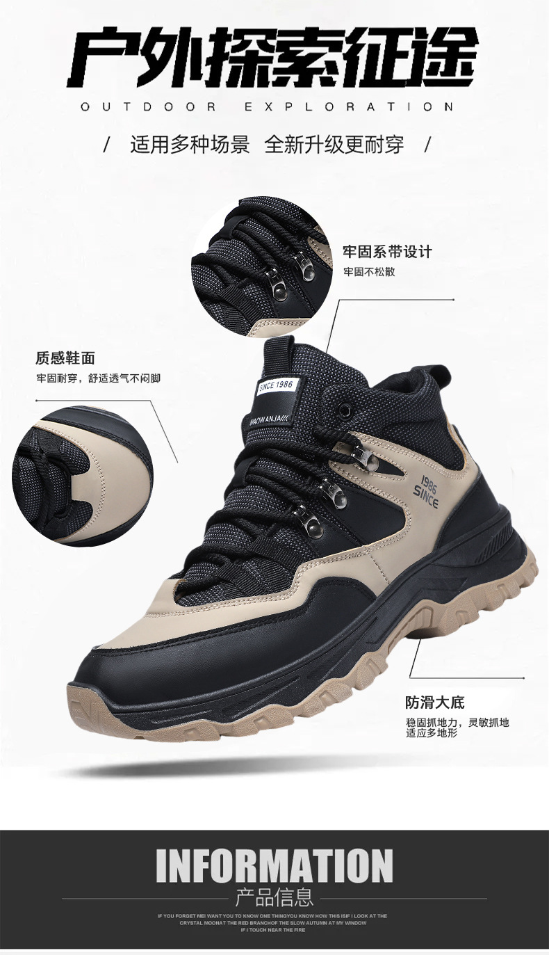 남성용 야외 하이킹 신발, 하이탑 하이킹 신발, 내마모성 미끄럼 방지 밑창 여행 신발, 여름 방수 작업 안전화스토어 가기