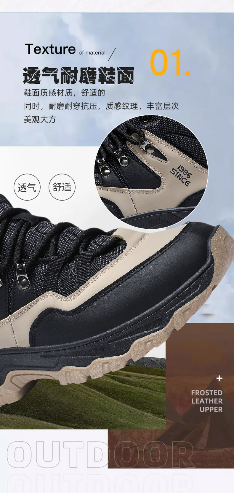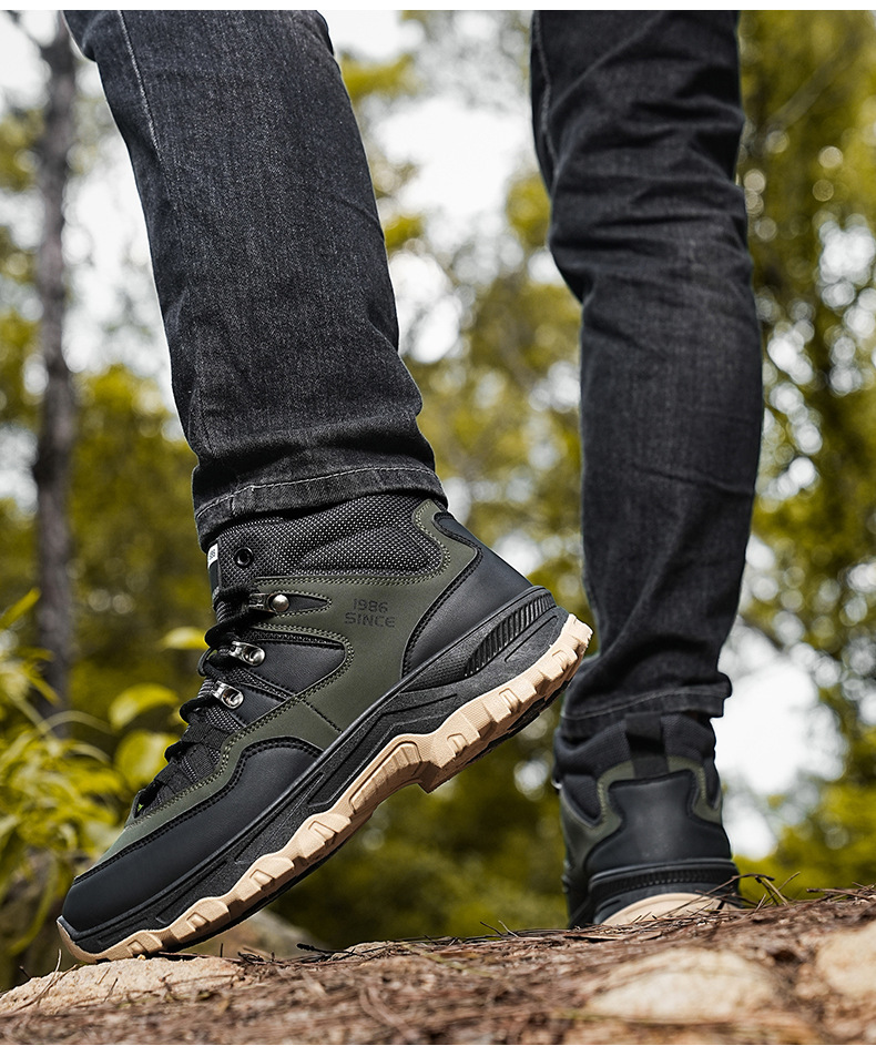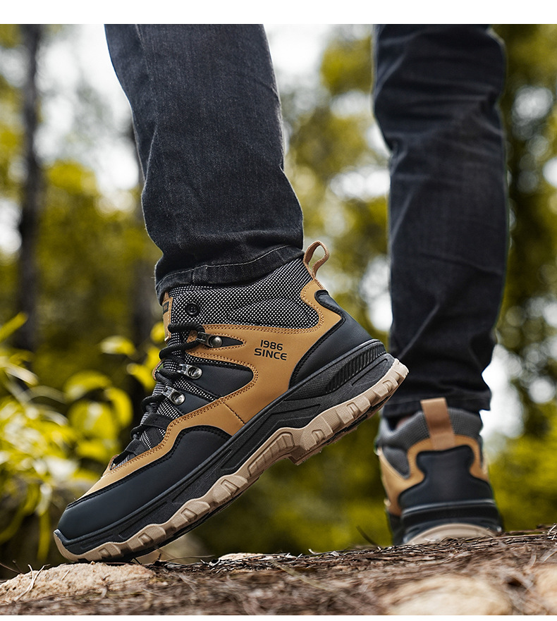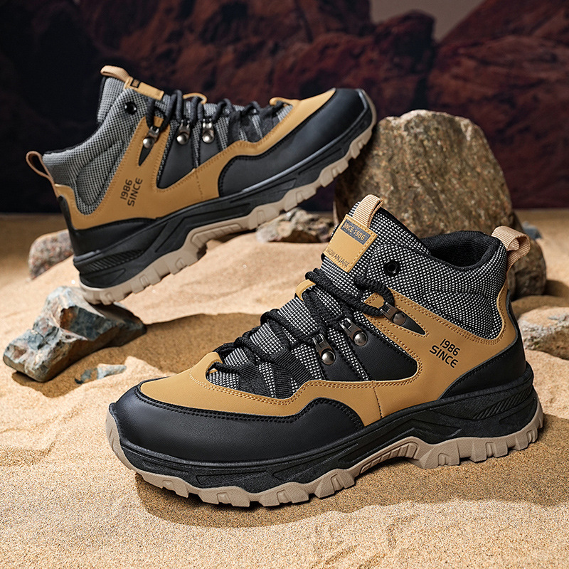 남성용 야외 하이킹 신발, 하이탑 하이킹 신발, 내마모성 미끄럼 방지 밑창 여행 신발, 여름 방수 작업 안전화