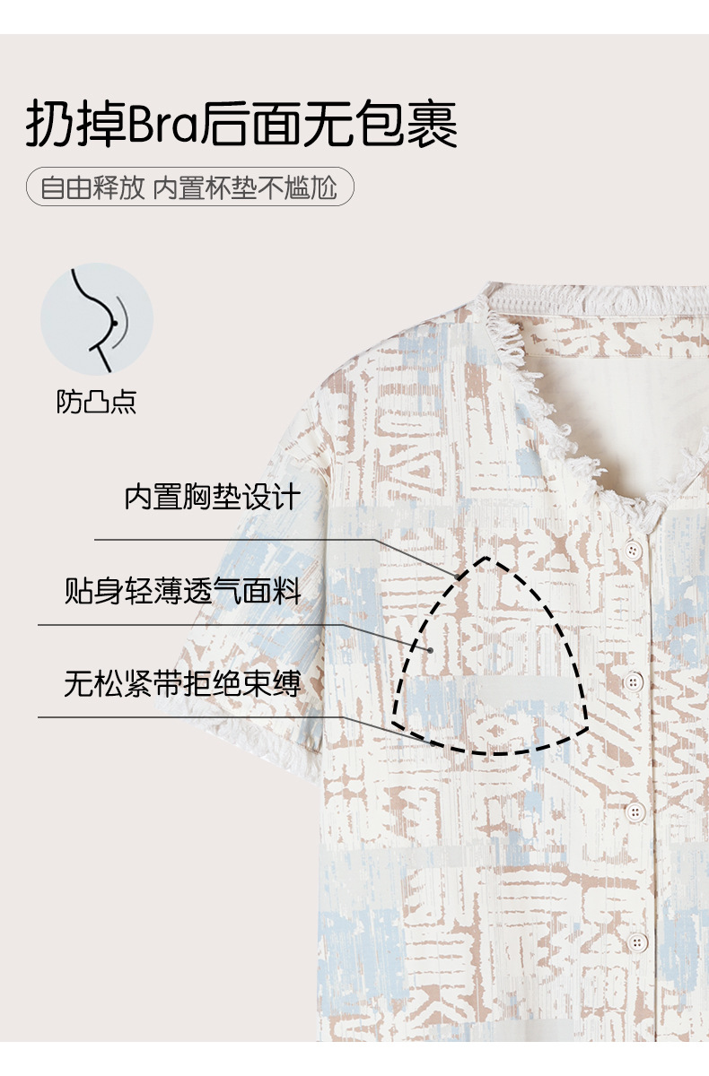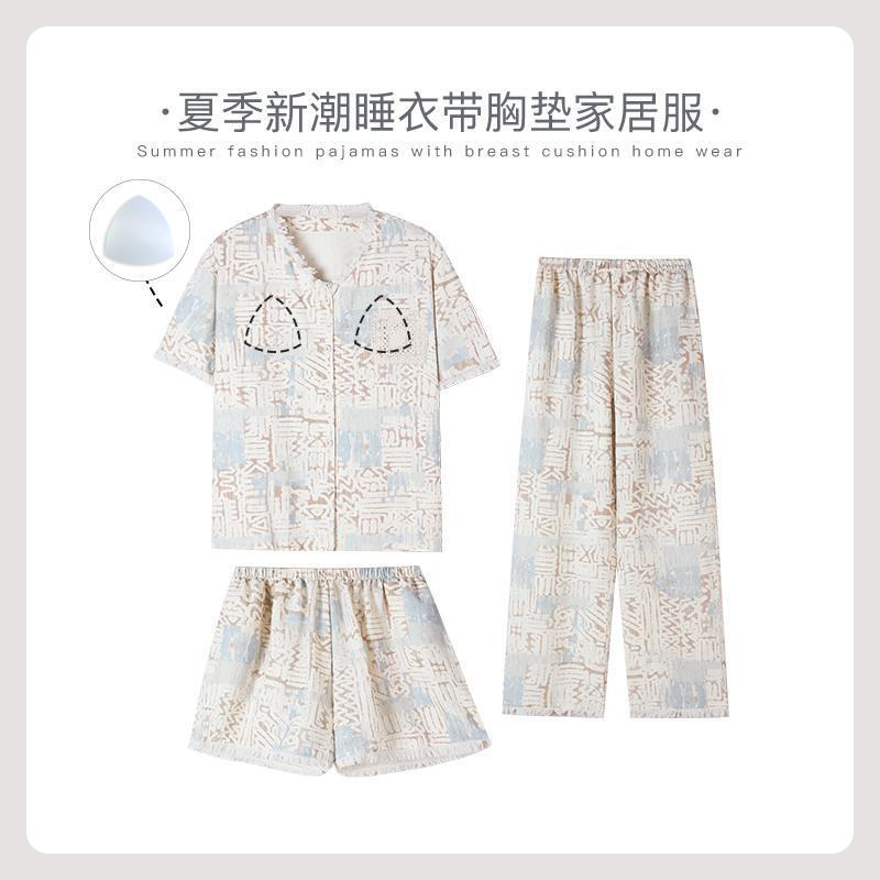 Liyin Xia 버블 폼 여성용 V 넥 태슬 잠옷 여름 반팔 외출용 바지 홈웨어 3 피스 세트스토어 가기