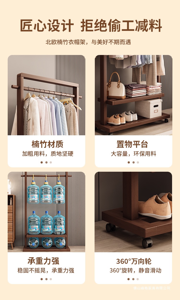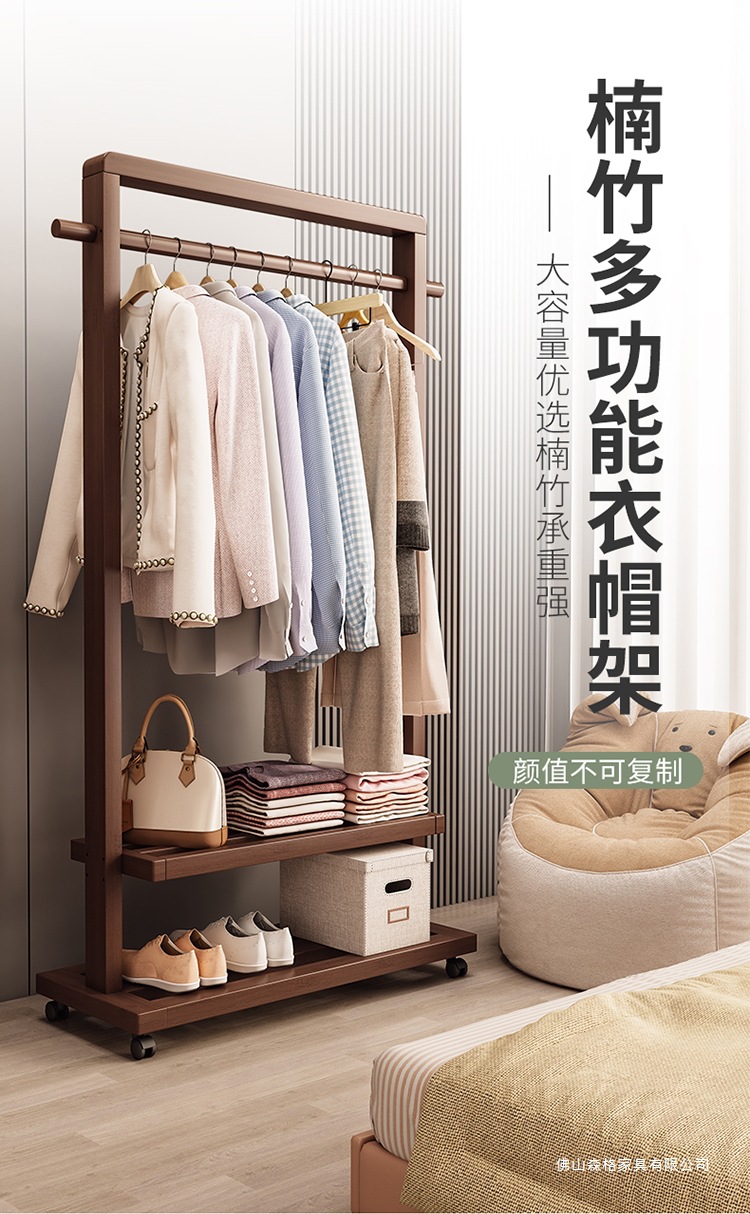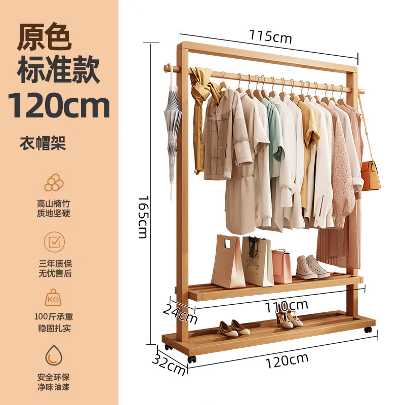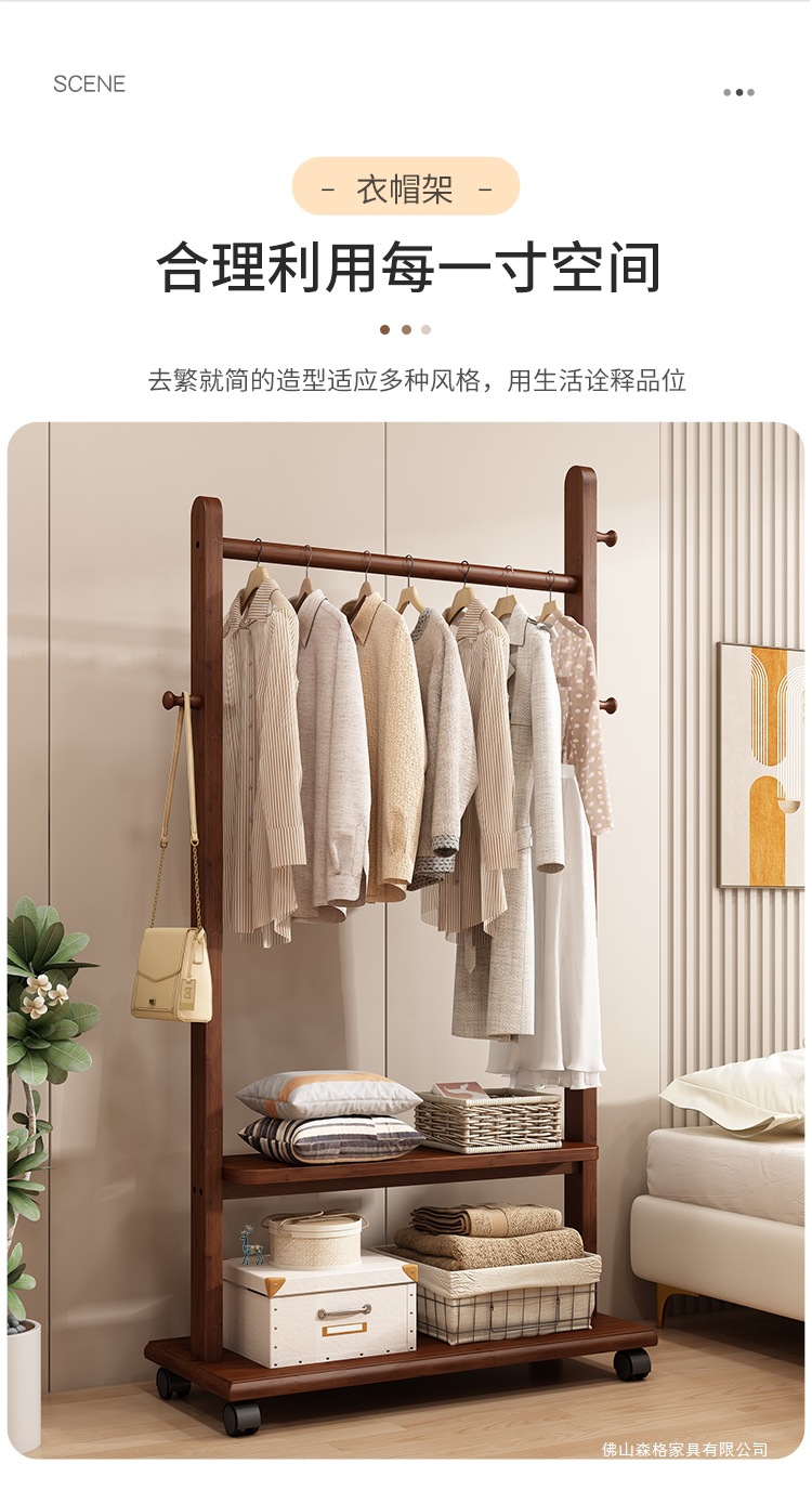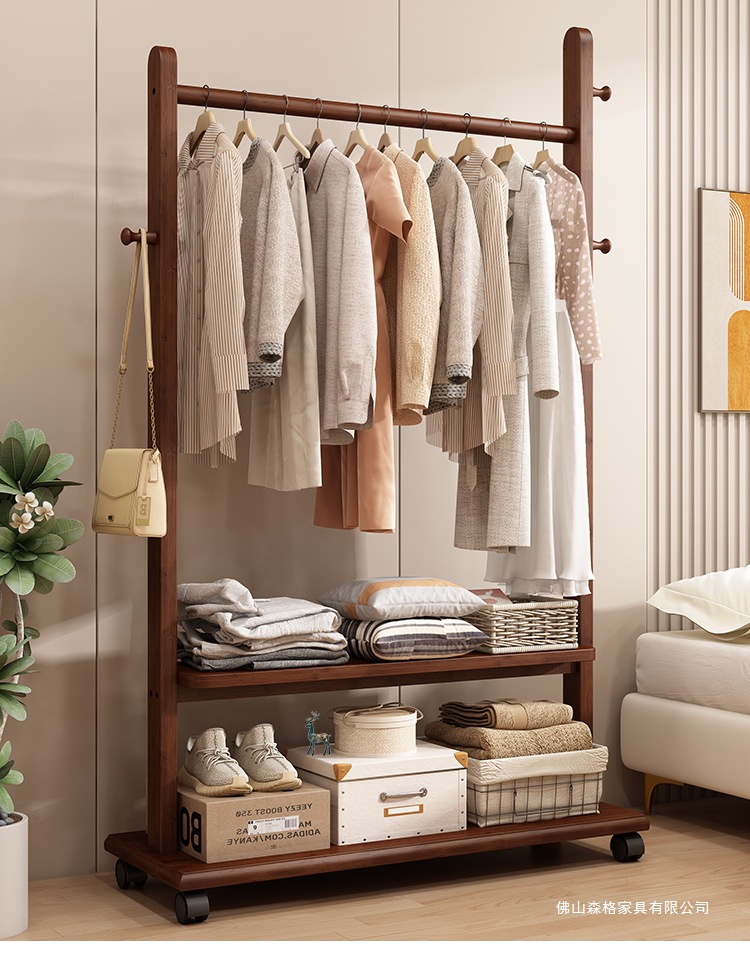 옷걸이 단단한 나무 바닥 침실 코트 랙 거실 간단한 현대 새로운 중국 스타일 B&B 옷걸이 보관 이동식