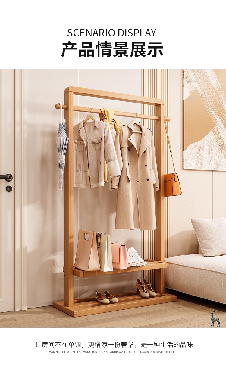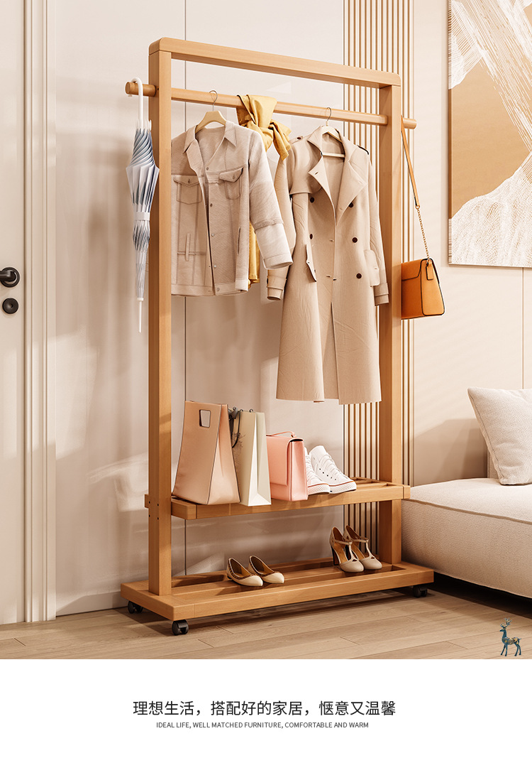 옷걸이 단단한 나무 바닥 침실 코트 랙 거실 간단한 현대 새로운 중국 스타일 B&B 옷걸이 보관 이동식스토어 가기