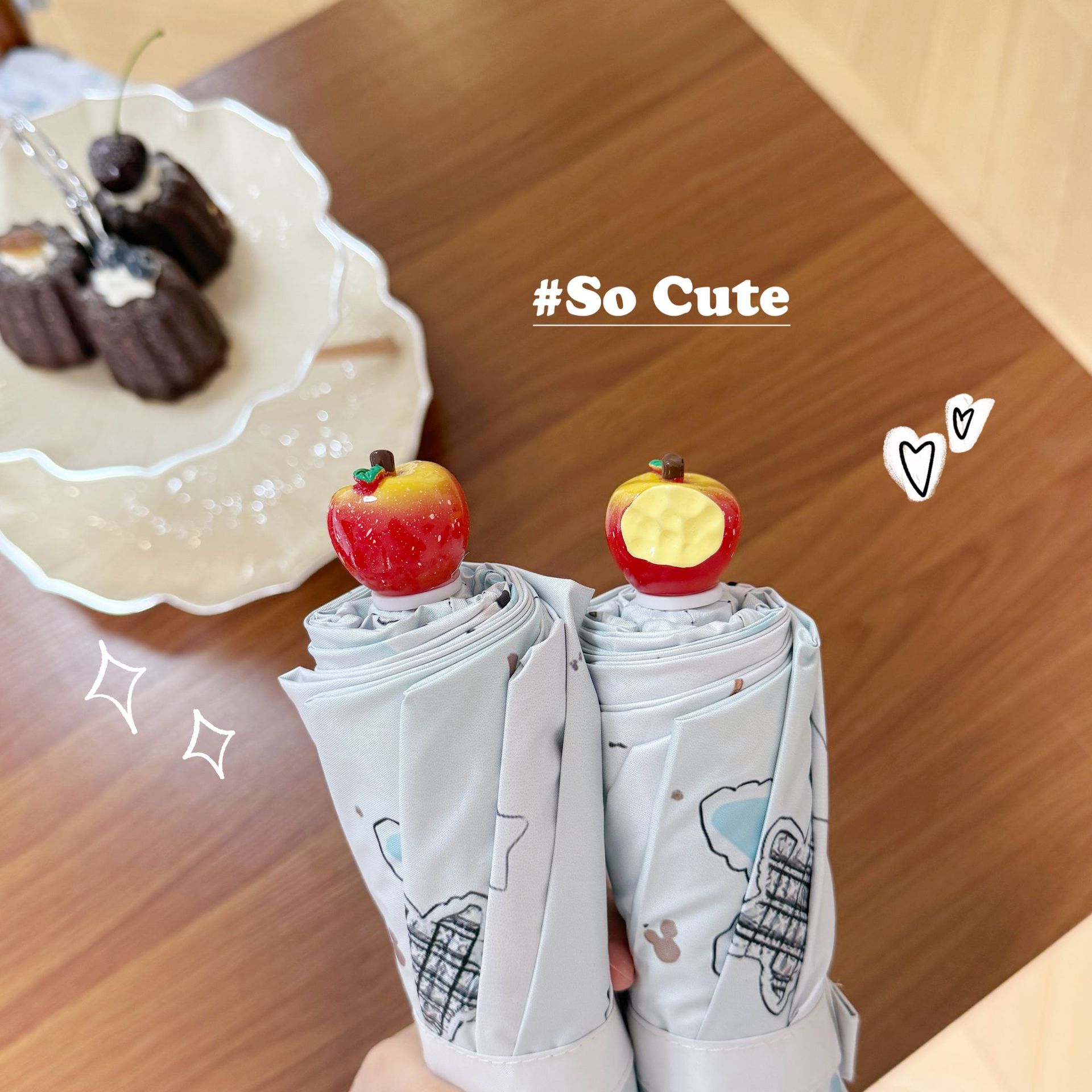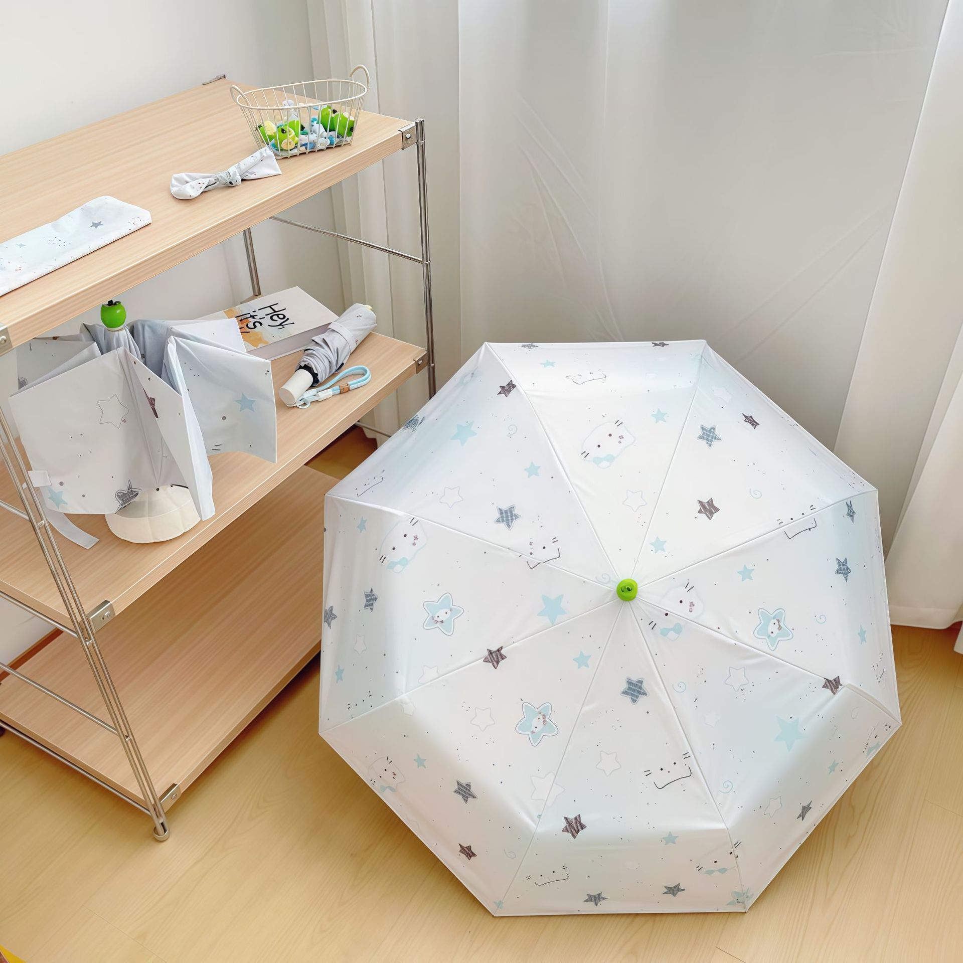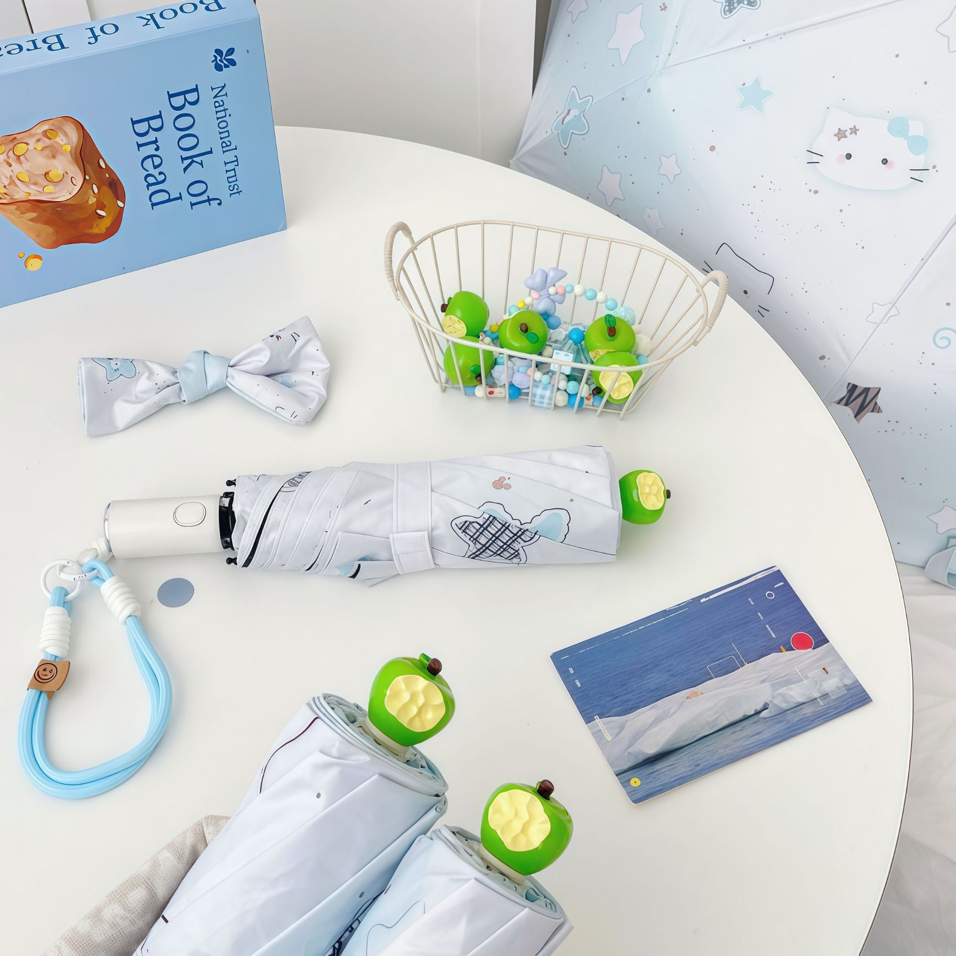• 녹색 사과 + 파란색 끈 바다 소금 별 헬로 키티 자동 파라솔