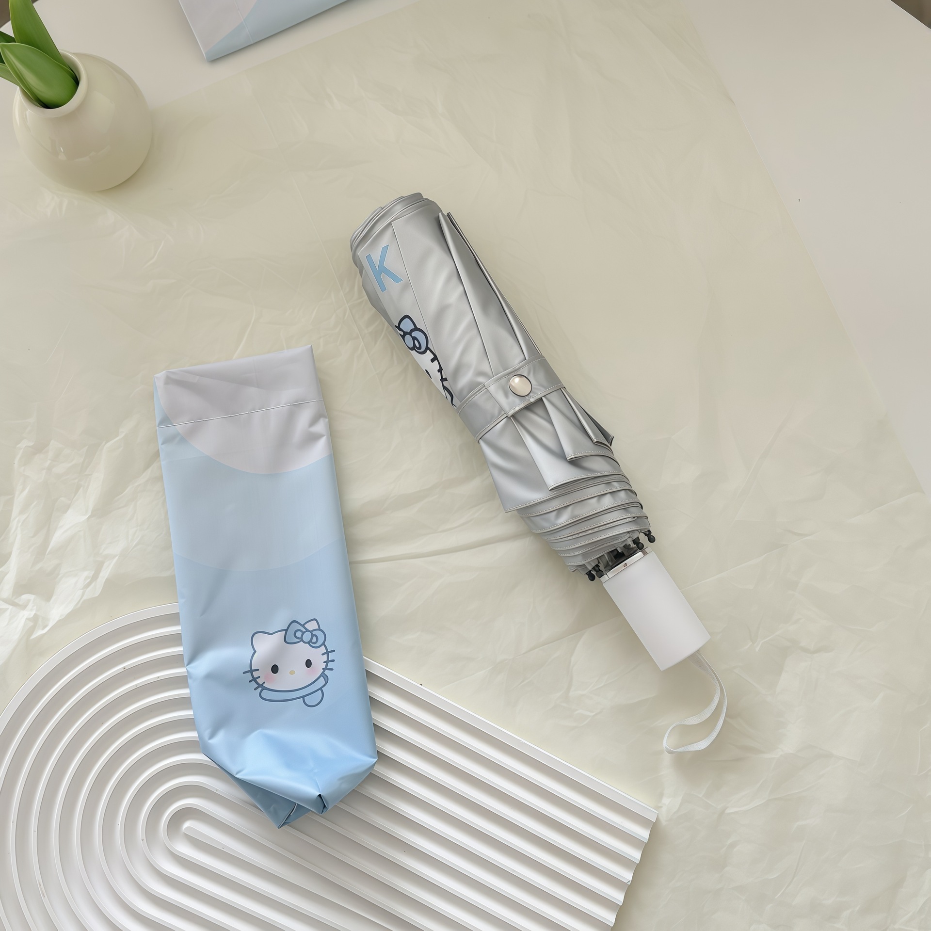 • 블루 KT 로프 + 티타늄 실버 블루 그라데이션 헬로 키티 수동 파라솔