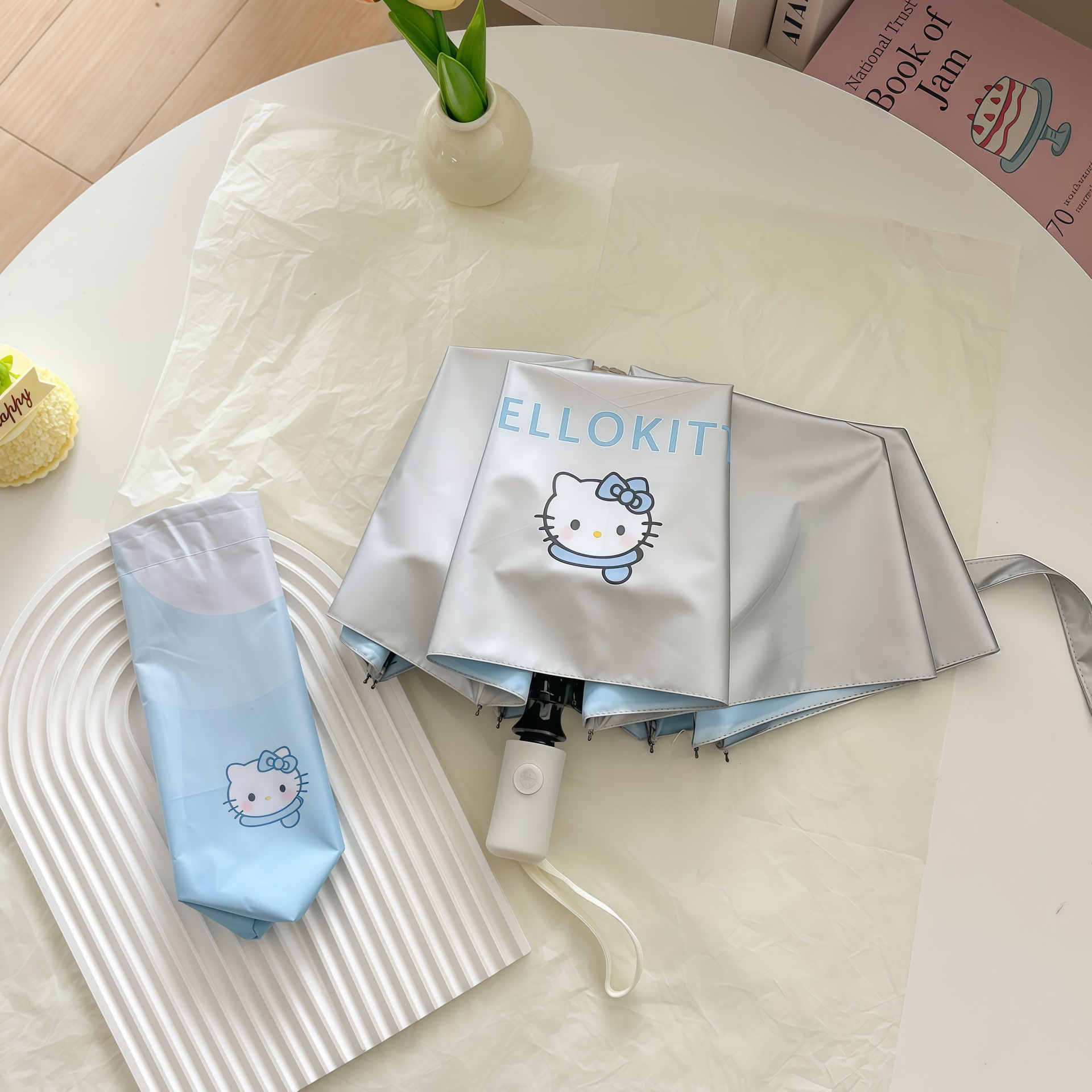 • 티타늄 실버 블루 그라데이션 헬로키티 자동 파라솔