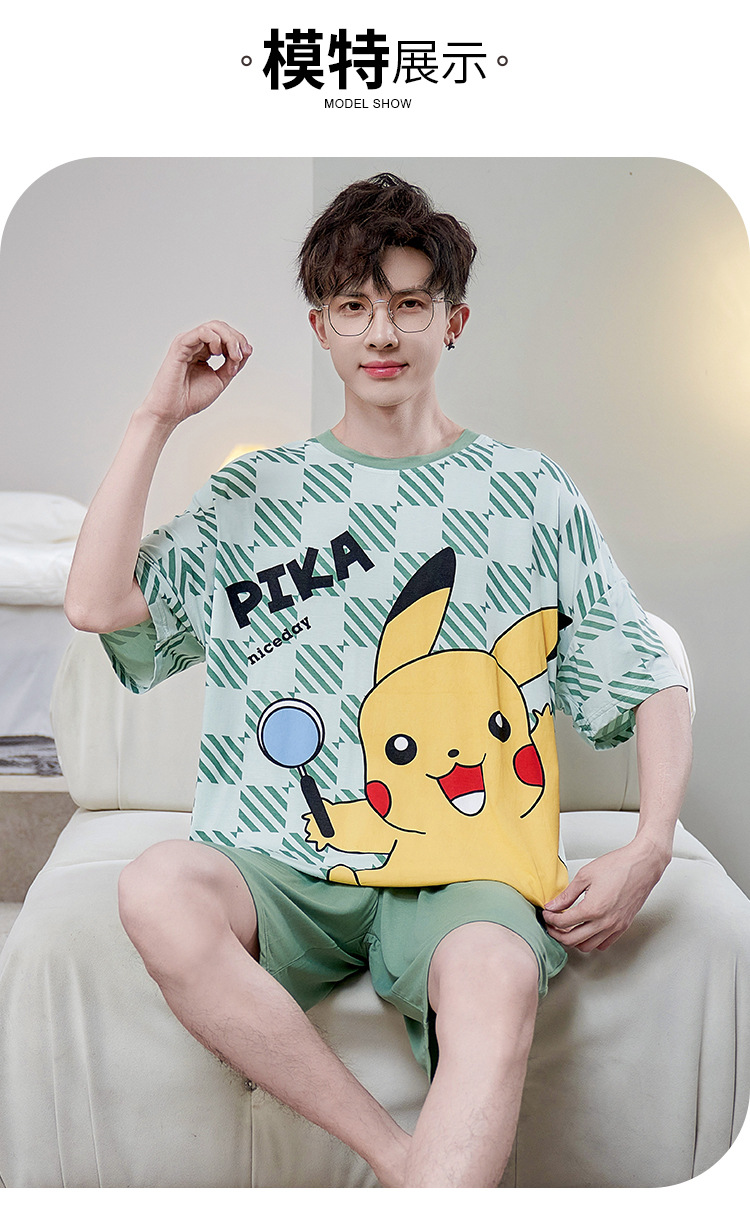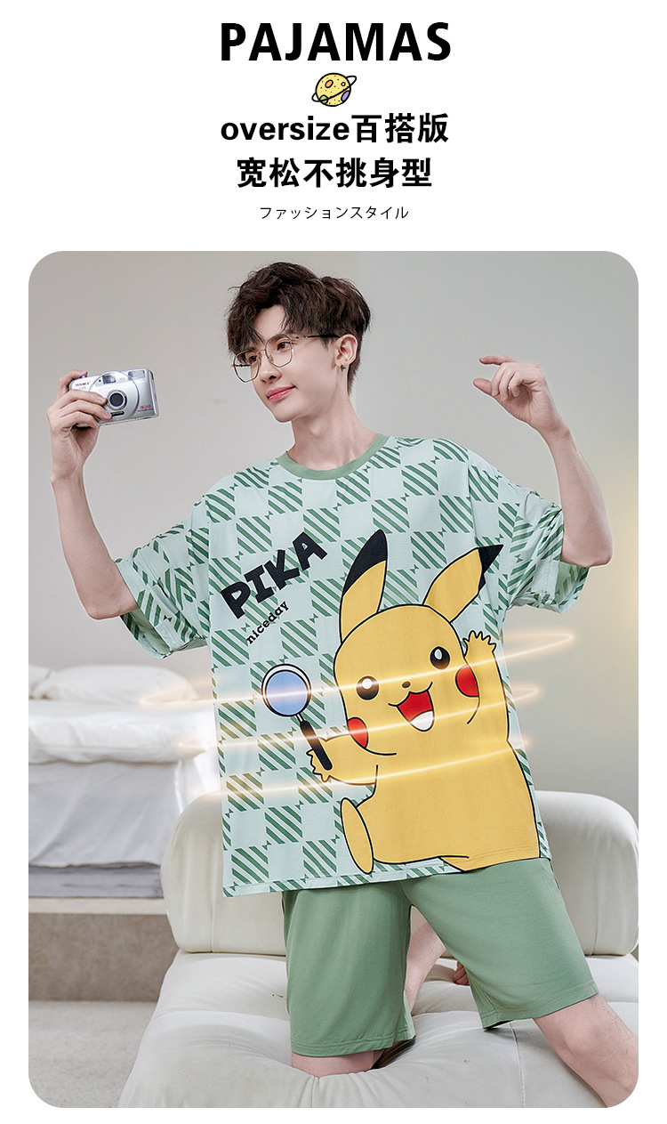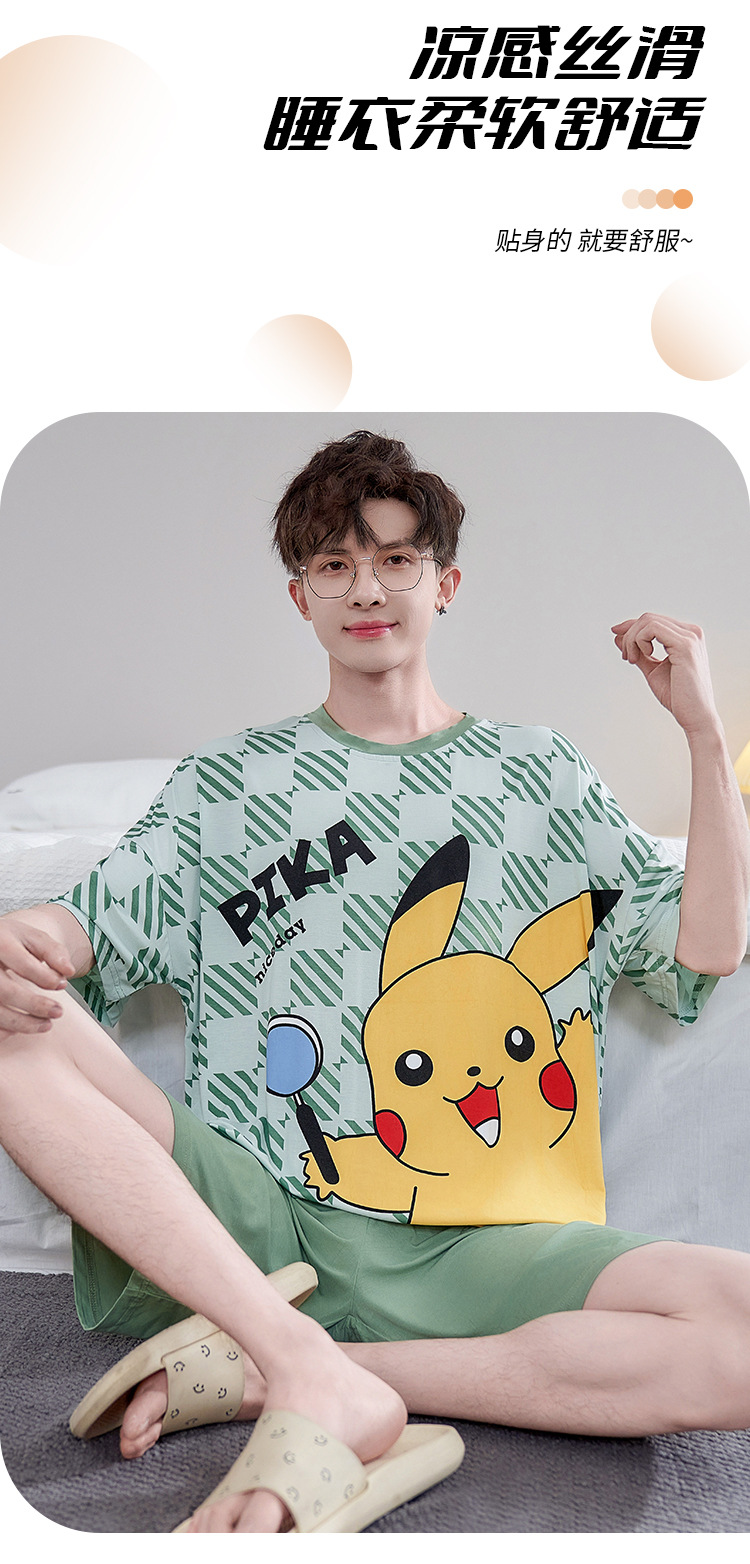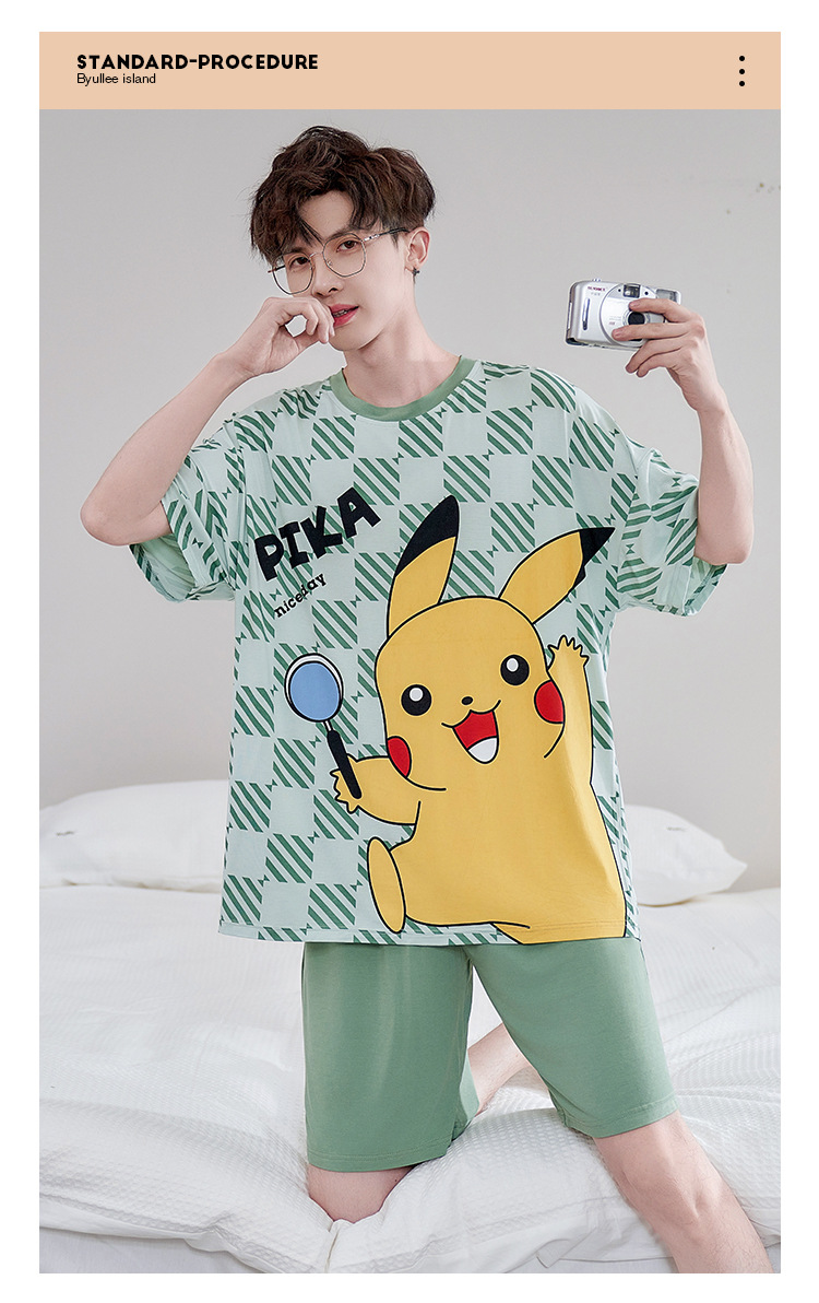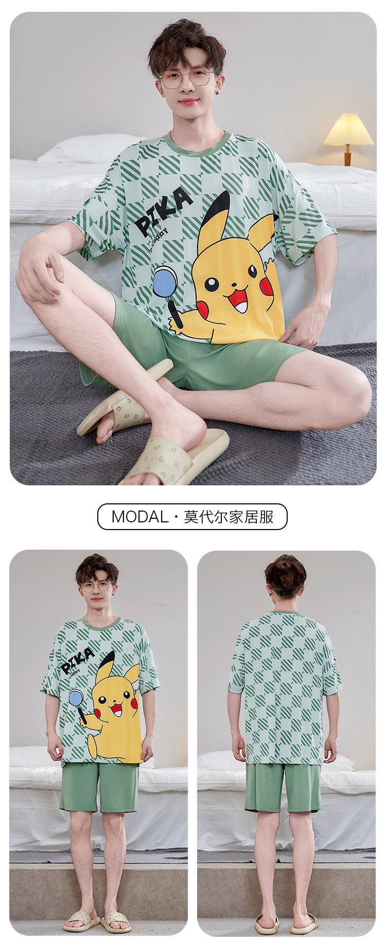 여름 모달 시원한 남성용 반팔 반바지 잠옷, 루즈하고 큰 청소년 만화, 집 밖에서 입을 수 있는 옷스토어 가기