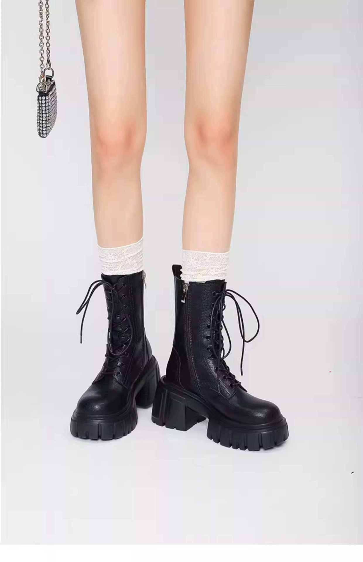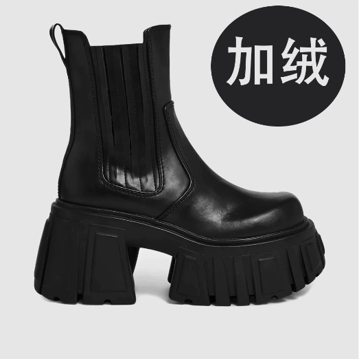 여성용 로우레더 플러스 벨벳 마틴 부츠 2025 여름 두꺼운 밑창 미드 부츠 작은 사람들을 위한 두꺼운 굽 짧은 부츠스토어 가기