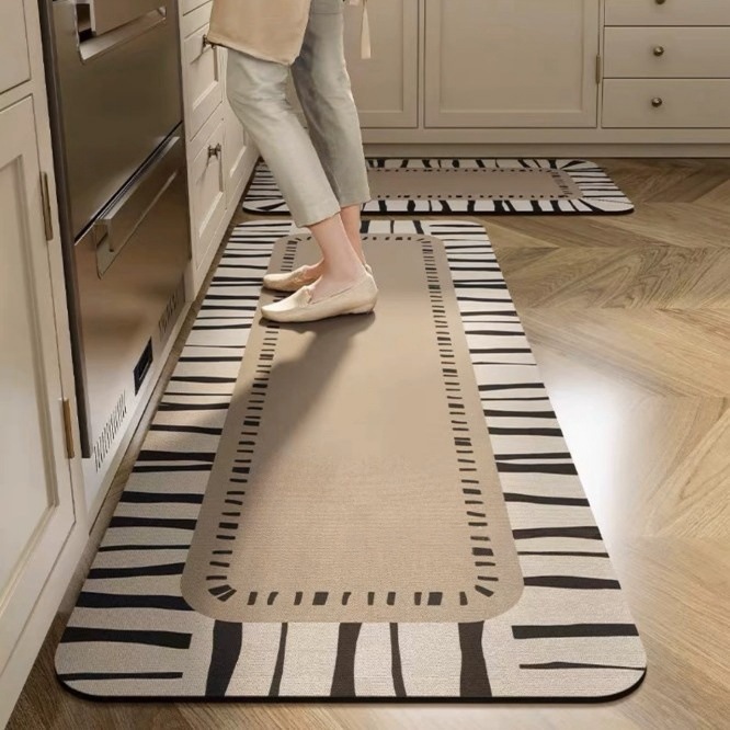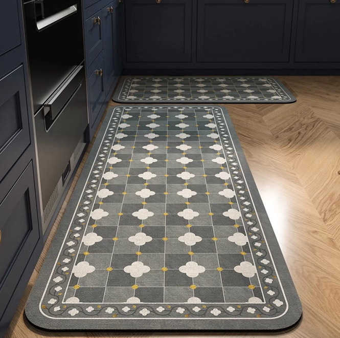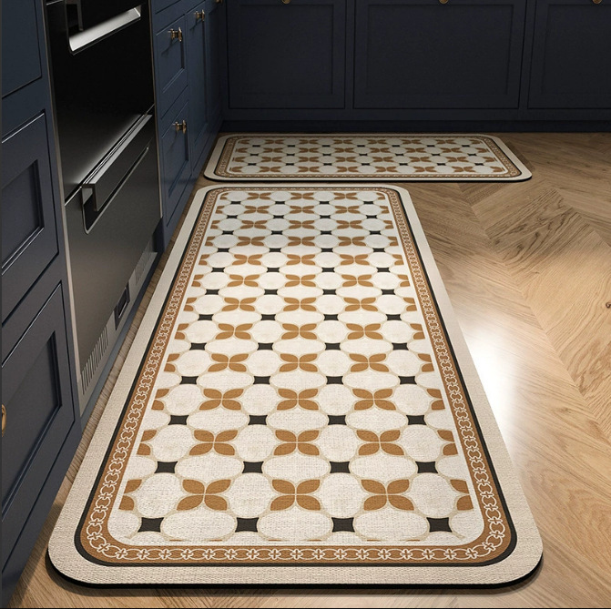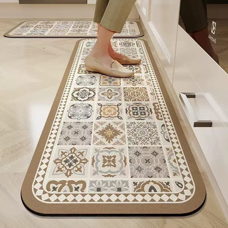 국경 간 유럽 스타일 보헤미안 규조토 진흙 바닥 매트, 흡수성 및 기름 흡수성 주방 매트, 가정용 미끄럼 방지 바닥 매트, 도매 재고 있음스토어 가기
