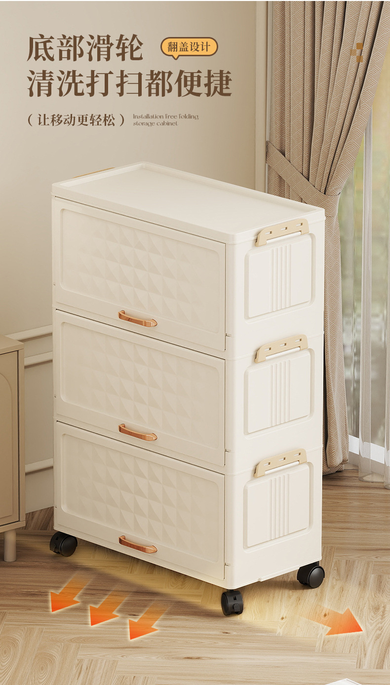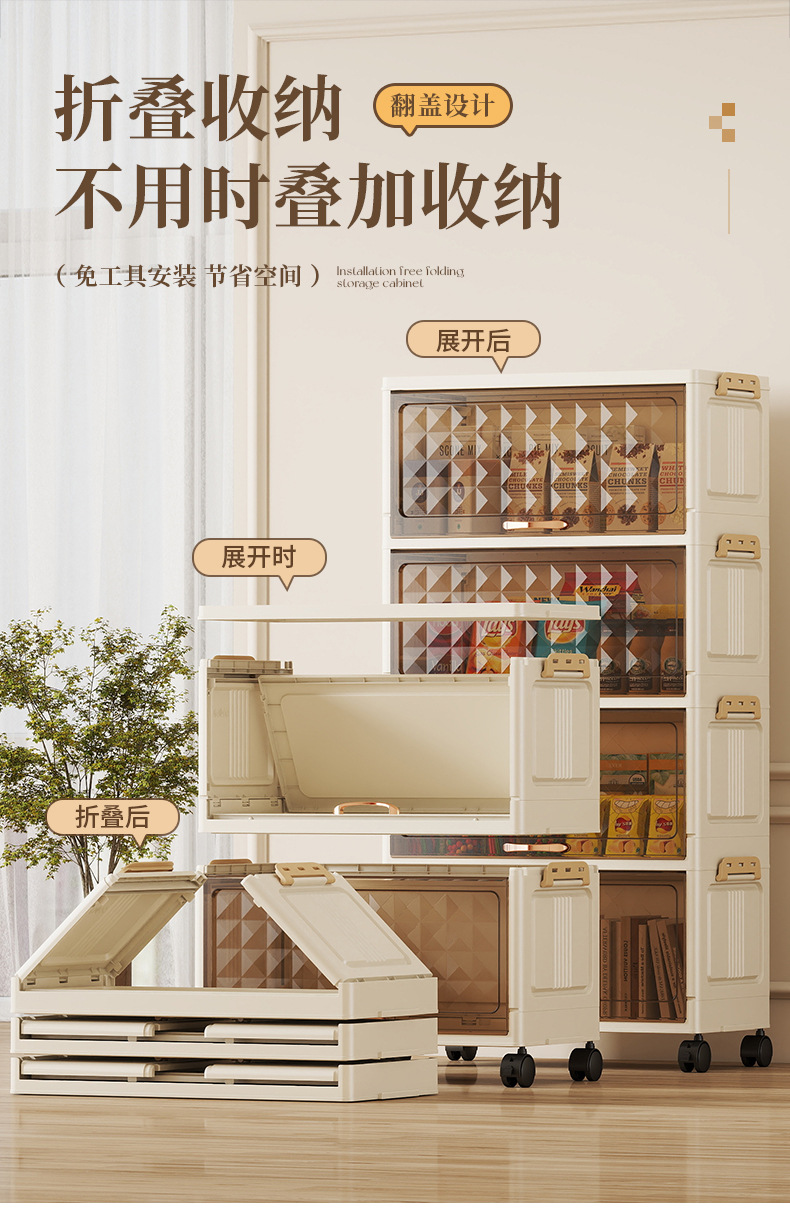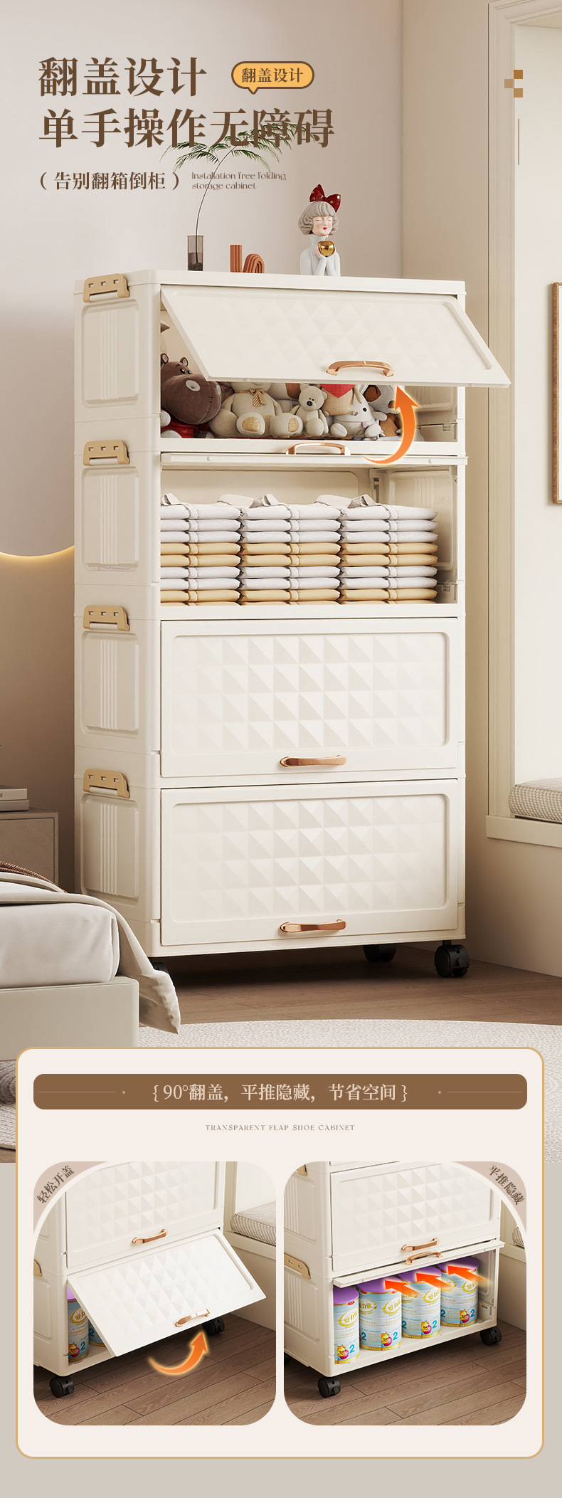 설치가 필요없는 주방 다층 플립 탑 수납 선반 가정용 아동복 및 장난감 보관 상자 간단한 수납 캐비닛