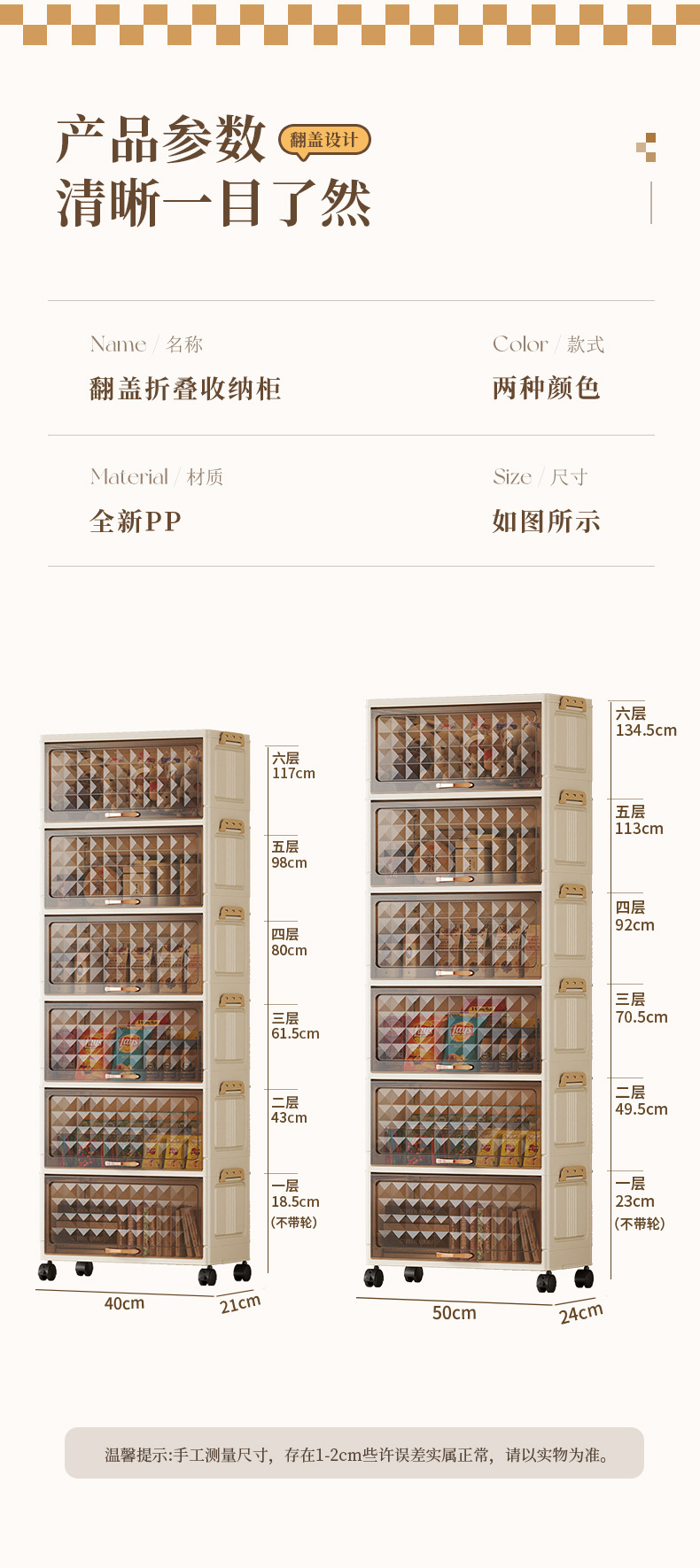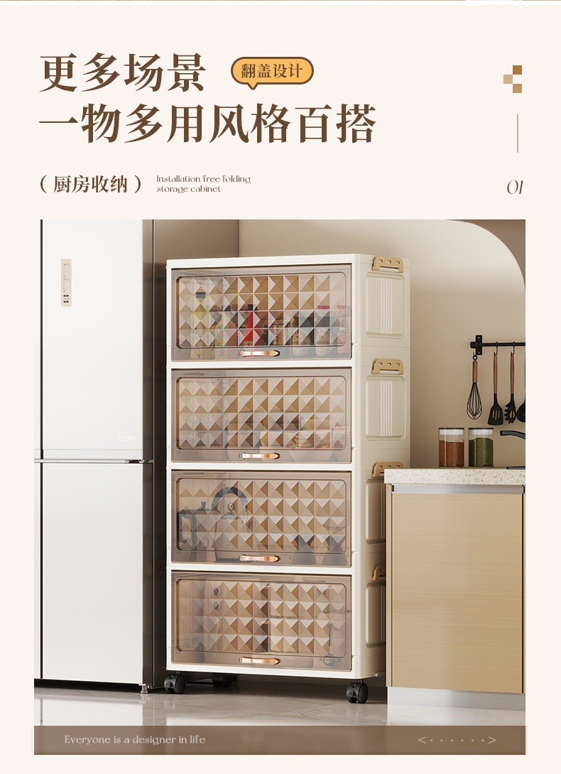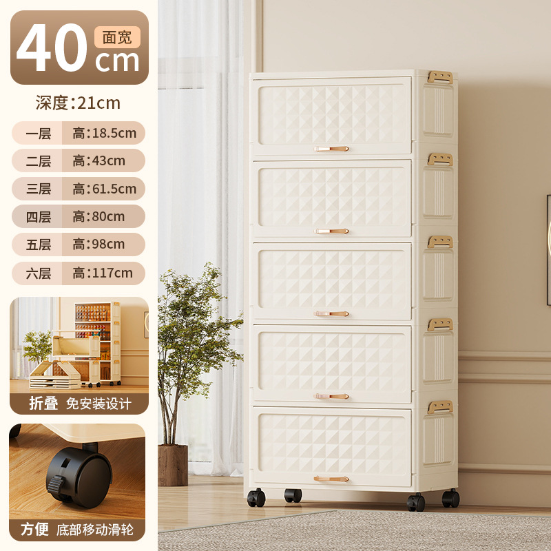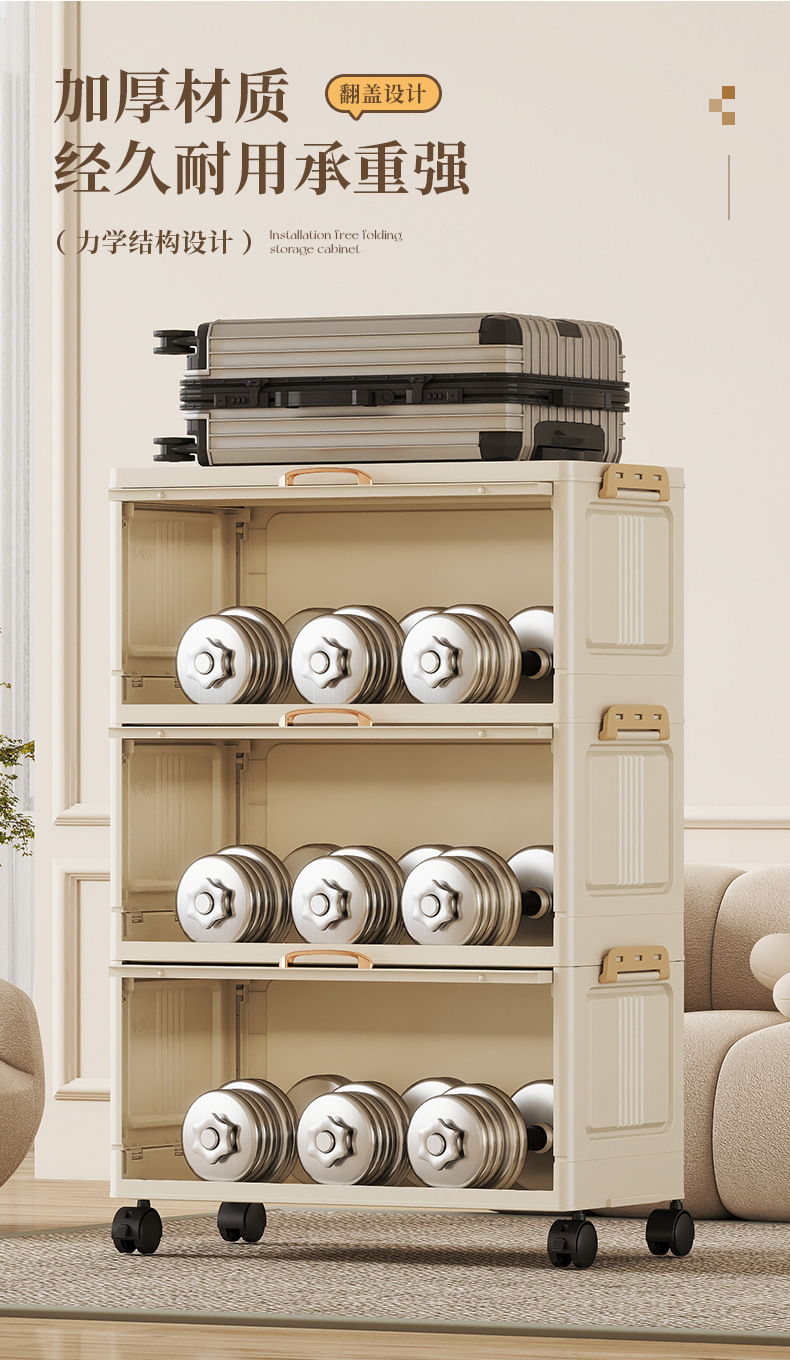설치가 필요없는 주방 다층 플립 탑 수납 선반 가정용 아동복 및 장난감 보관 상자 간단한 수납 캐비닛