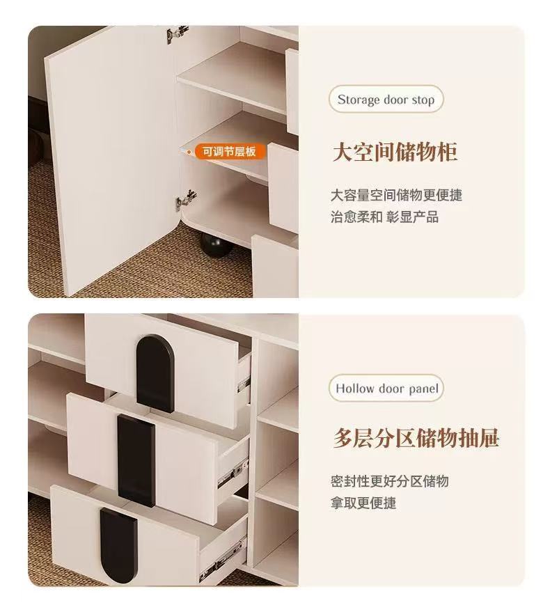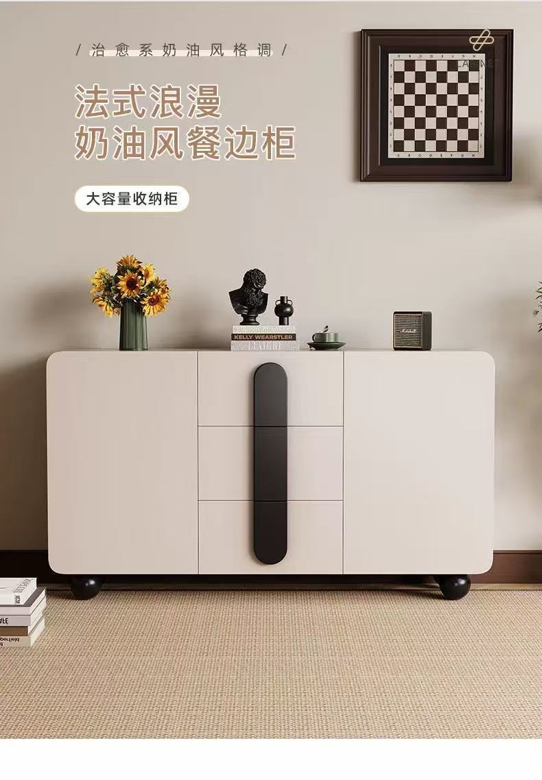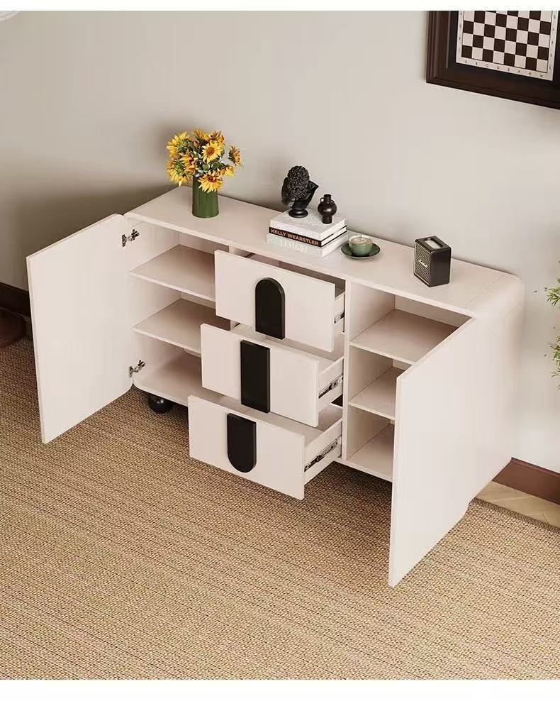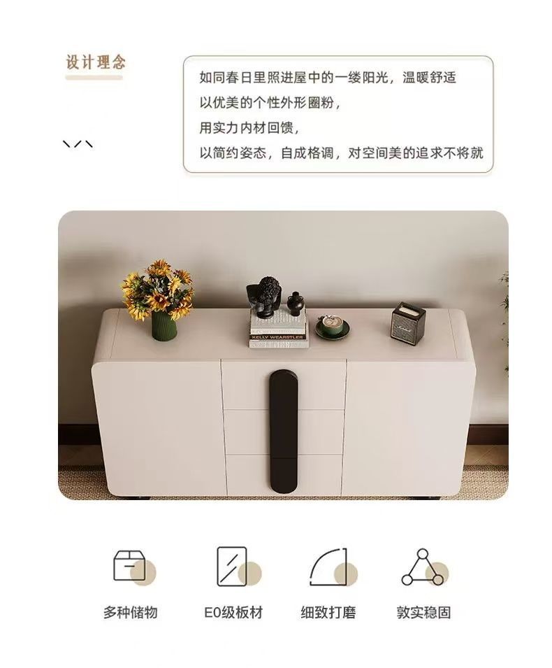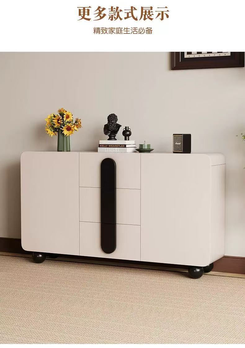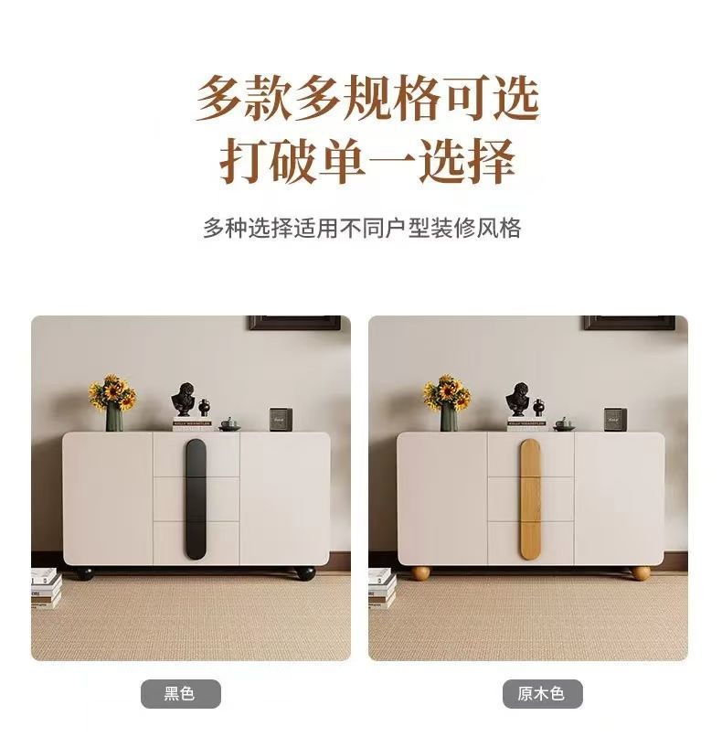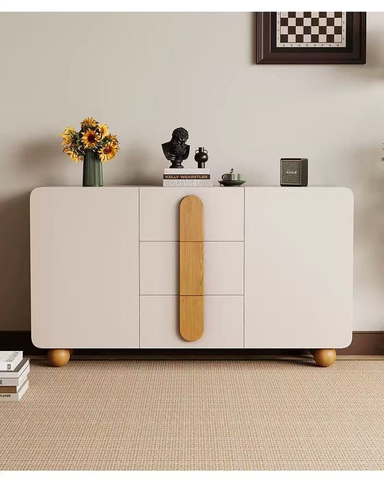 단단한 나무 찬장 벽 일체형 거실 찬장 현대적인 미니멀리스트 주방 수납 캐비닛 크림 스타일 차 수납 캐비닛