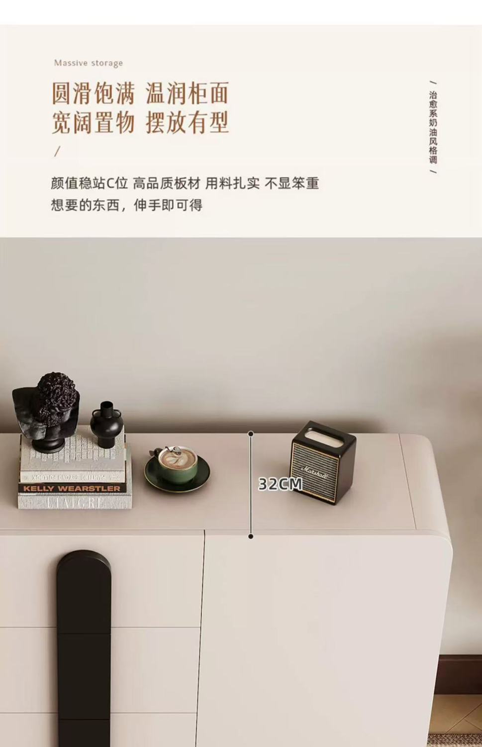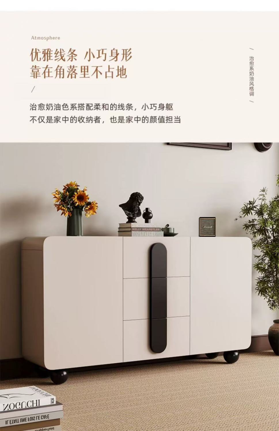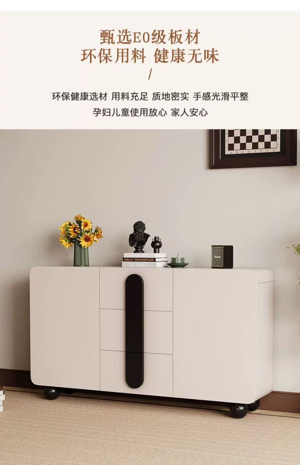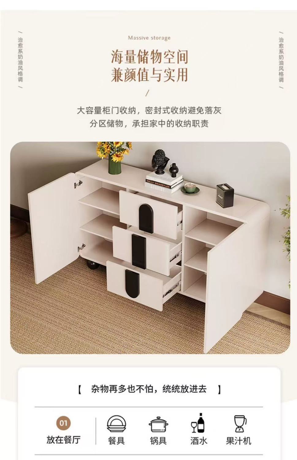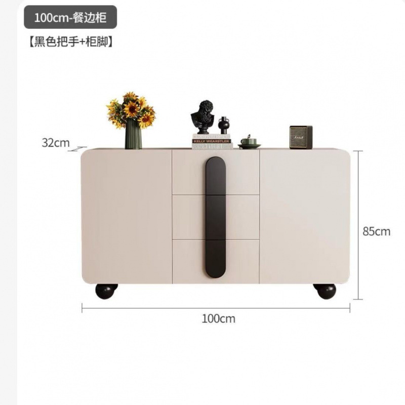 단단한 나무 찬장 벽 일체형 거실 찬장 현대적인 미니멀리스트 주방 수납 캐비닛 크림 스타일 차 수납 캐비닛