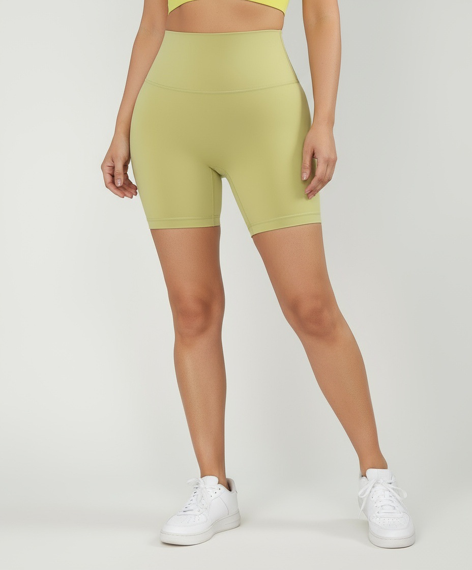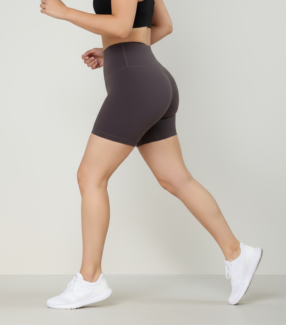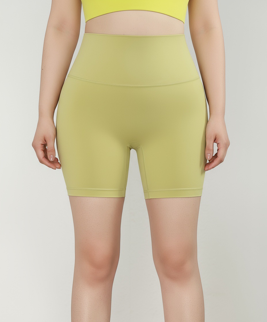 부드럽고 왁시한 누드 여름 여성용 T요가팬츠, 하이웨이스트 복부조절 피트니스반바지, 복숭아힙 타이트 스포츠 3점팬츠