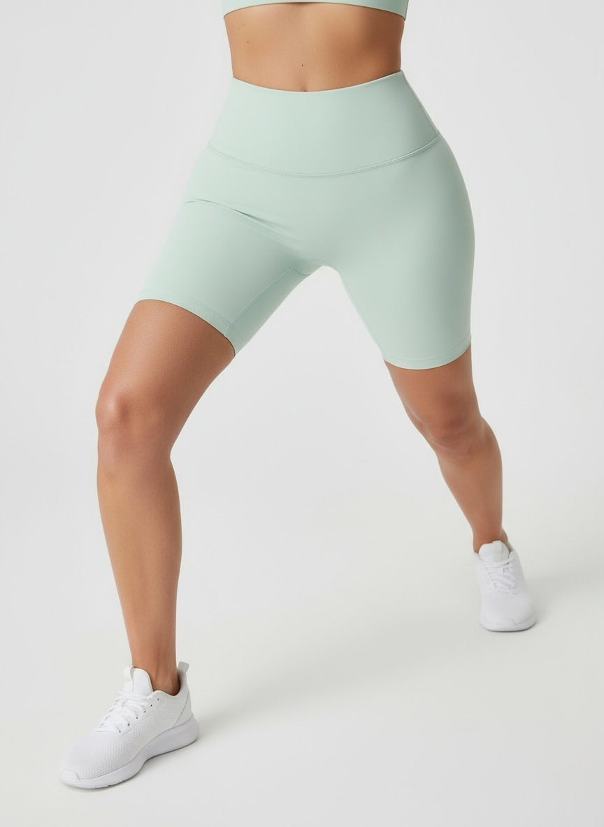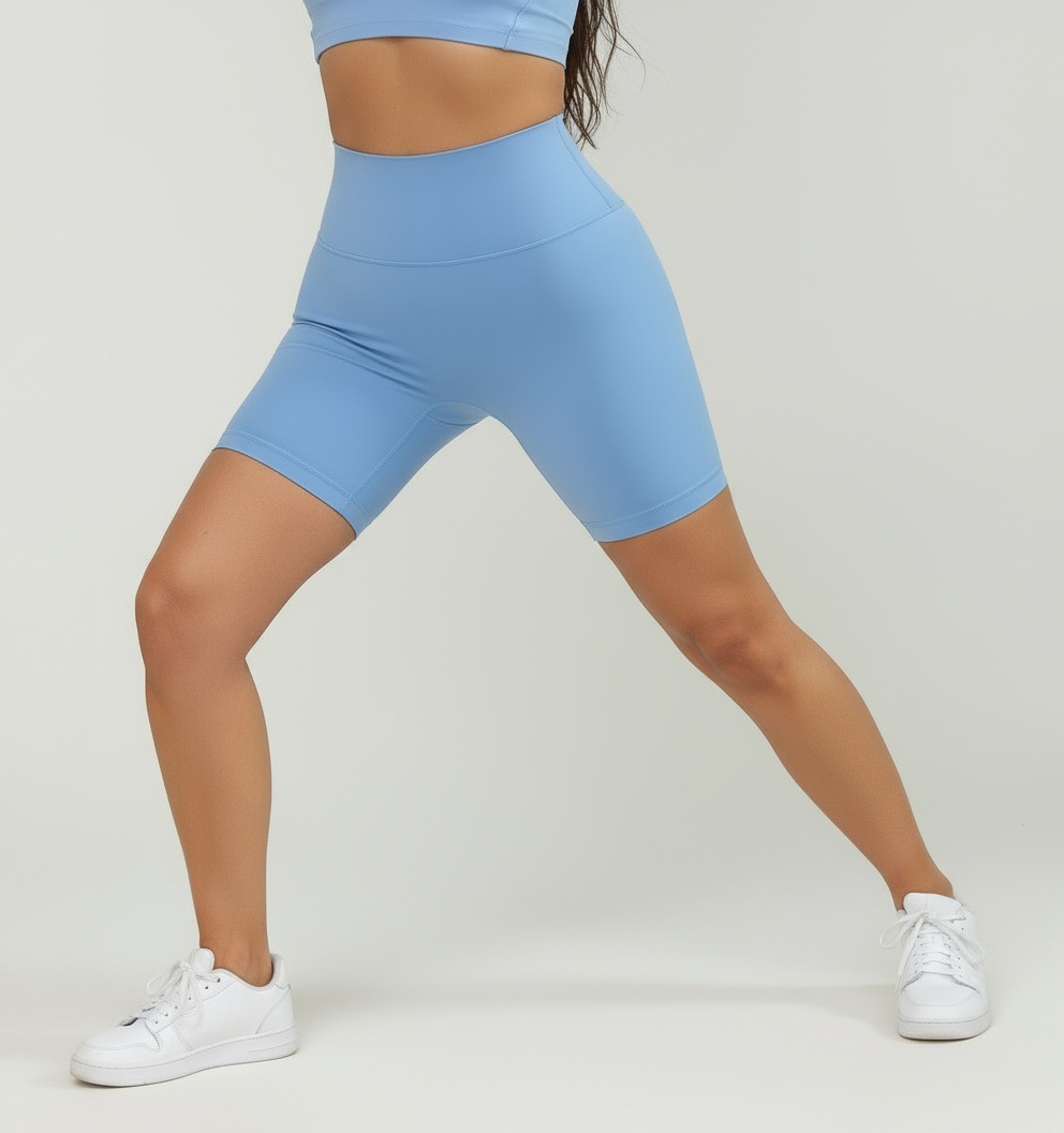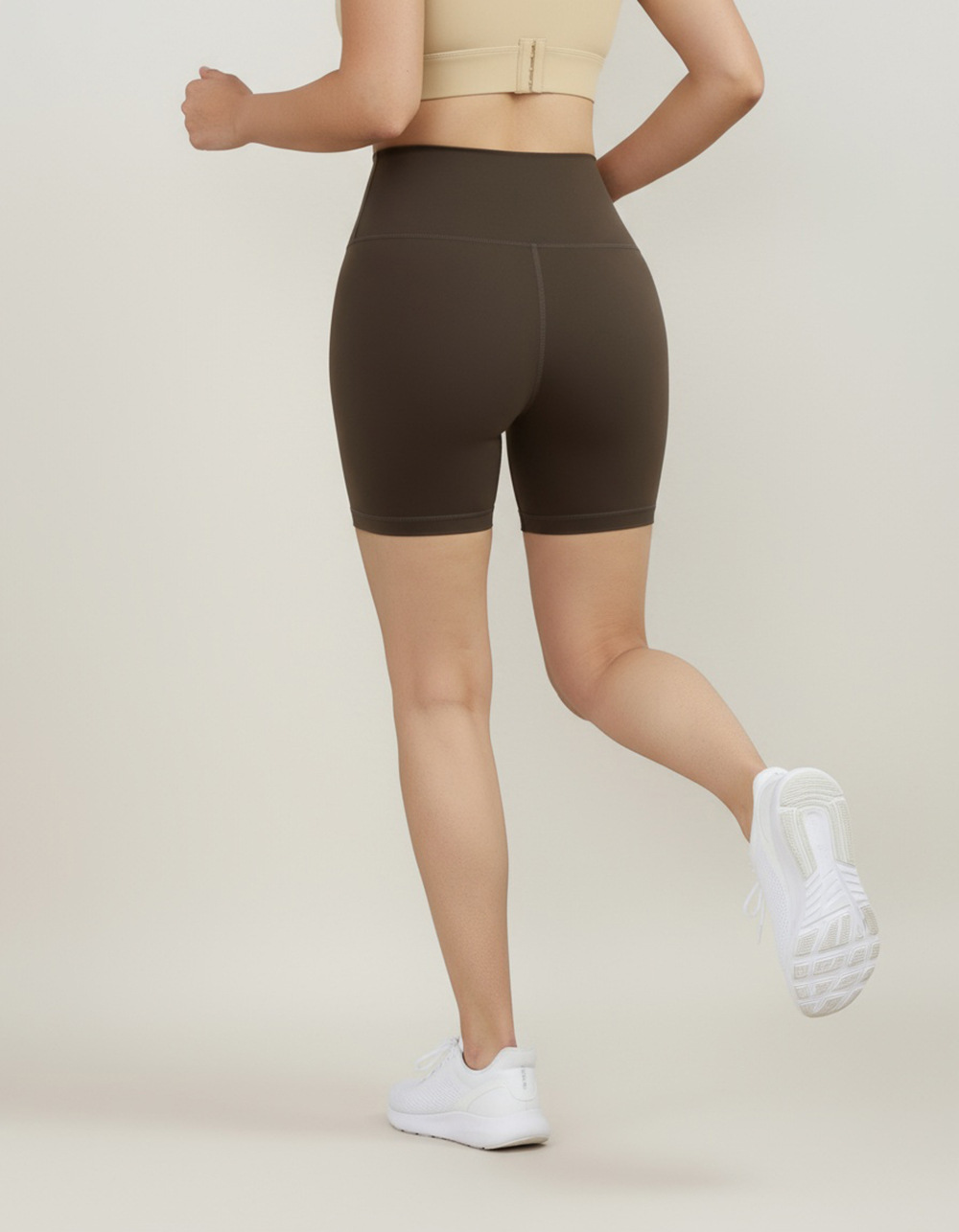 부드럽고 왁시한 누드 여름 여성용 T요가팬츠, 하이웨이스트 복부조절 피트니스반바지, 복숭아힙 타이트 스포츠 3점팬츠