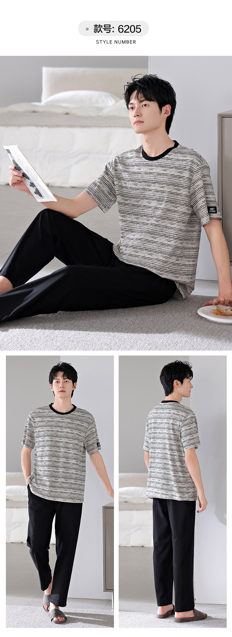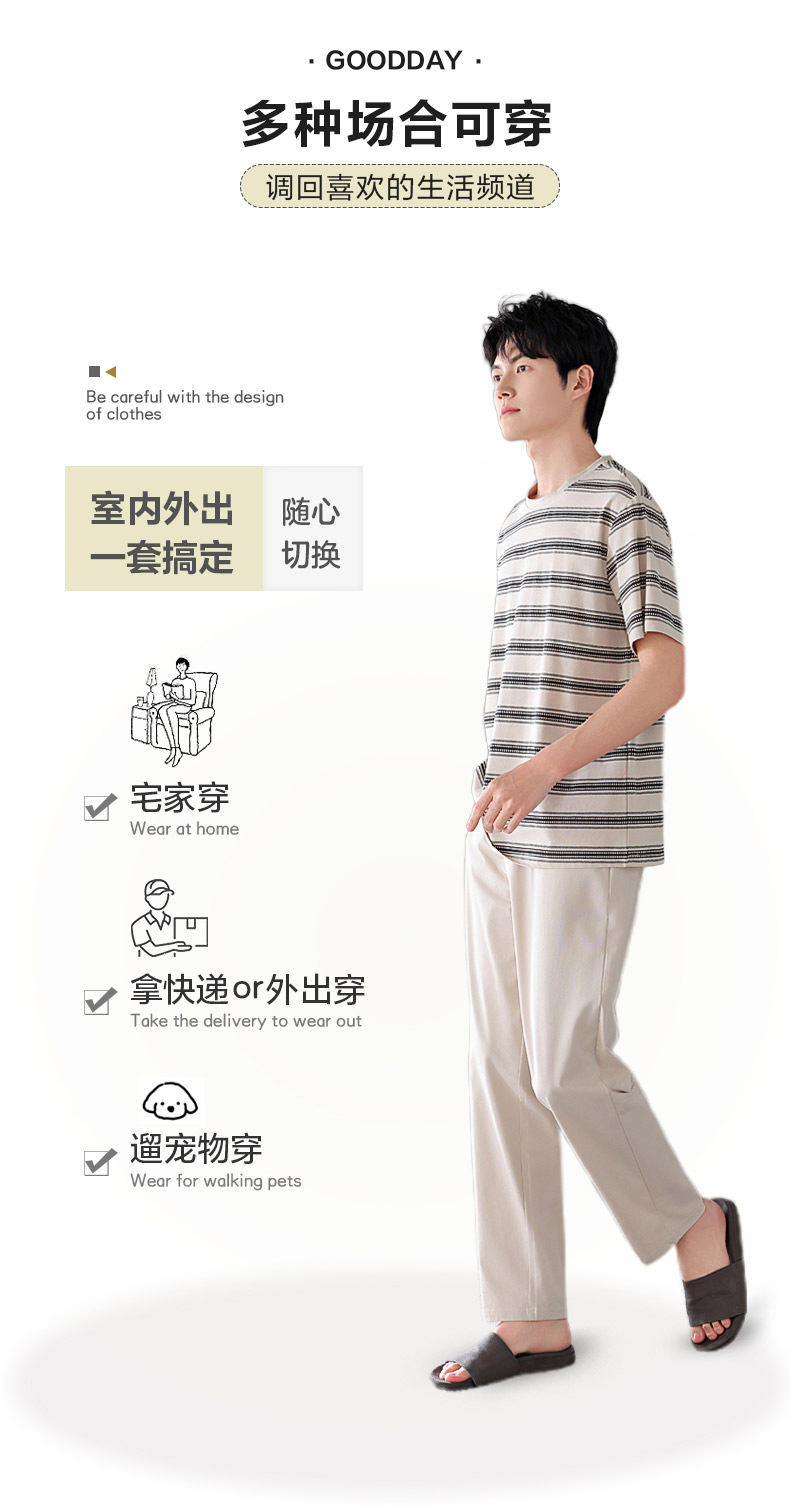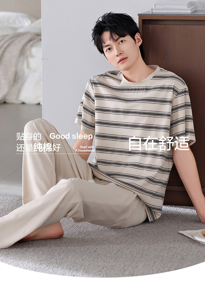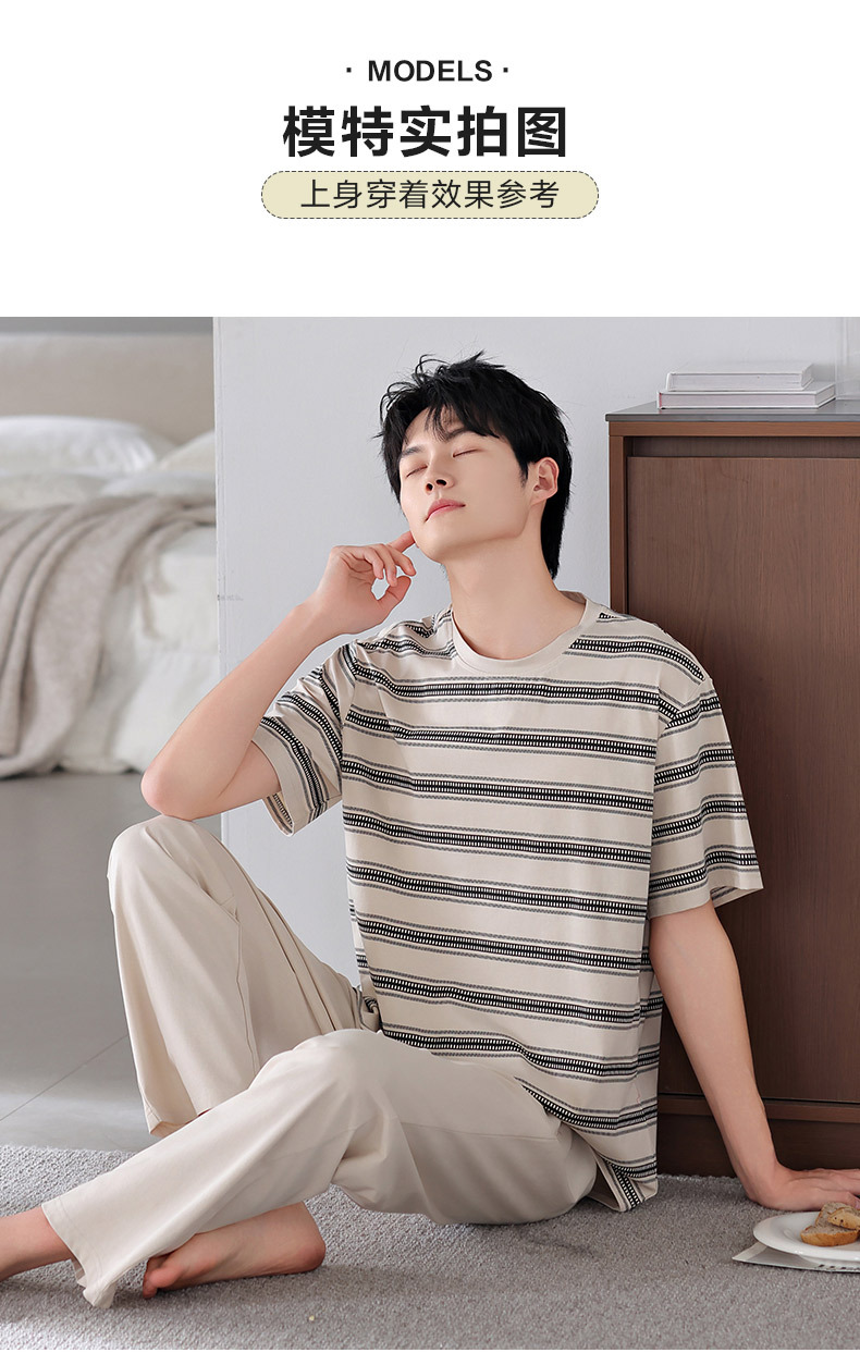 남성 잠옷 여름 얇은 풀업 순면 반팔 2025 새로운 여름 캐주얼 웨어러블 홈웨어 세트스토어 가기