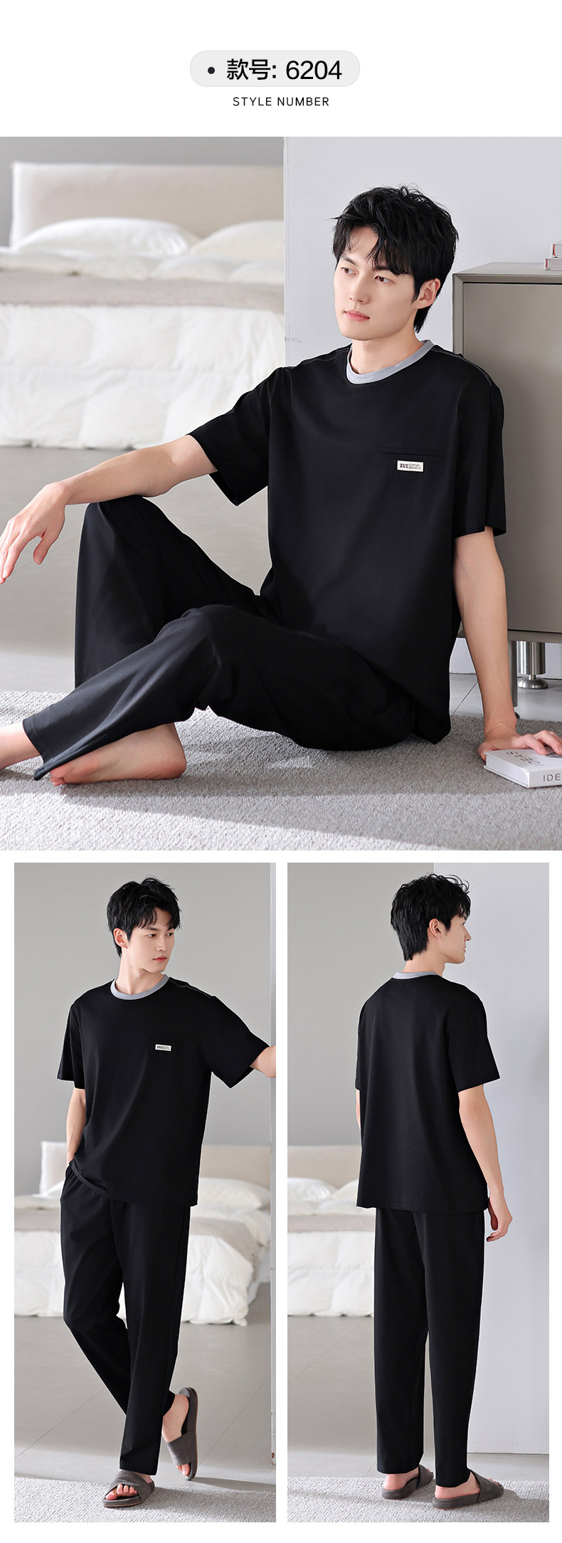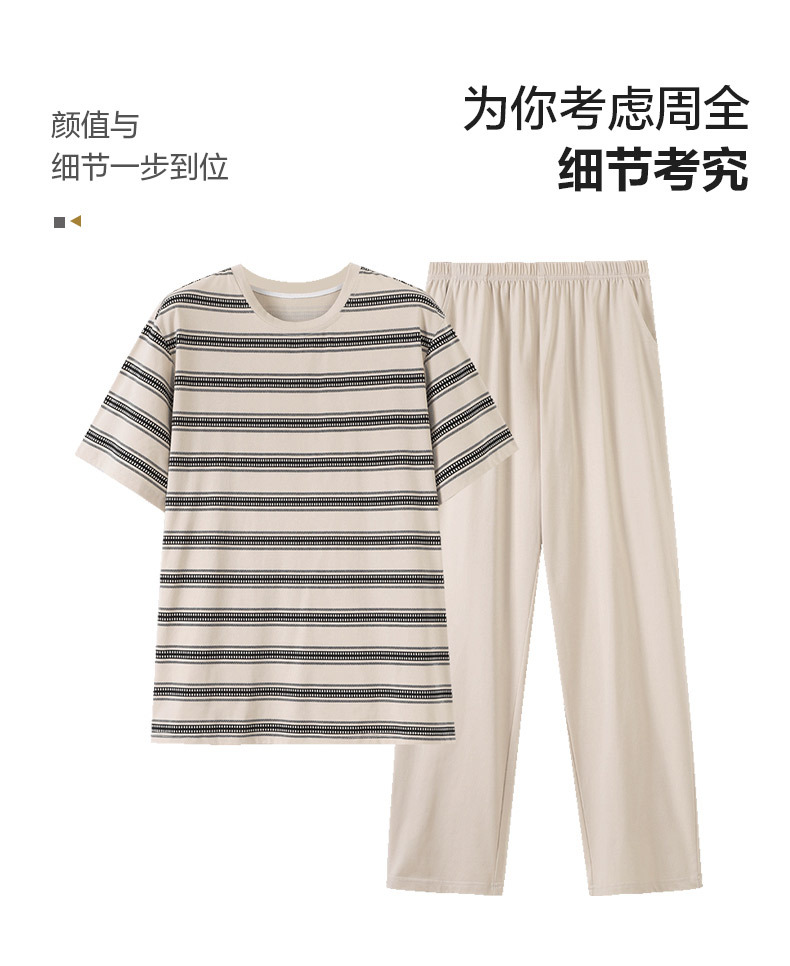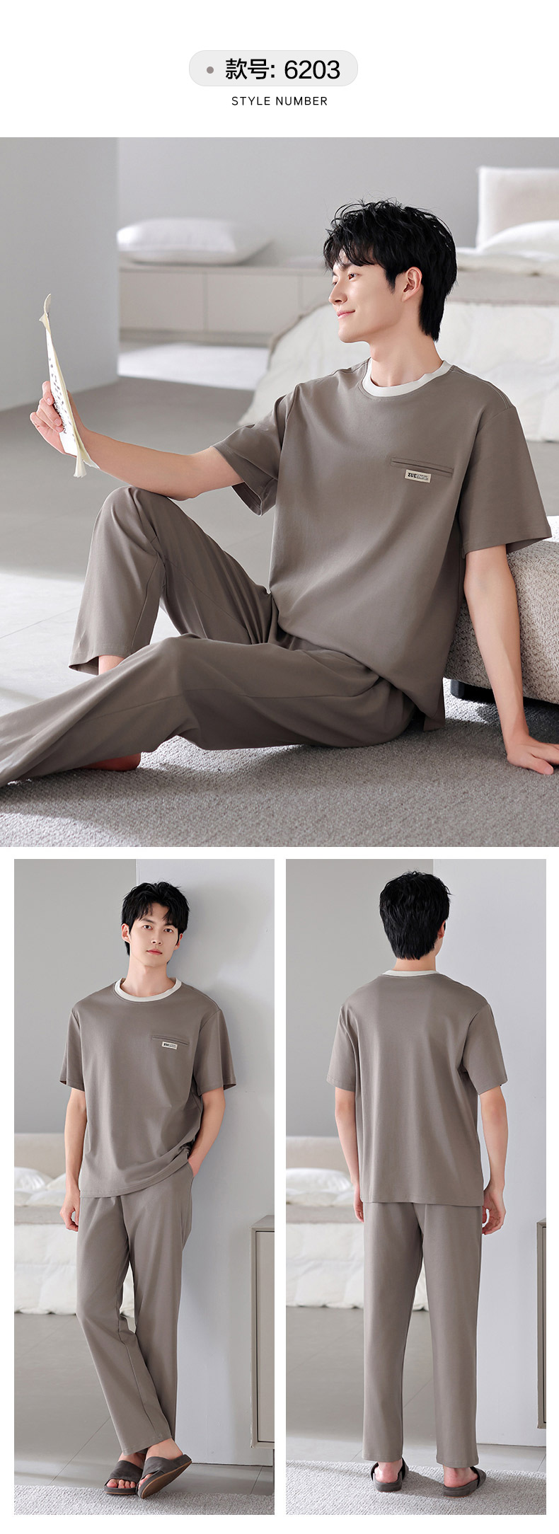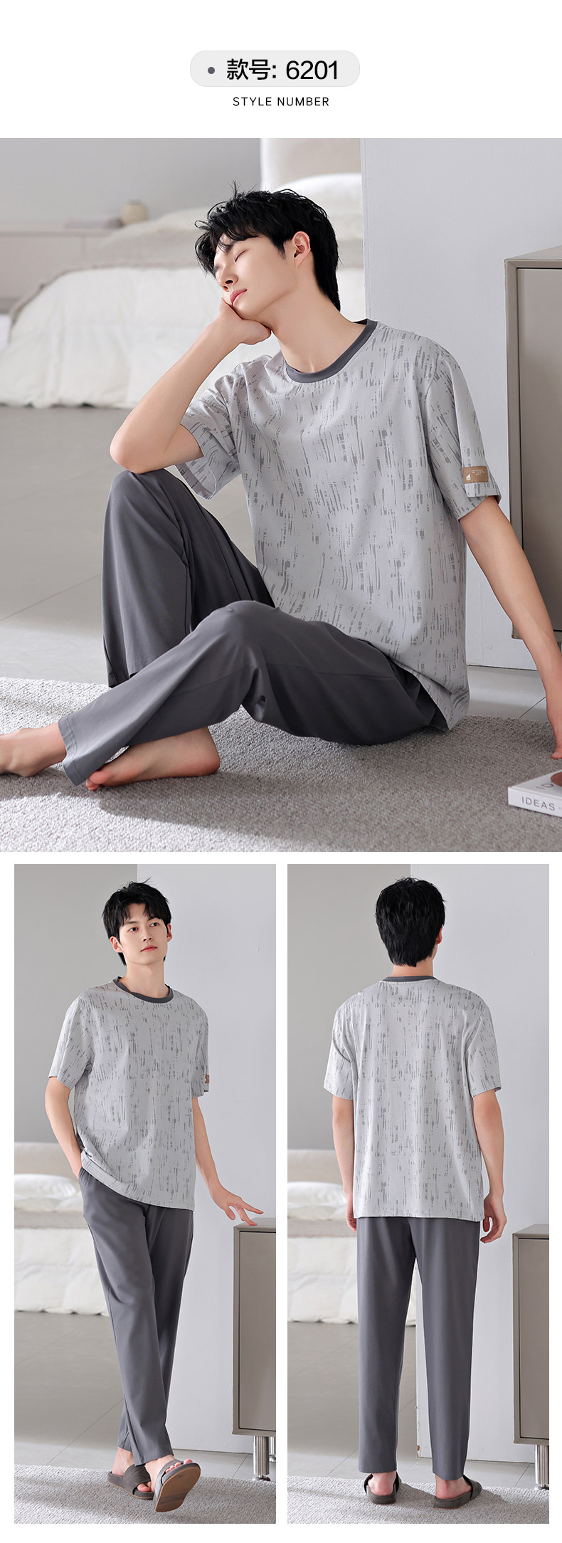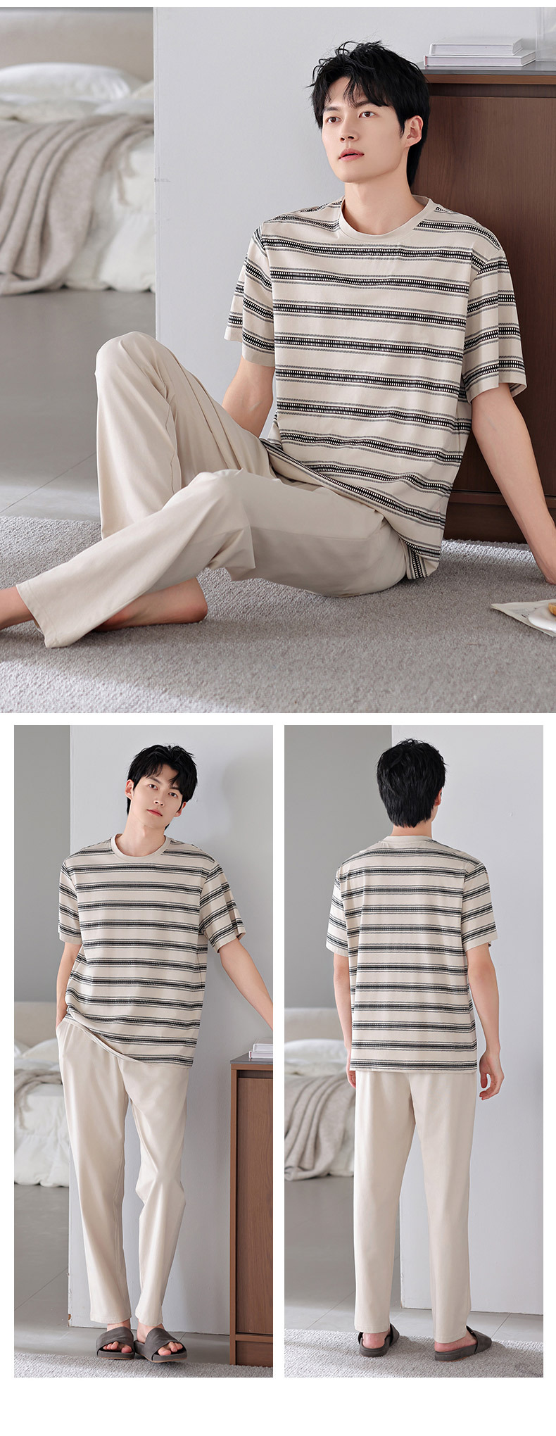 남성 잠옷 여름 얇은 풀업 순면 반팔 2025 새로운 여름 캐주얼 웨어러블 홈웨어 세트스토어 가기