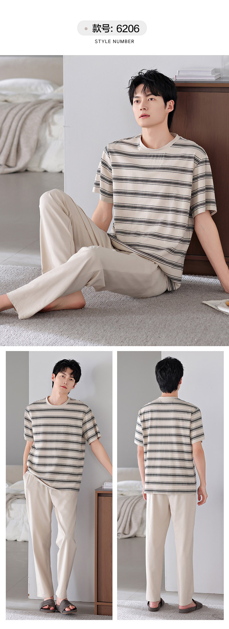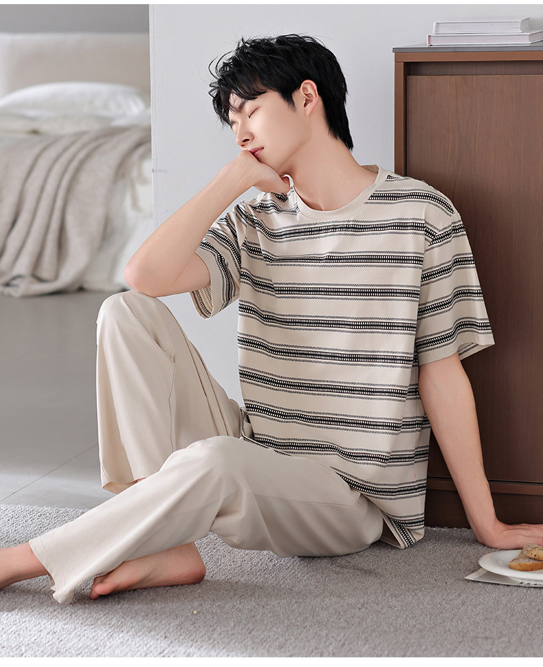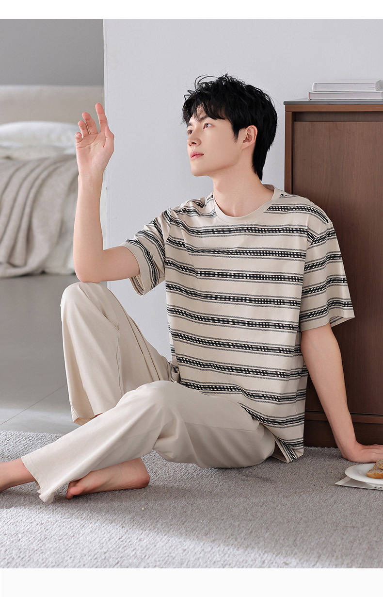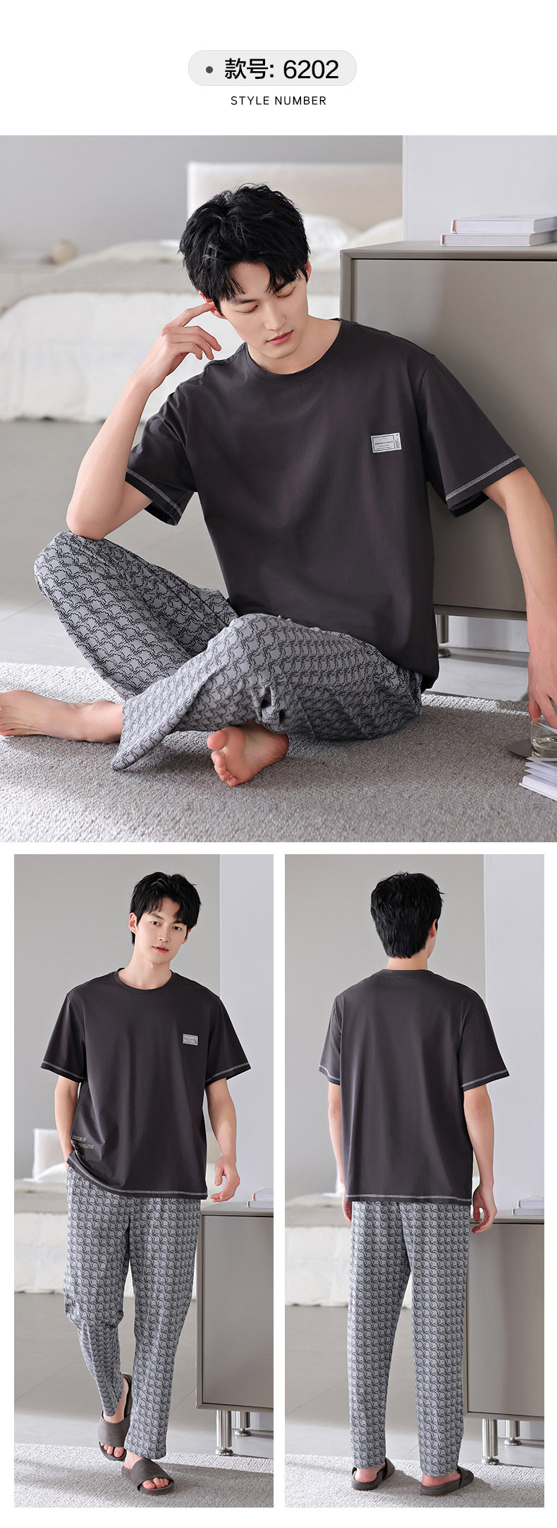 남성 잠옷 여름 얇은 풀업 순면 반팔 2025 새로운 여름 캐주얼 웨어러블 홈웨어 세트스토어 가기