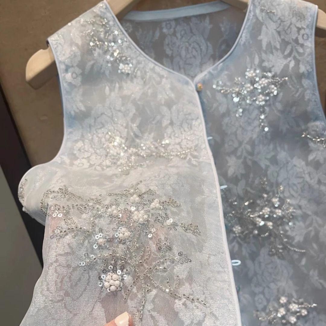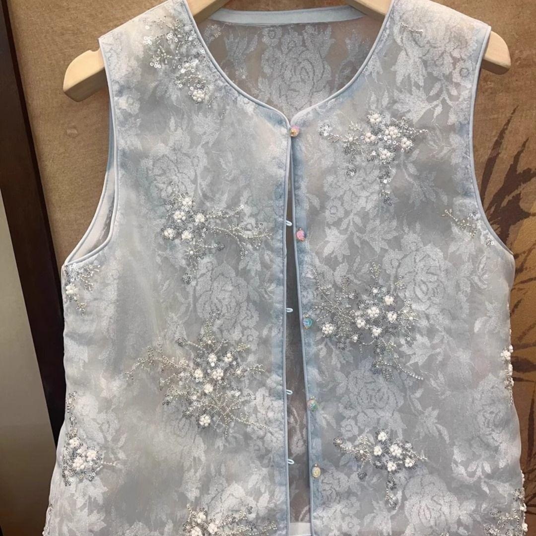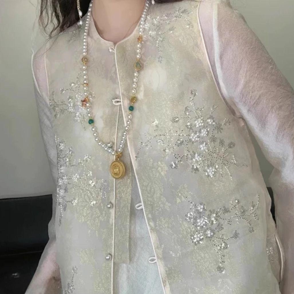 비즈 장식 패셔너블한 얇은 조끼 여성복 2026년 봄 신상 고급 중국풍 스팽글 자수 중국식 조끼 상의스토어 가기