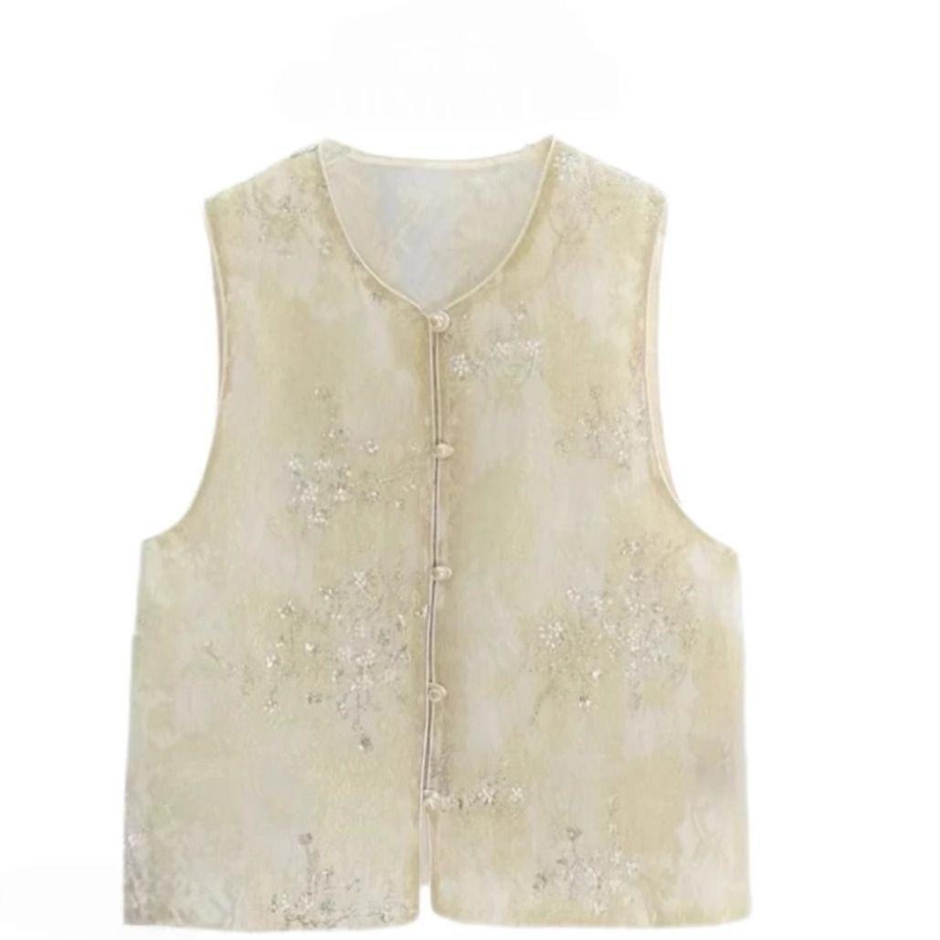 비즈 장식 패셔너블한 얇은 조끼 여성복 2026년 봄 신상 고급 중국풍 스팽글 자수 중국식 조끼 상의
