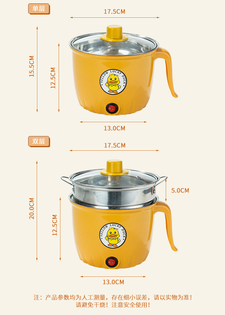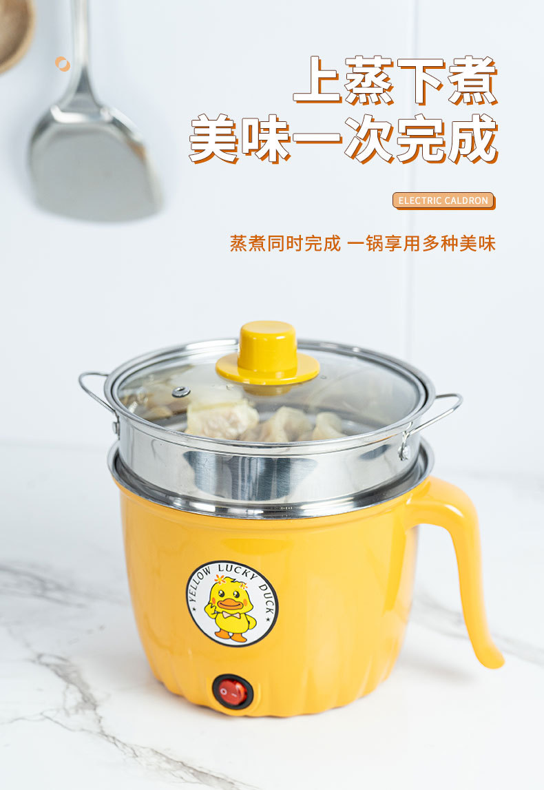 작은 노란색 오리 전기 밥솥 학생 기숙사 가정용 붙지 않는 냄비 미니 소형 전기 밥솥 국수 밥솥 올인원 다목적 밥솥
